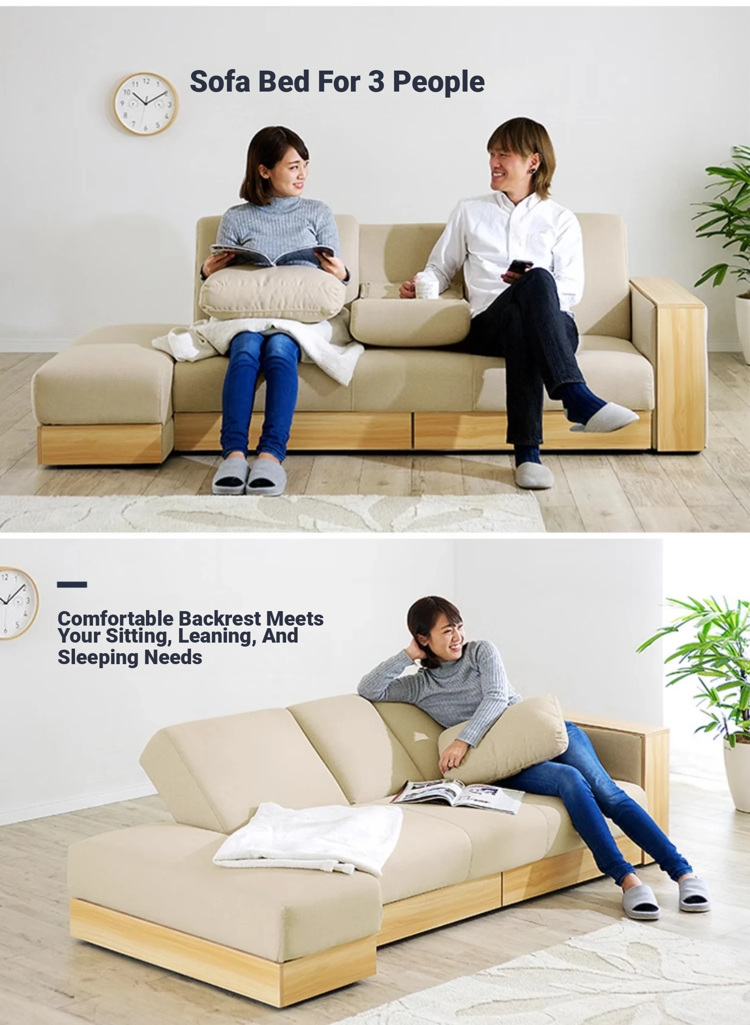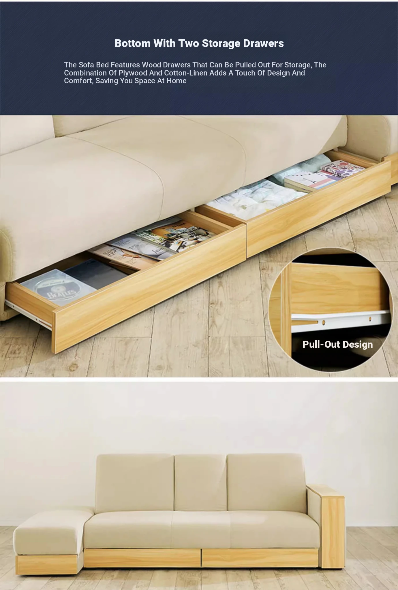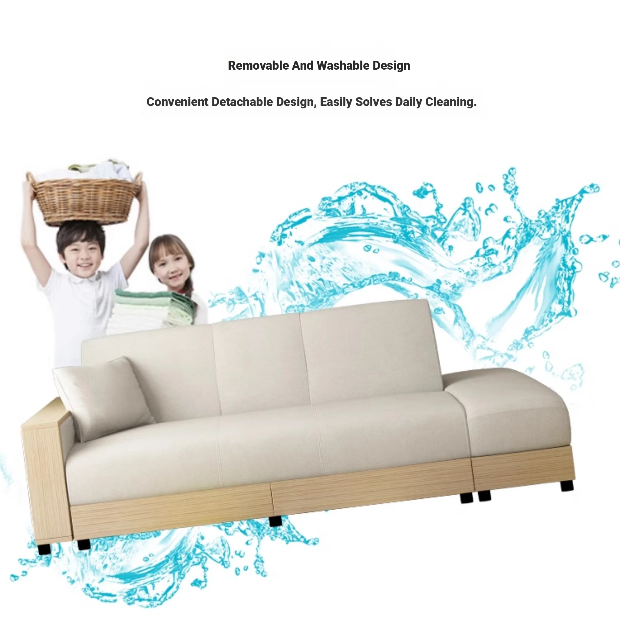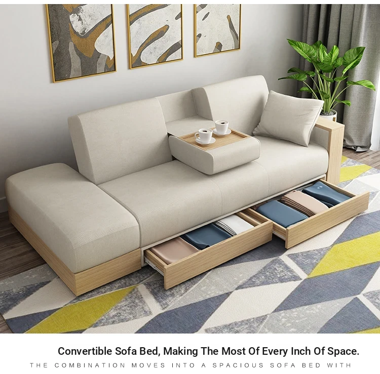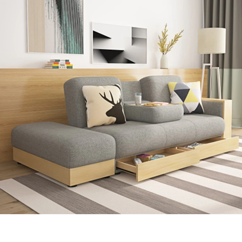 Hong Kong Direct Delivery Multifunctional Fabric Sofa Bed - Foldable, Washable, and Storage-Friendly for Small Japanese-Style Living Rooms