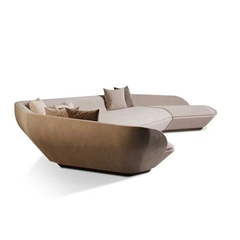 Italian Minimalist Designer Corner Sofa Set - Unique Shape for Hotel Lobbies and Spacious Villas, Luxurious Genuine Leather Upholstery
