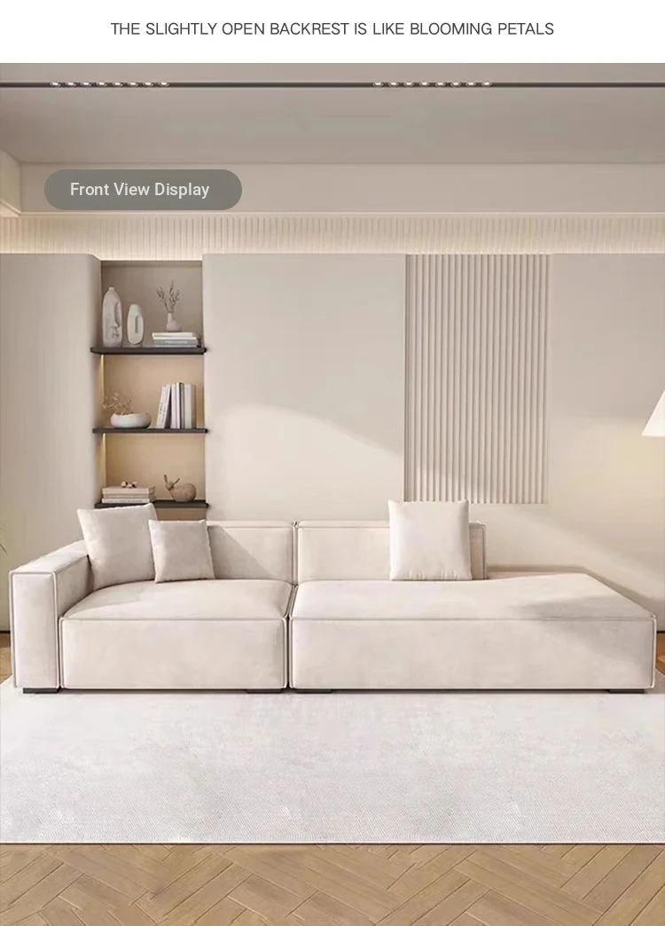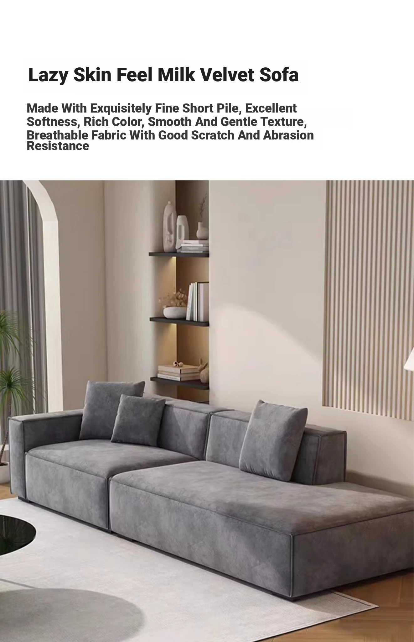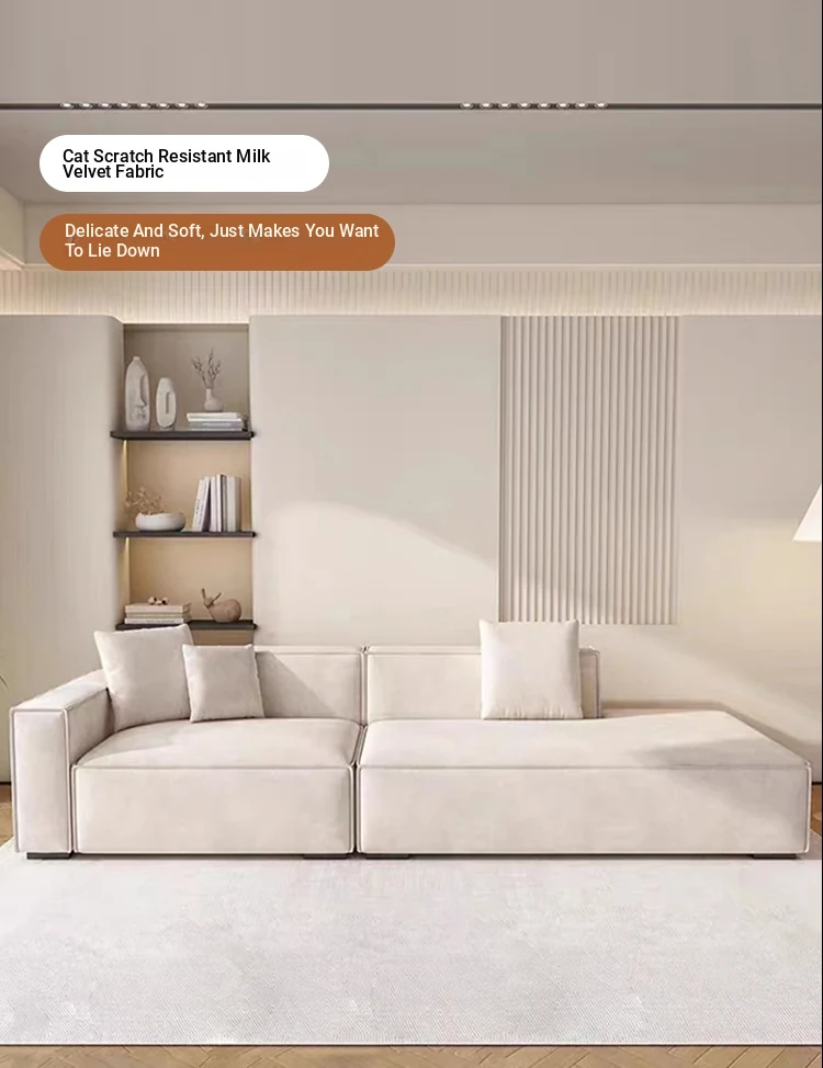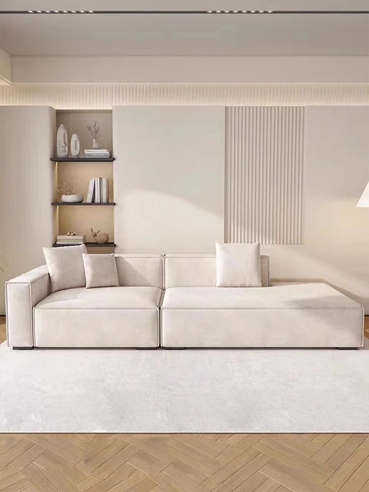 Italian Minimalist Luxury Velvet Sofa for Small Living Rooms - Modern Cloud-like Design with Straight Tufted Chaise Lounge for Stylish Comfort