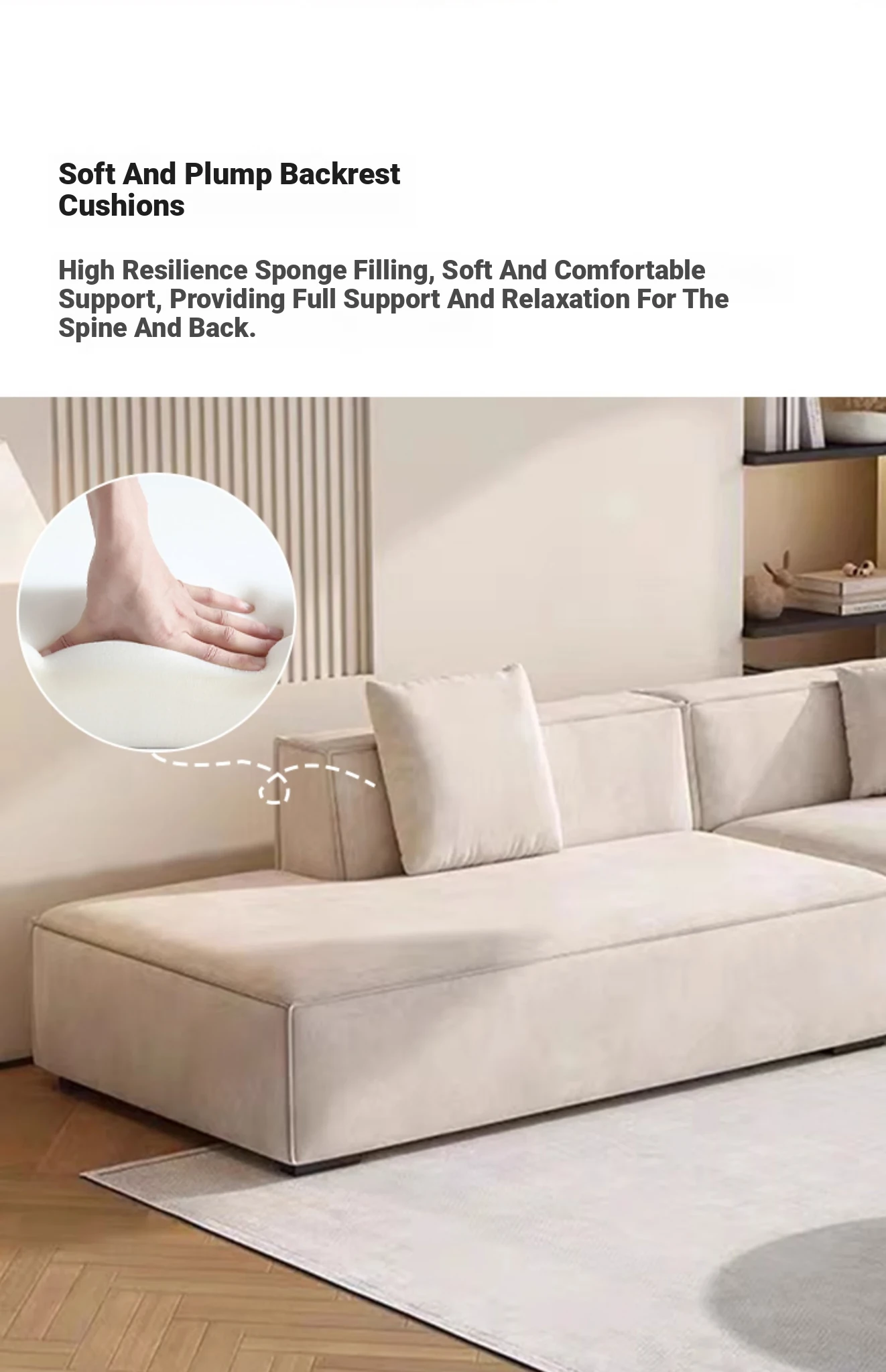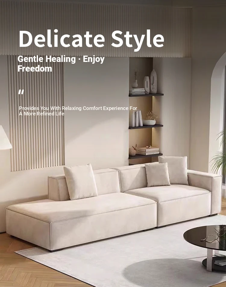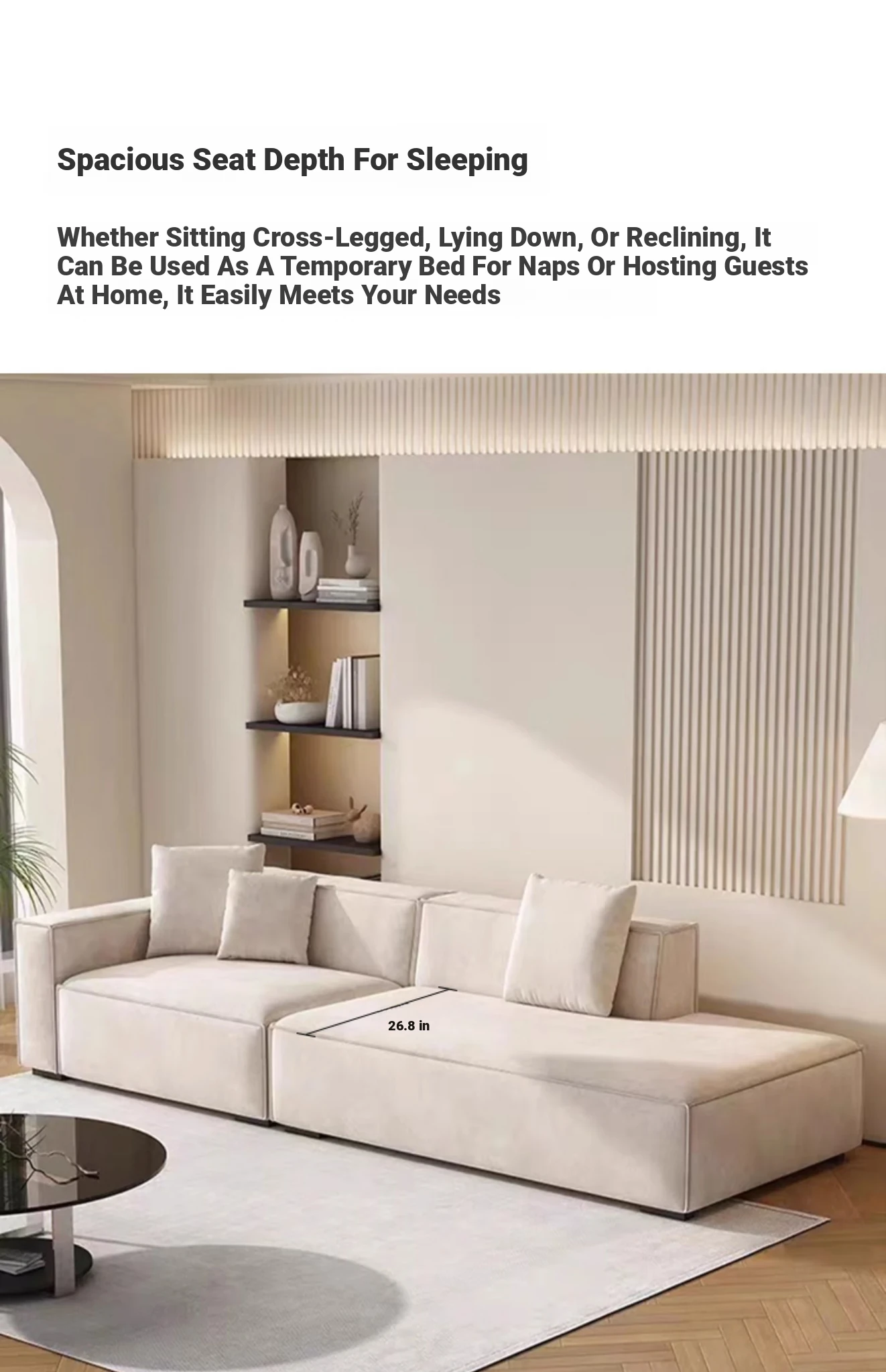 Italian Minimalist Luxury Velvet Sofa for Small Living Rooms - Modern Cloud-like Design with Straight Tufted Chaise Lounge for Stylish Comfort