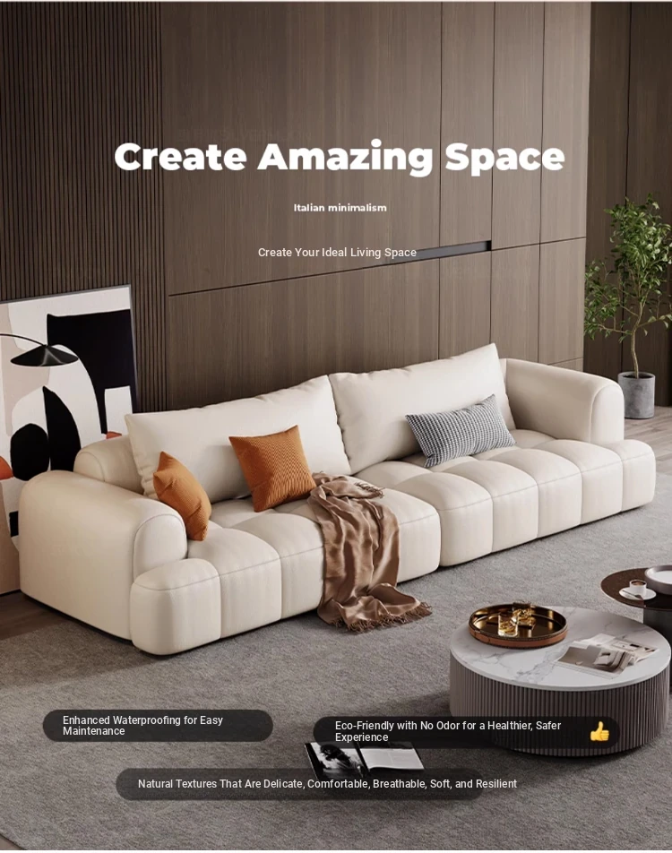 Italian Minimalist Modern Light Luxury Cream-Style Cloud Puff Cotton Candy Sofa for Small Living Rooms – Trendy Design Perfect for Cozy Spaces