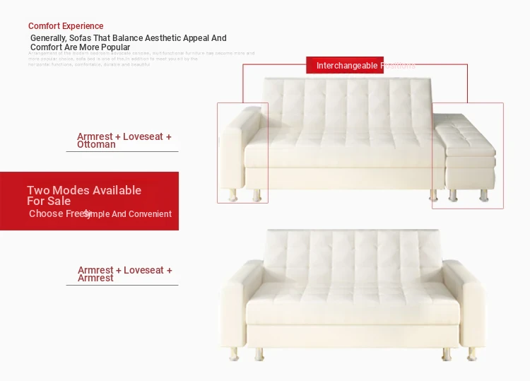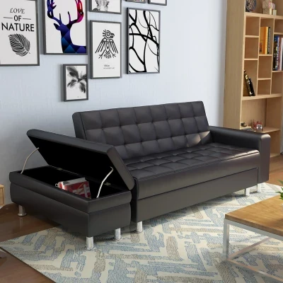 Japanese Style Faux Leather Sofa Bed - Multifunctional Folding Sofa with Storage for Small Spaces - Perfect for Living Rooms, Bedrooms, and Home Offices