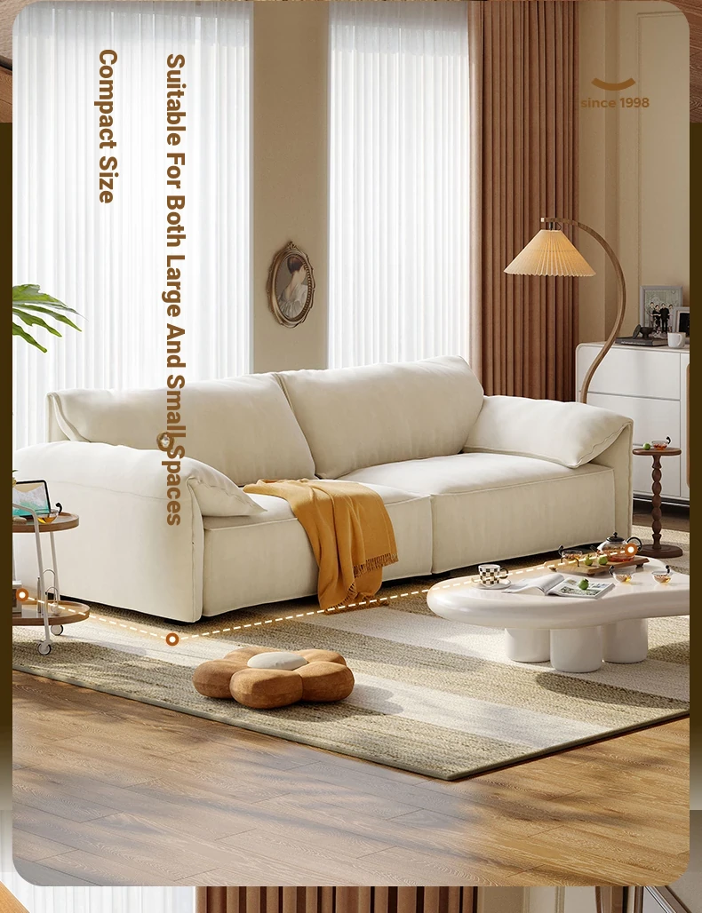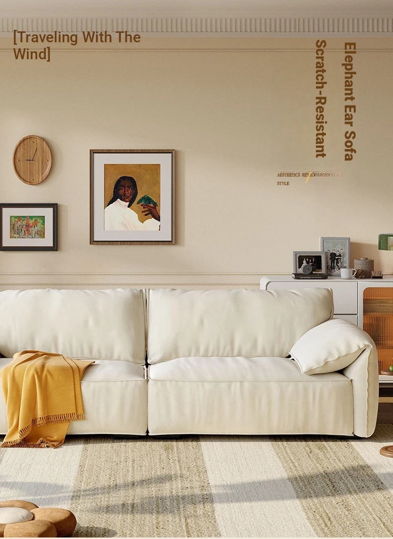 Lando Baxter Elephant Ear Fabric Sofa - New Creamy Style for Small Living Rooms, Cat Scratch Resistant, Cozy and Chic Design