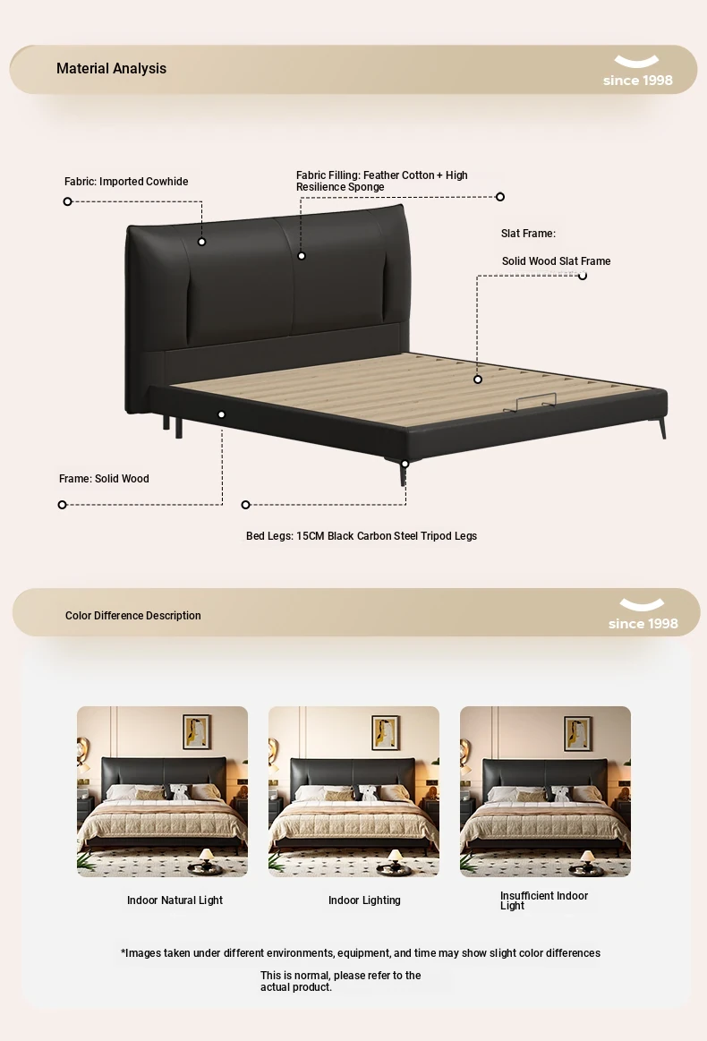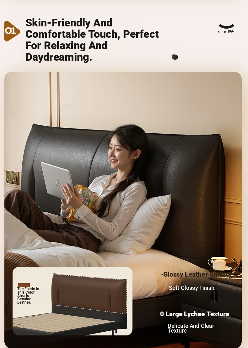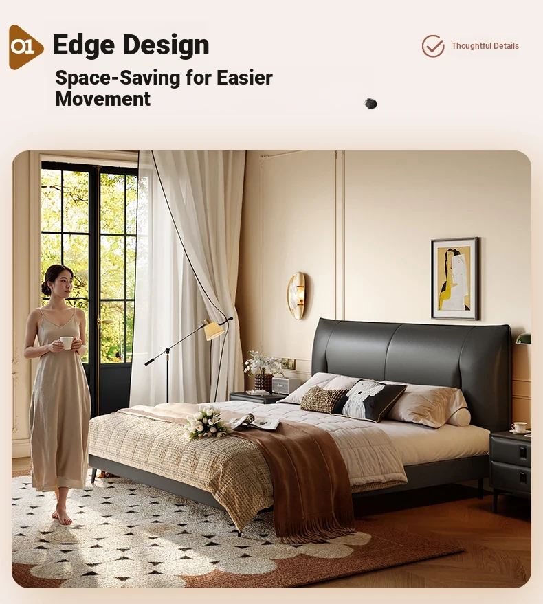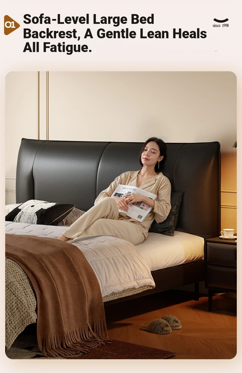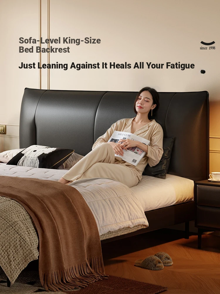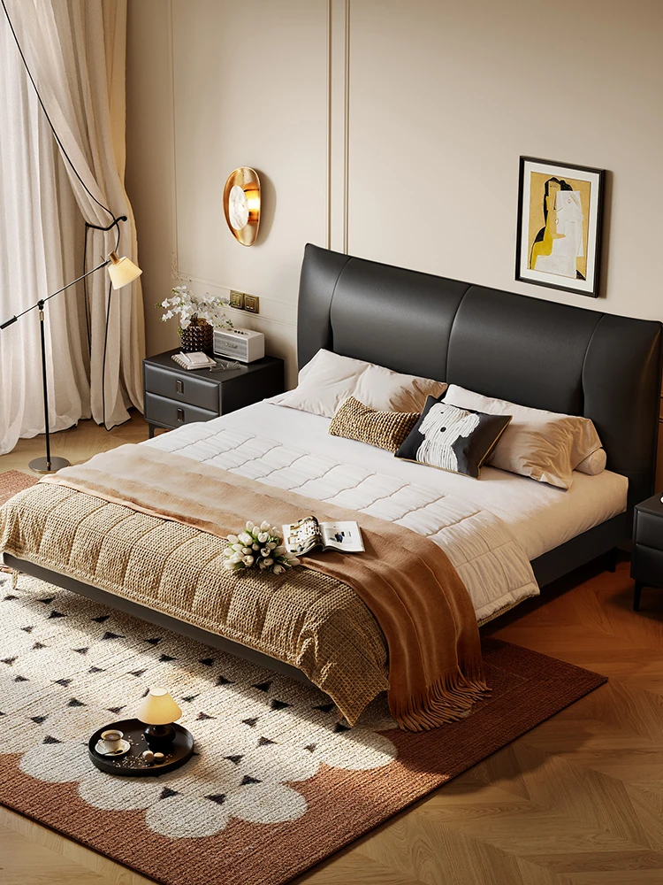 Lando Black Gold Genuine Leather Soft Bed - Modern Minimalist Design, 2025 New Arrival, Double High Foot Luxury Storage Bed for Master Bedroom