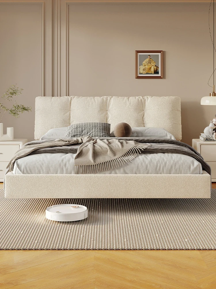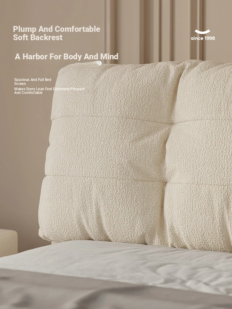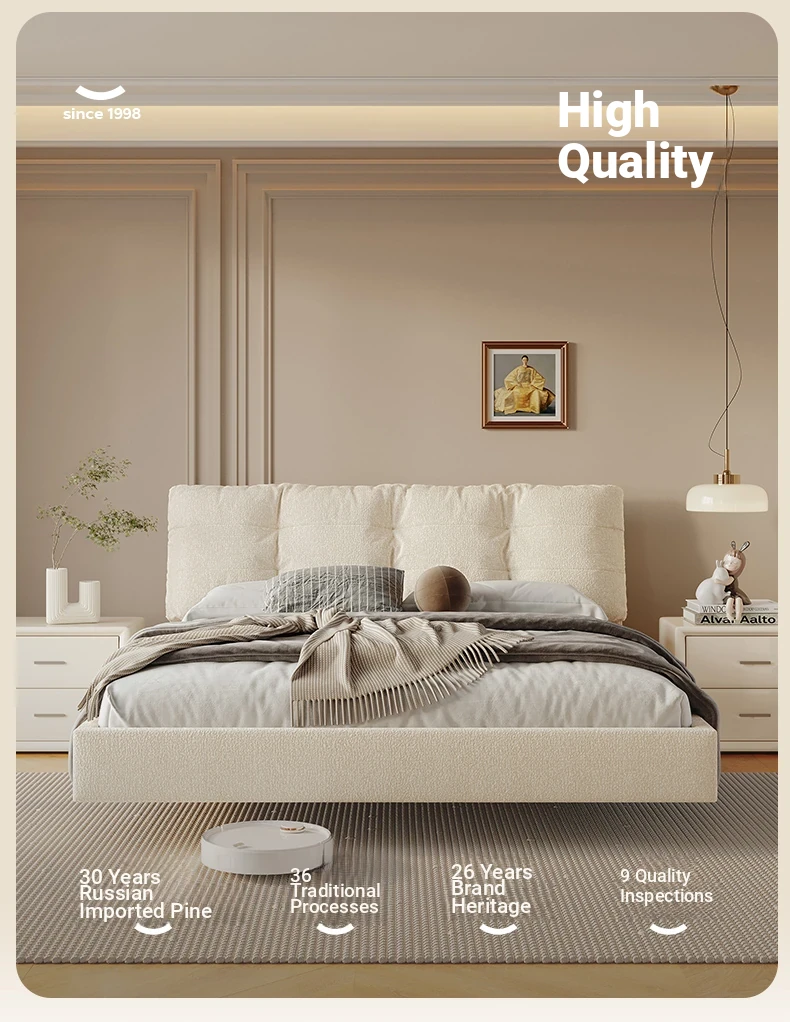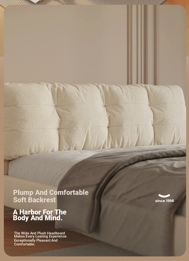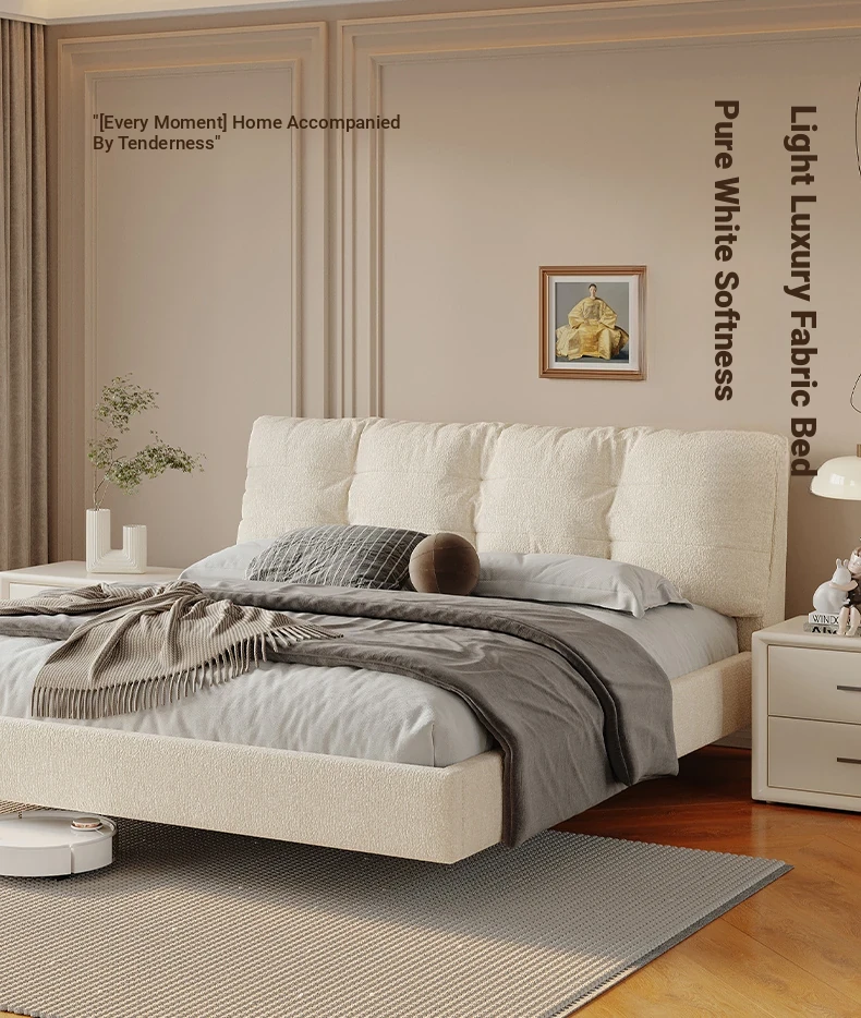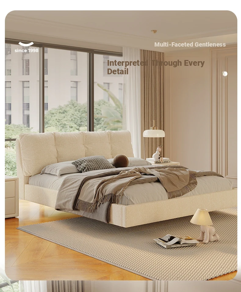 Lando Cloud Bed - French Cream Style Cotton Linen Upholstered Bed for Girls' Master Bedroom, Floating Soft Package Design, Removable and Washable