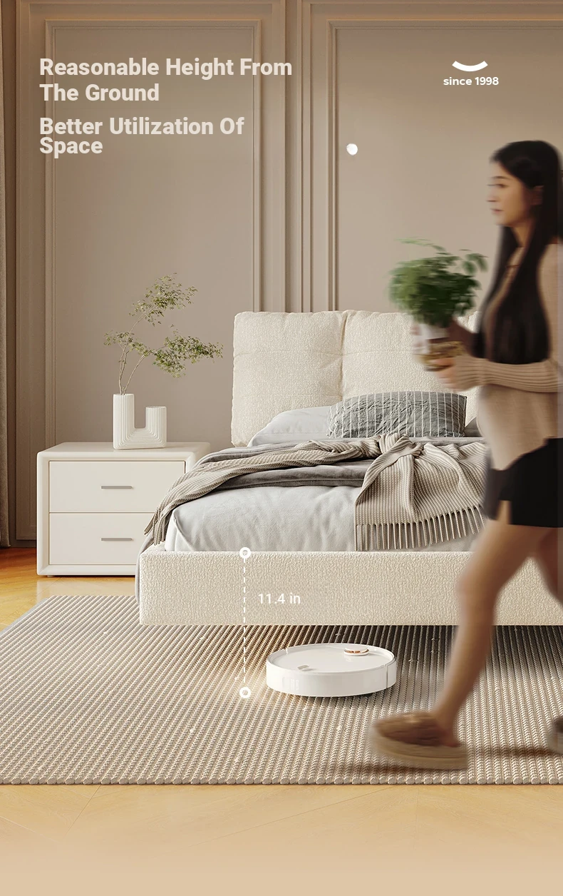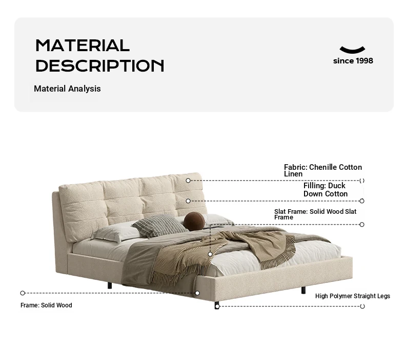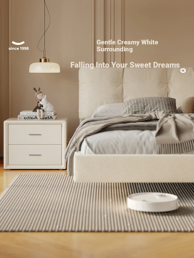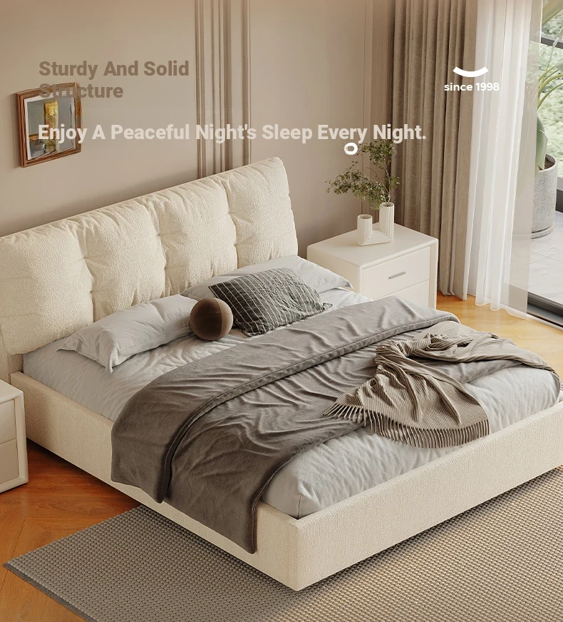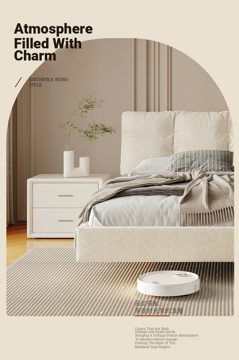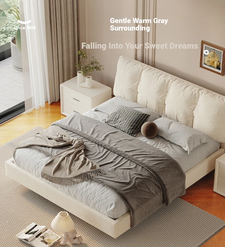 Lando Cloud Bed - French Cream Style Cotton Linen Upholstered Bed for Girls' Master Bedroom, Floating Soft Package Design, Removable and Washable