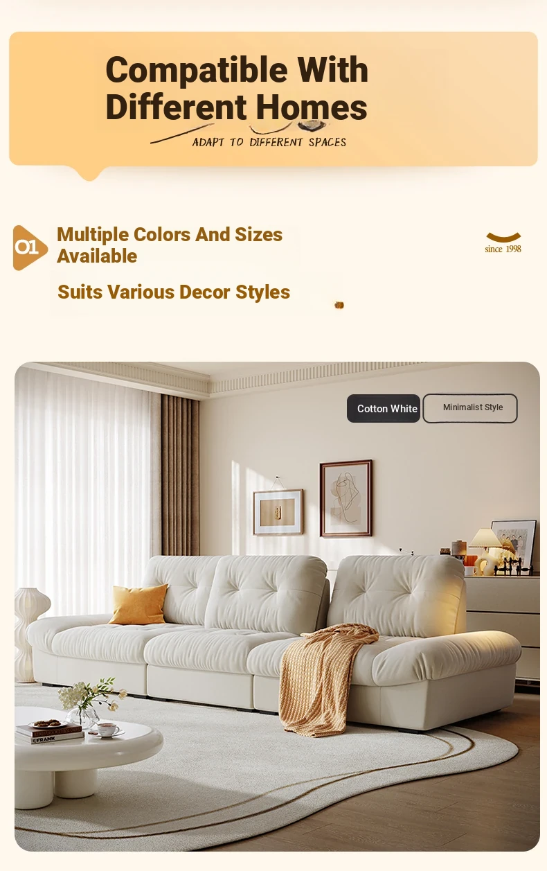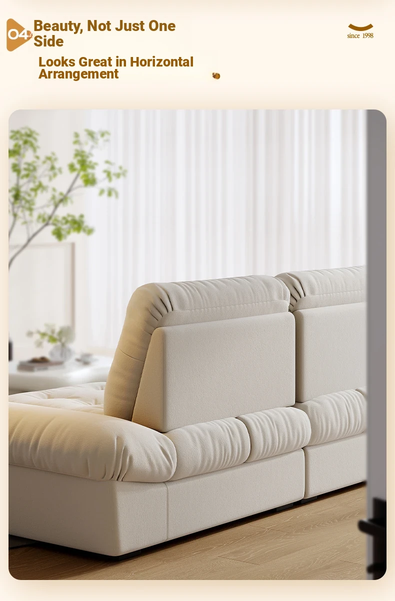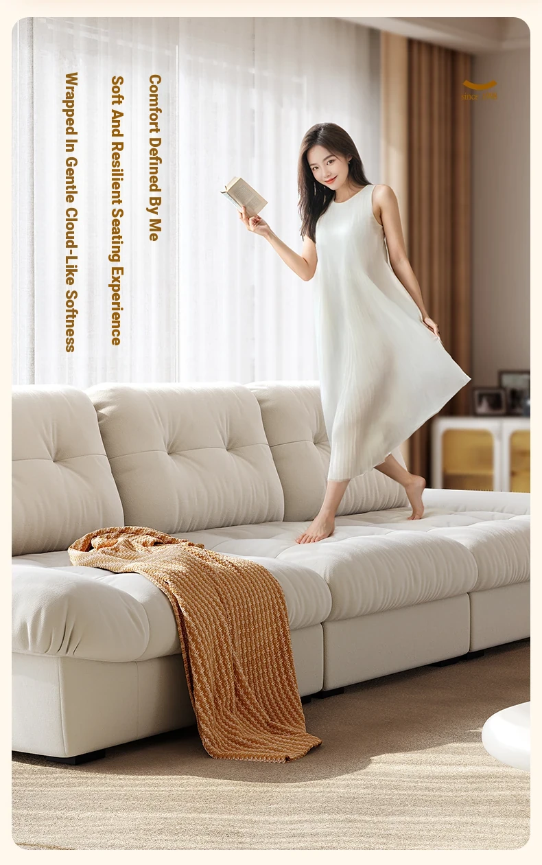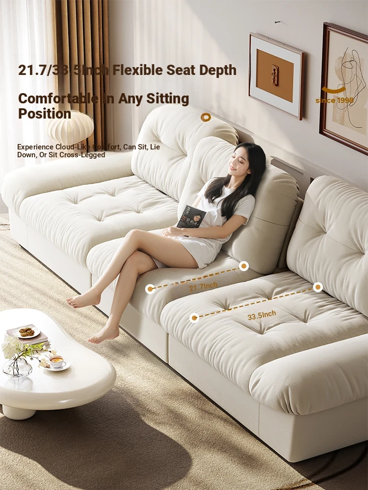Lando Cloud Sofa Fabric Adjustable Mobile Backrest for Small Spaces - Three-Seater Cream Velvet with Scratch-Resistant Material