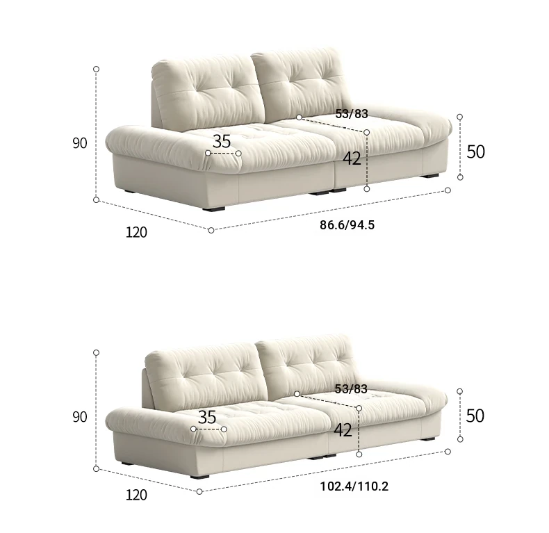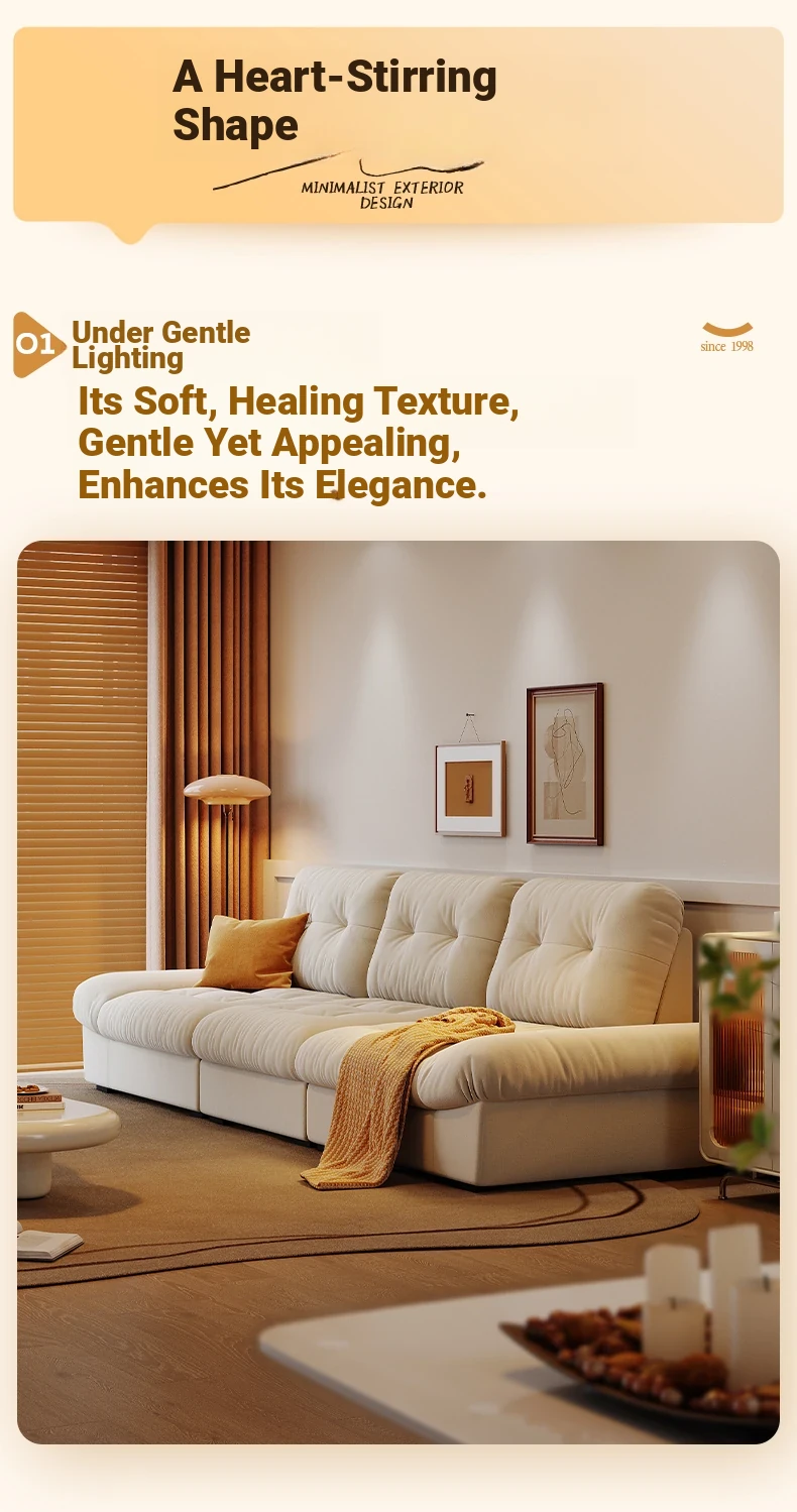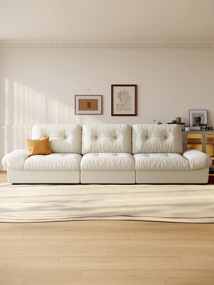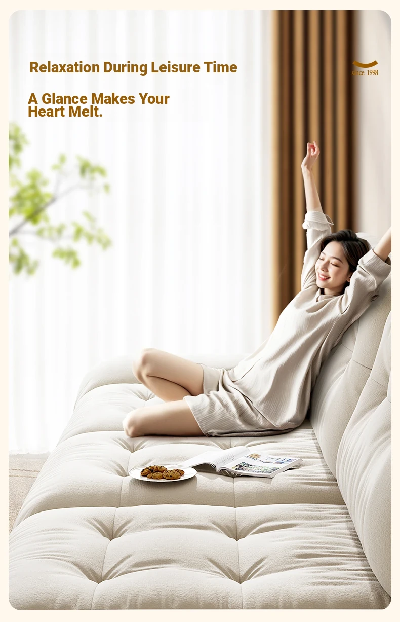 Lando Cloud Sofa Fabric Adjustable Mobile Backrest for Small Spaces - Three-Seater Cream Velvet with Scratch-Resistant Material