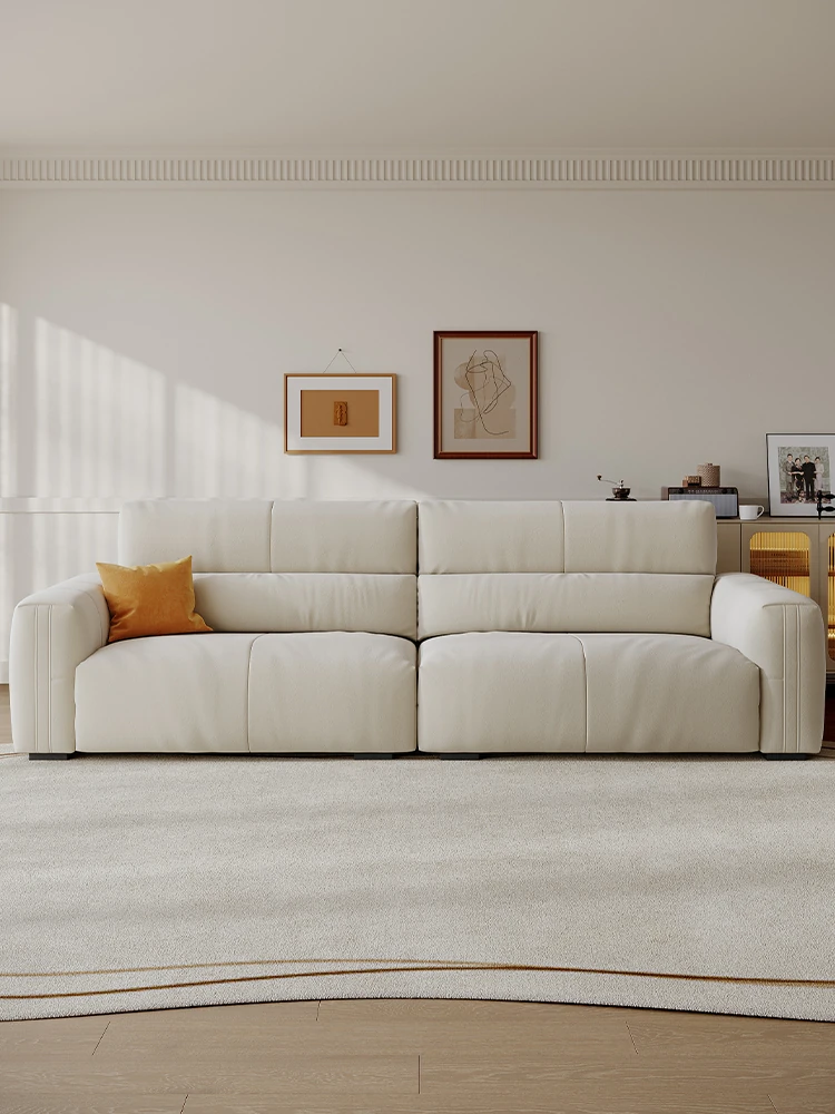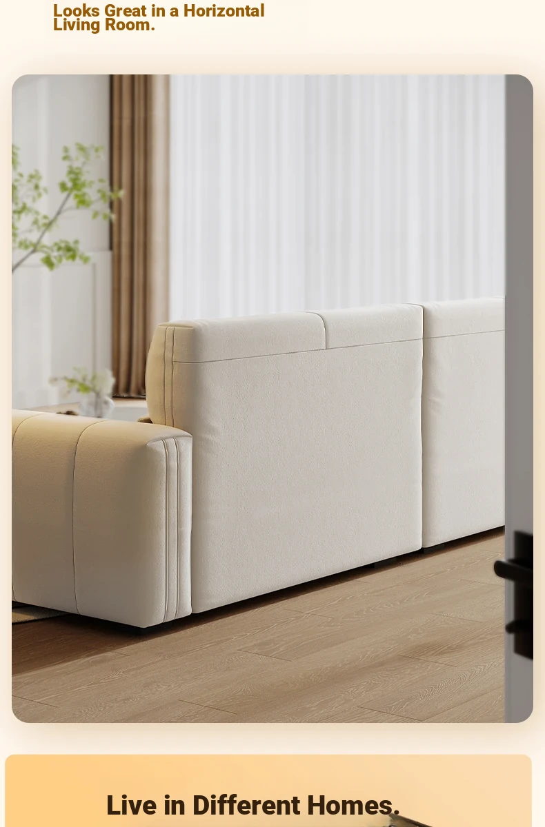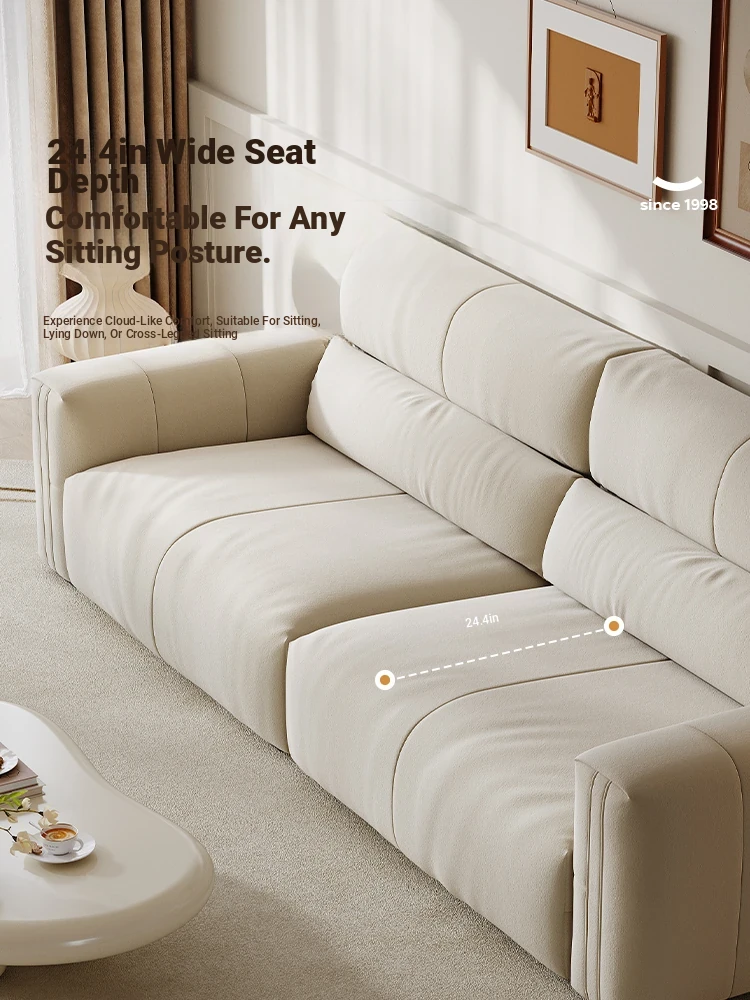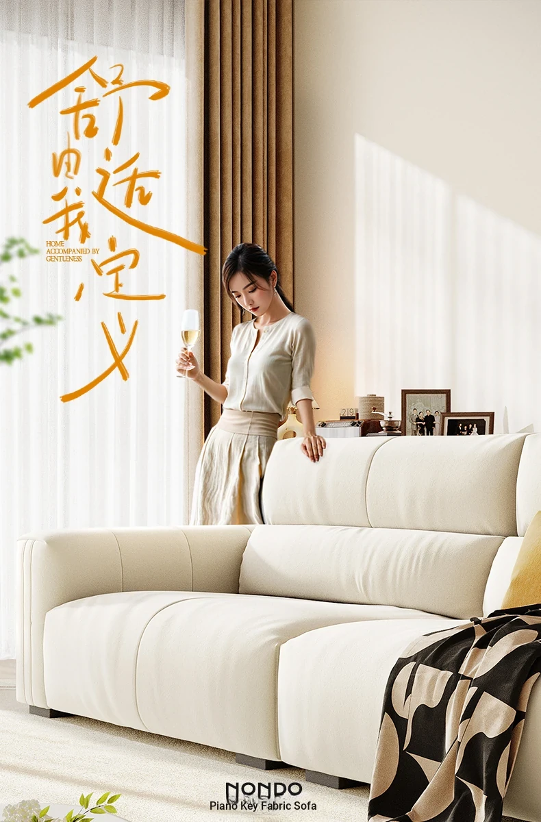 Lando Elegant Piano Key Fabric Sofa for Small Living Rooms - Creamy Style, Straight Back, High-Backed, Cat-Proof Plush Cushions