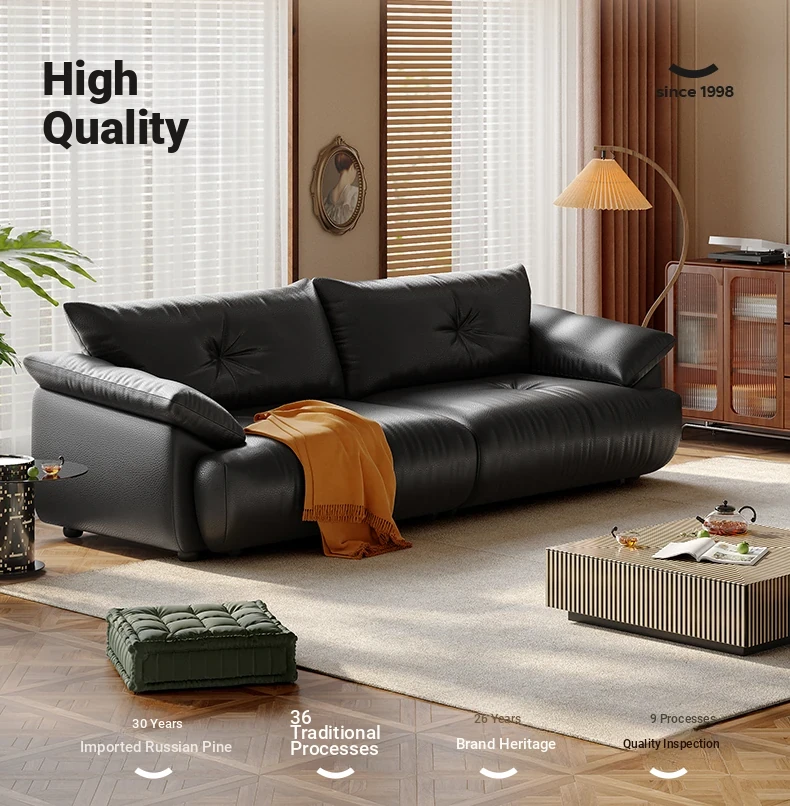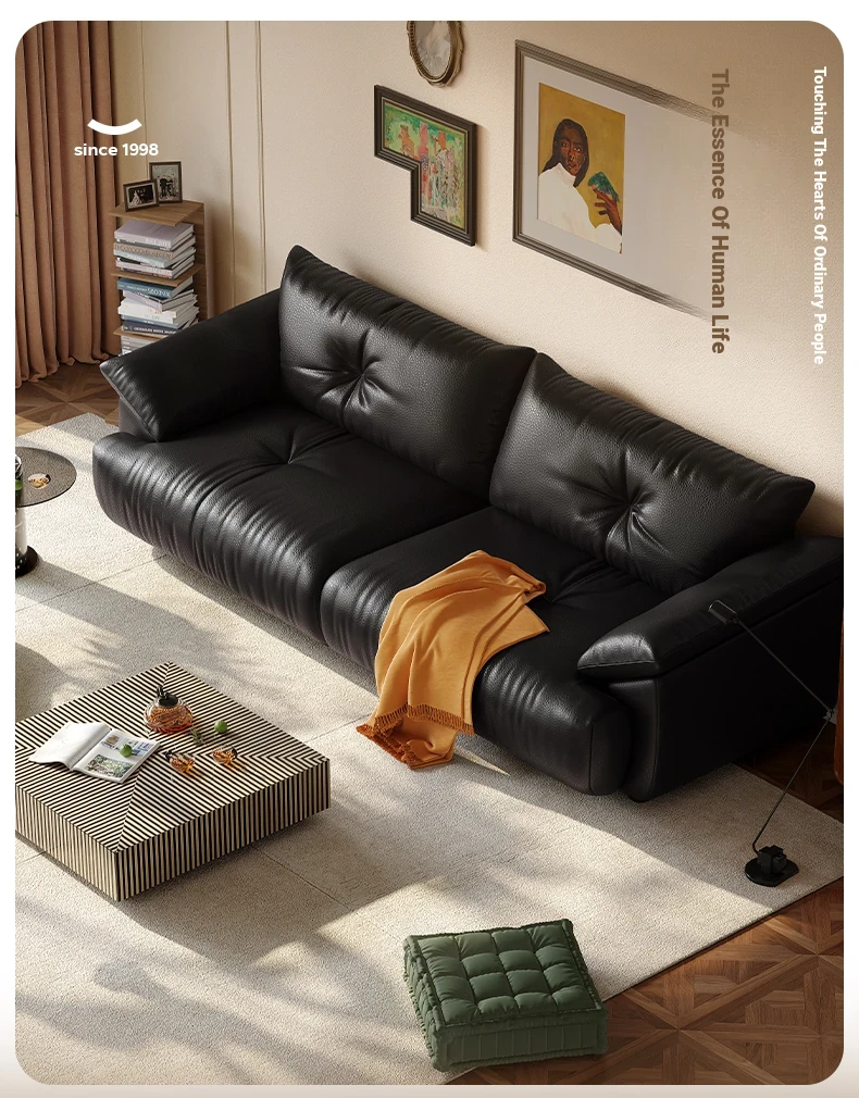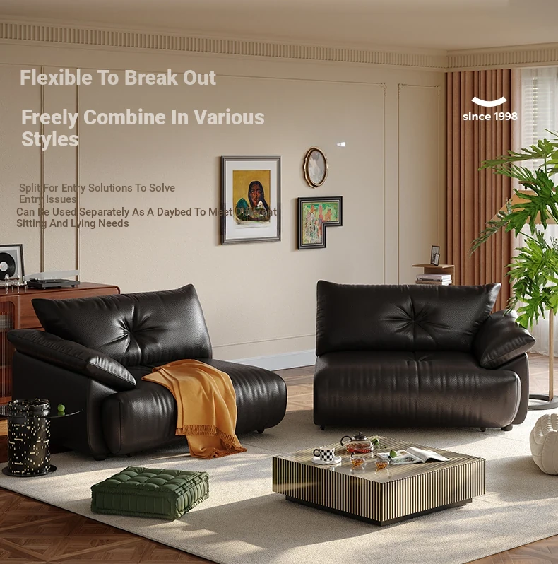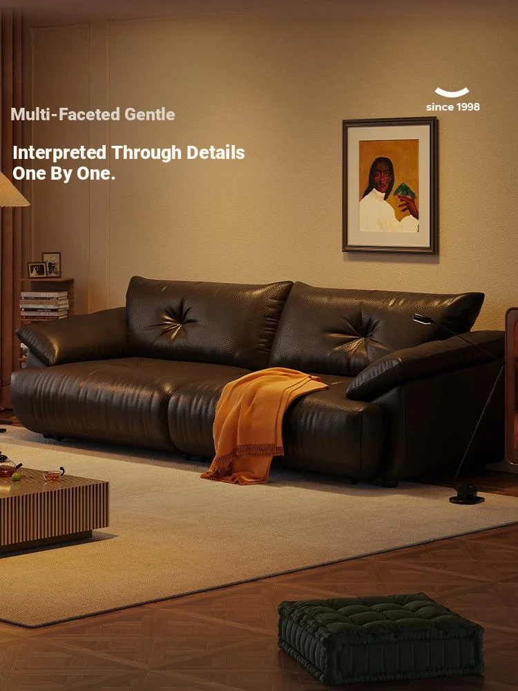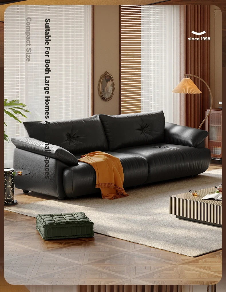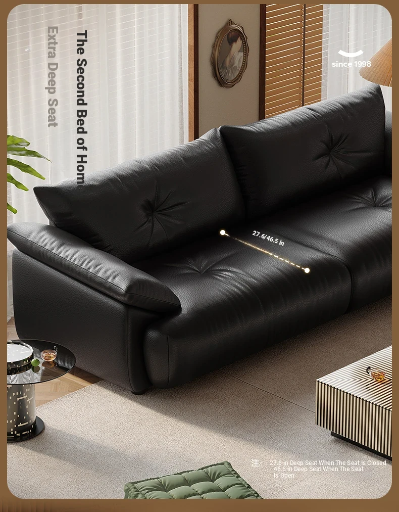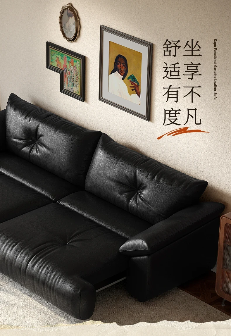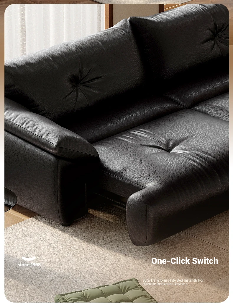 Lando Genuine Leather Electric Sofa Bed - Adjustable Black Folding Bed for Small Living Rooms, Expandable Function with Top-Grain Cowhide Upholstery
