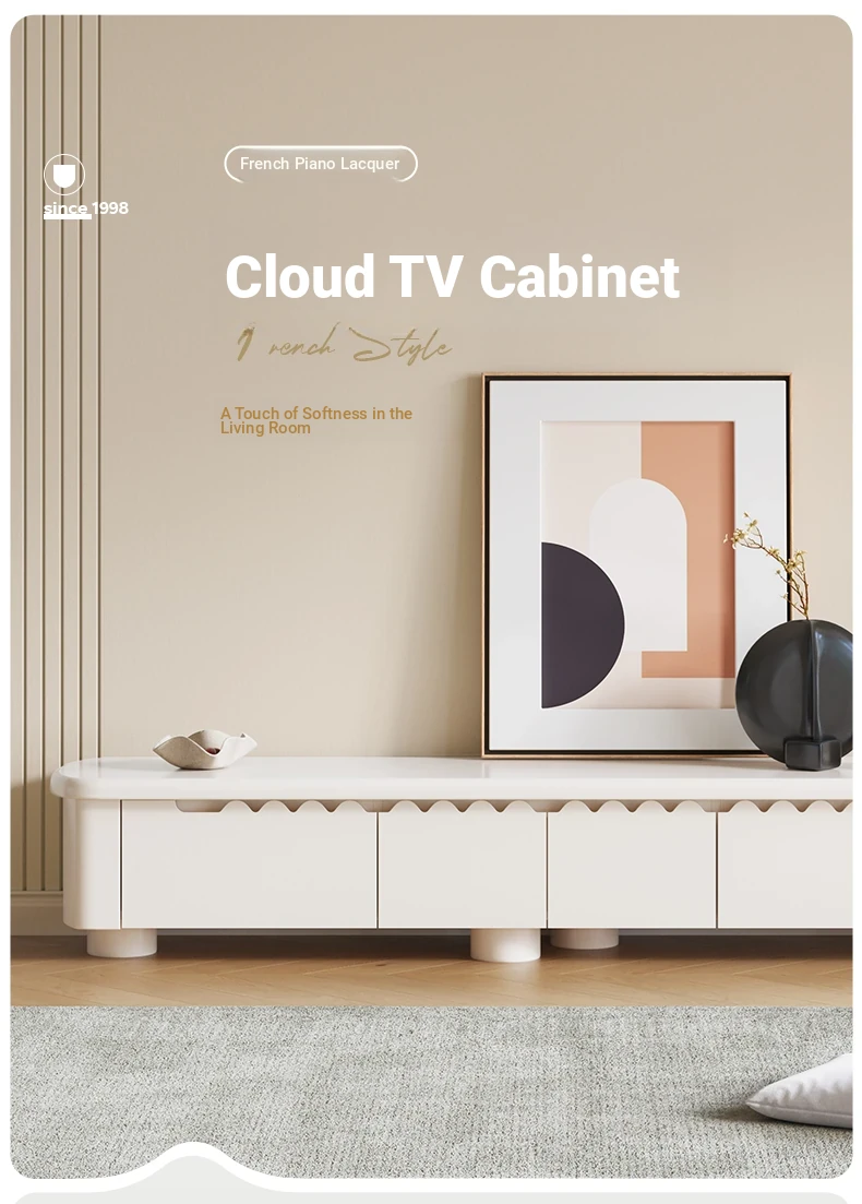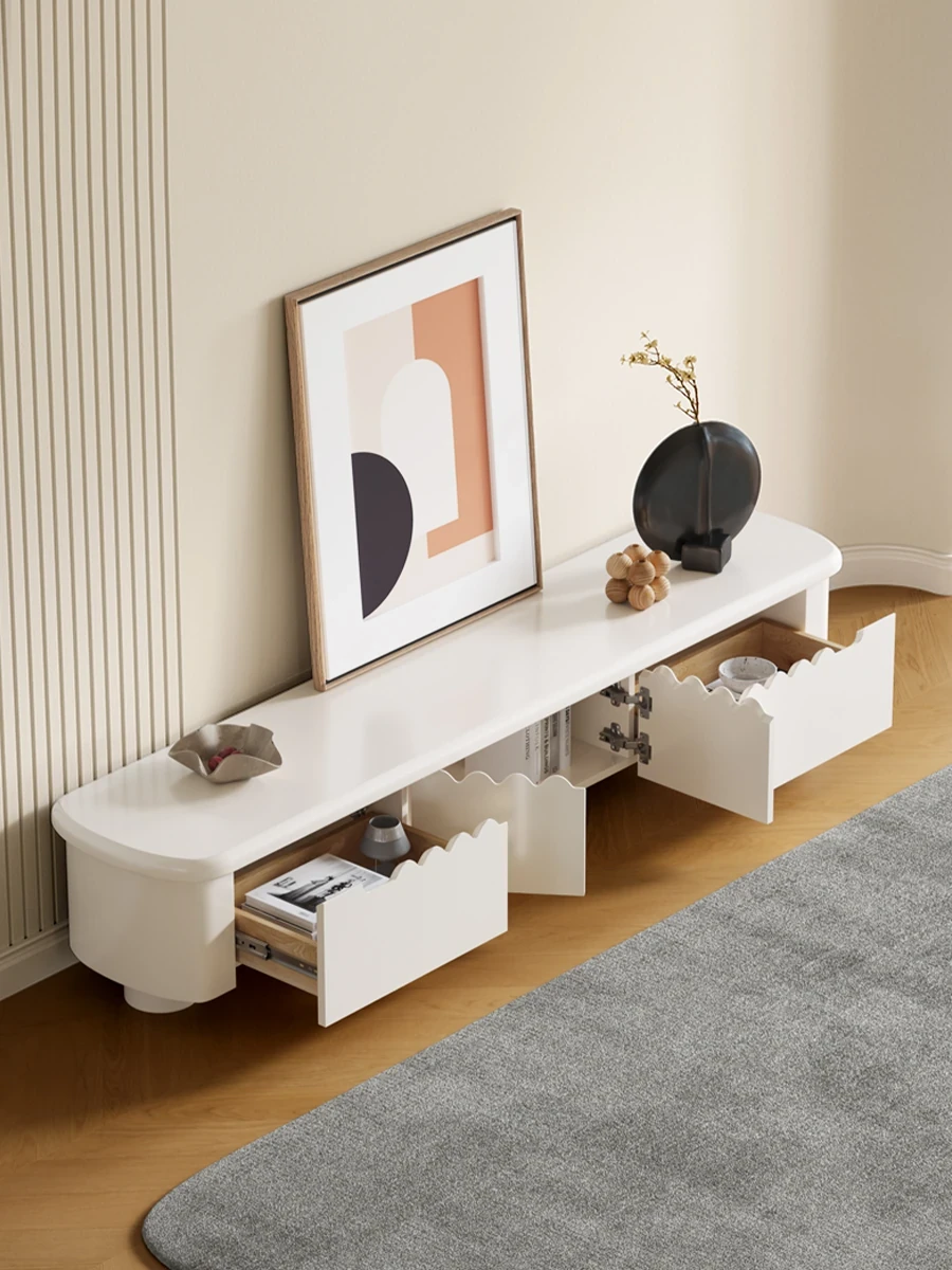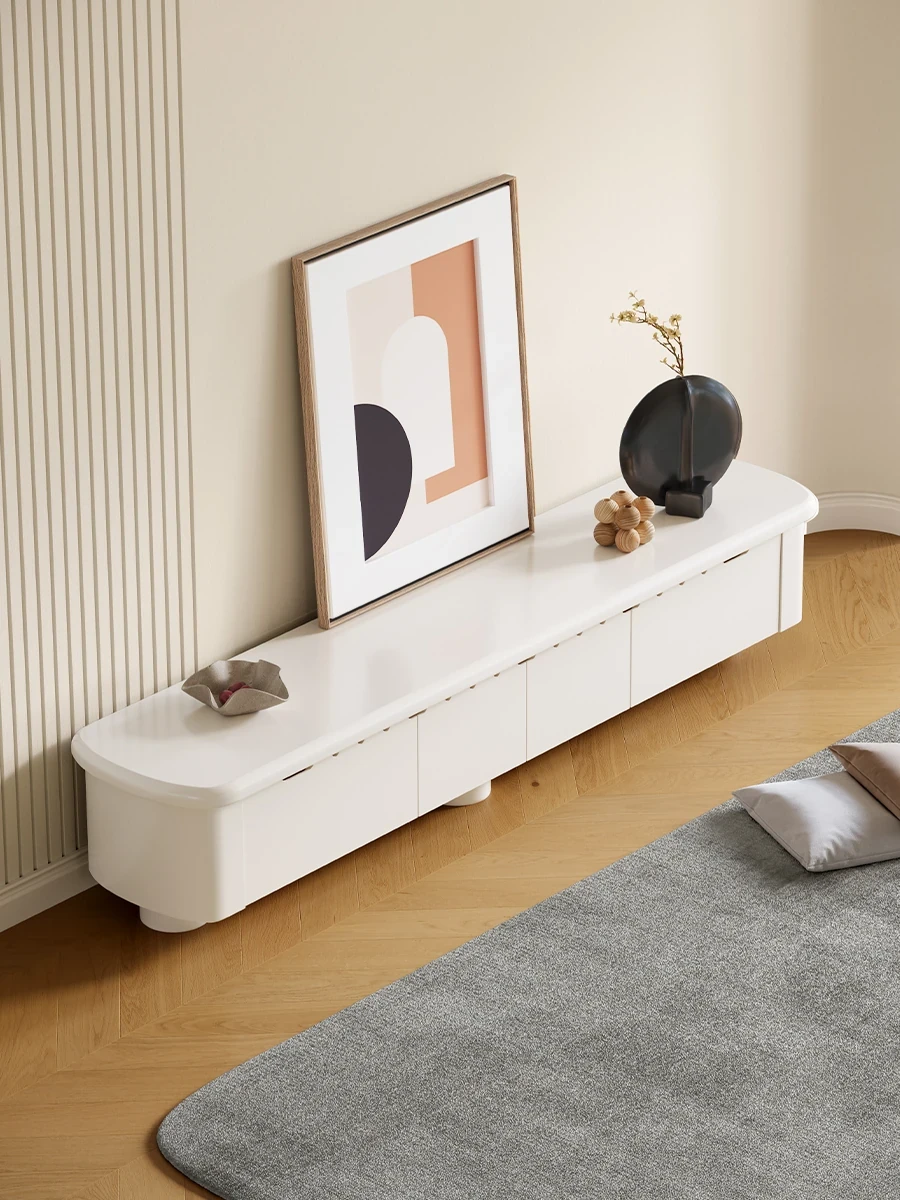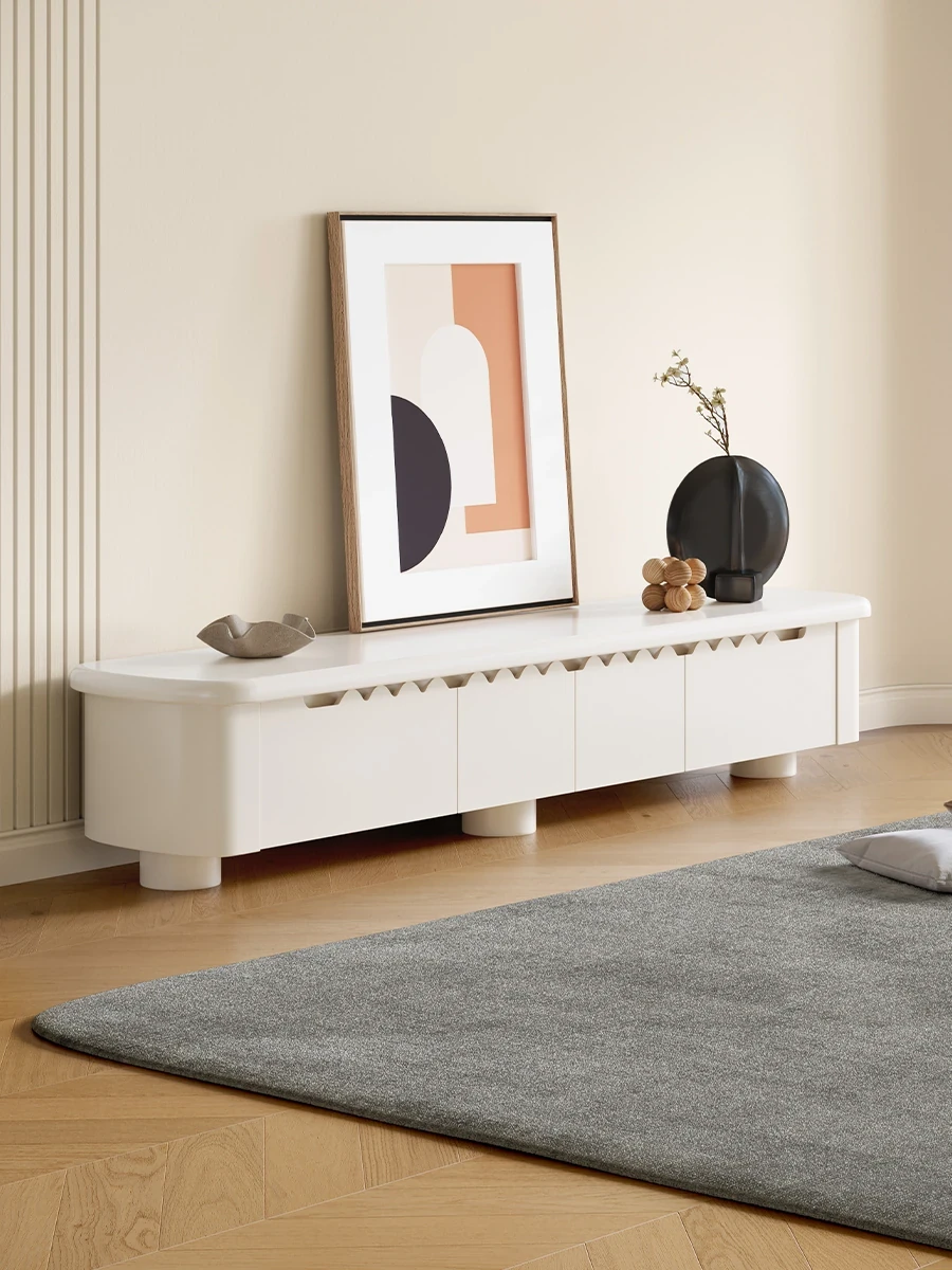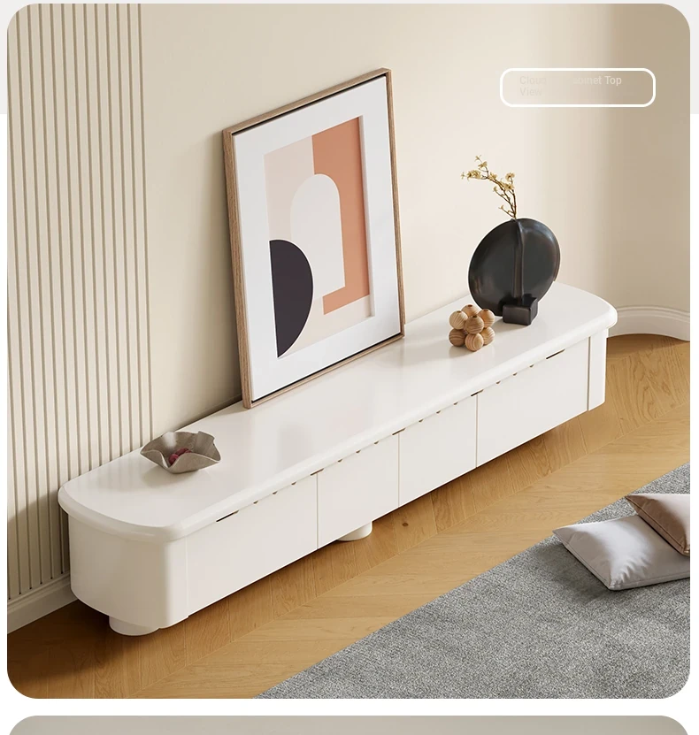 Lando Home Cream Cloud One-Piece Floor TV Stand - Minimalist Modern Storage Cabinet for Living Room, Embracing Wabi-Sabi Aesthetics