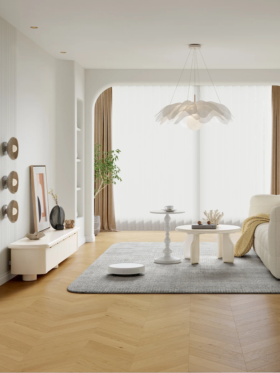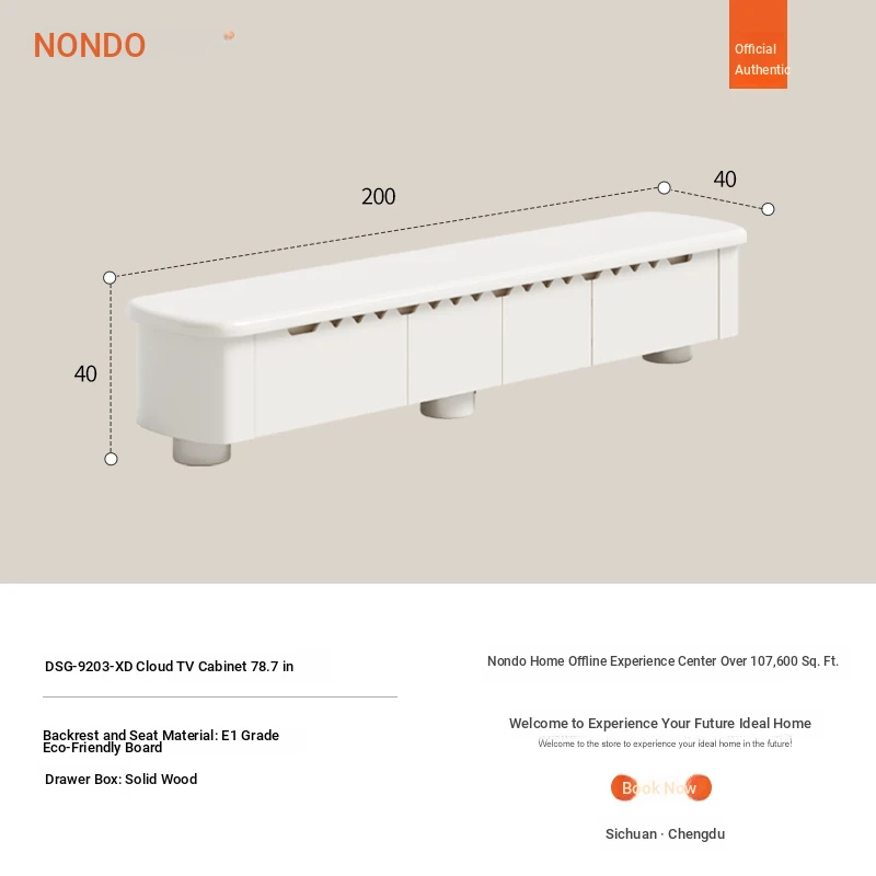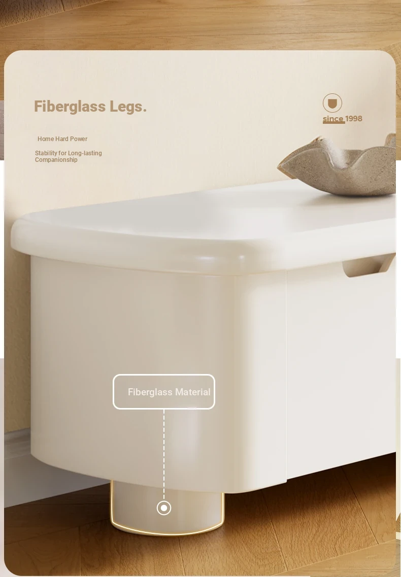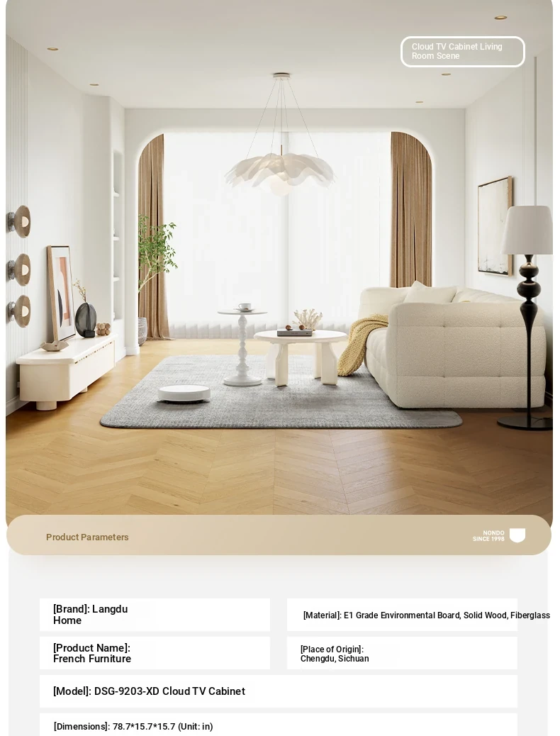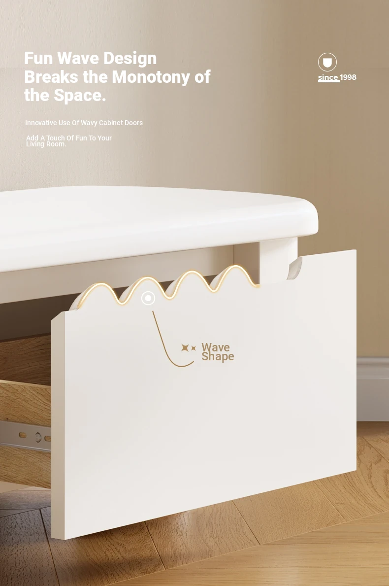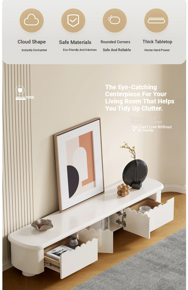 Lando Home Cream Cloud One-Piece Floor TV Stand - Minimalist Modern Storage Cabinet for Living Room, Embracing Wabi-Sabi Aesthetics