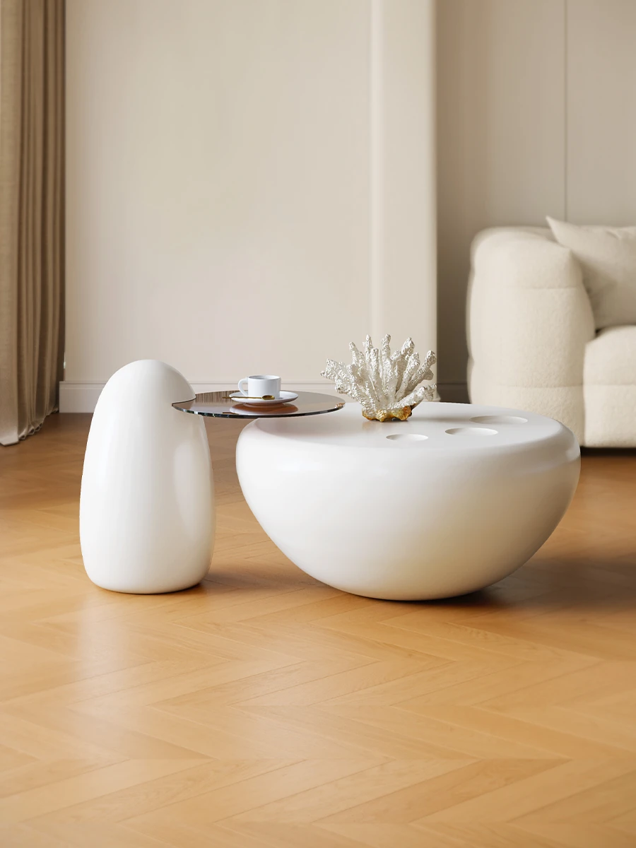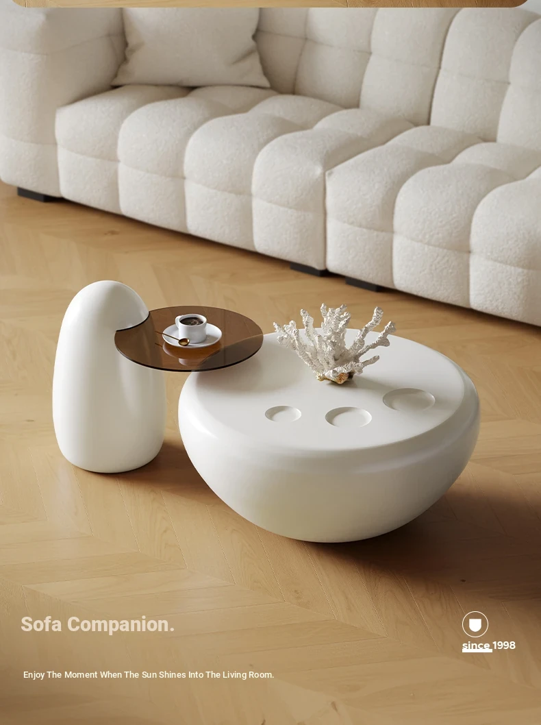 Lando Home Creamy Minimalist Round Coffee Table Set - Chic Design for Small Living Rooms, Perfect Side Table with a Touch of Elegance
