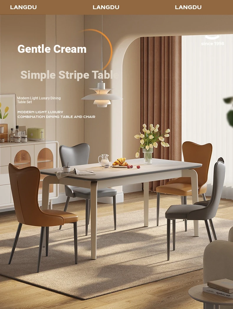 Lando Modern Minimalist Luxury Dining Table and Chair Set for Small Spaces - Rectangular Design Perfect for Home Use and Living Rooms