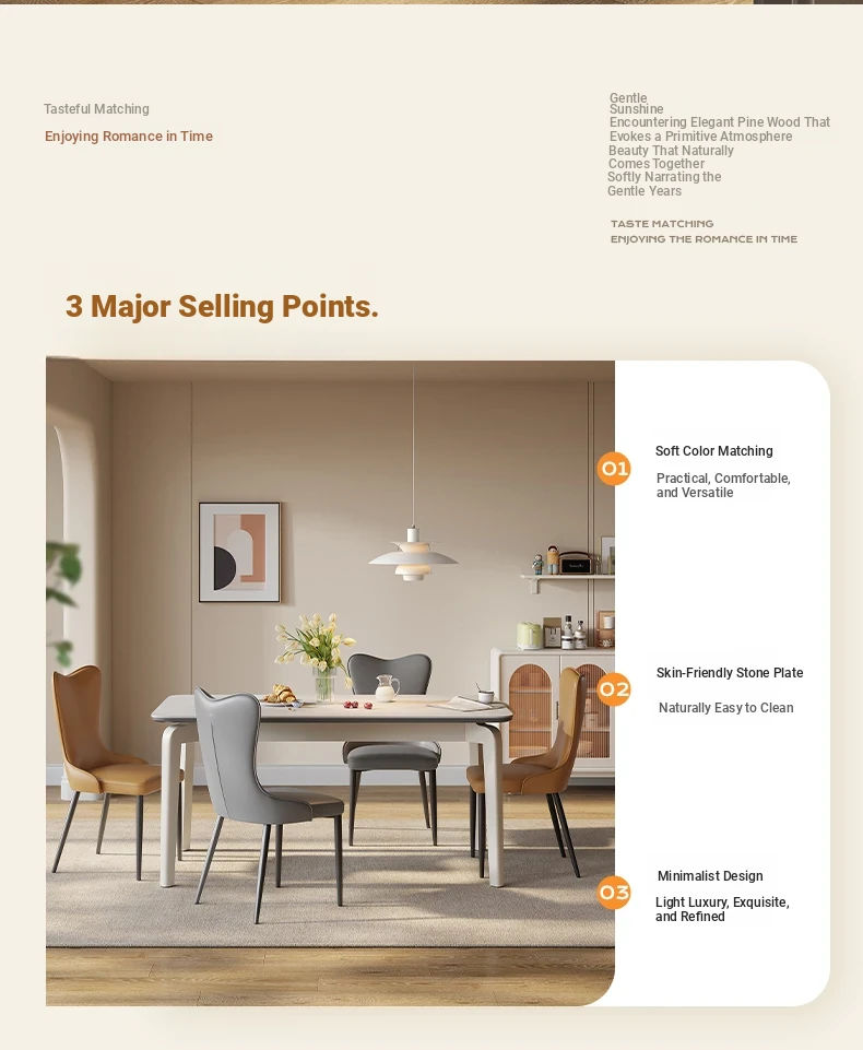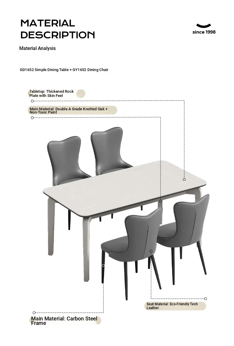 【 53.15in 】Rock Slab Dining Table + Dining Chair*4