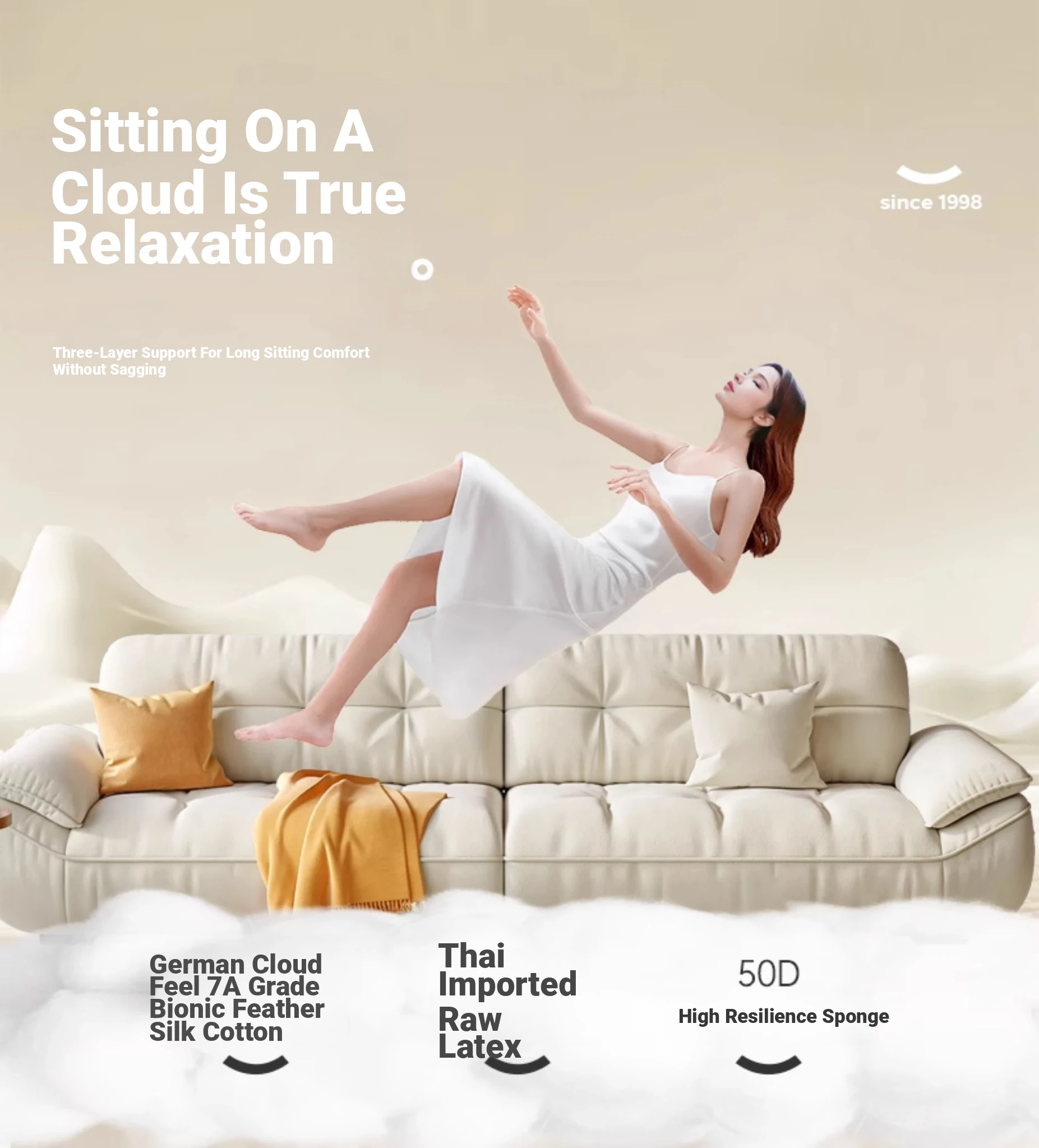 [Flagship Edition Cloud Sitting Sense] Waterproof Anti-fouling Flannel (Latex + High Resilience Sponge + Bamboo Charcoal Sponge + Violet Sponge)