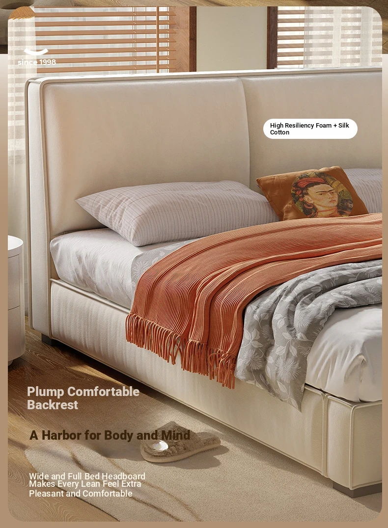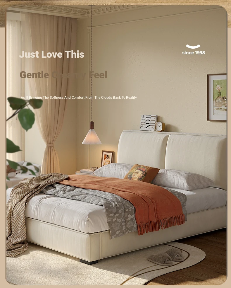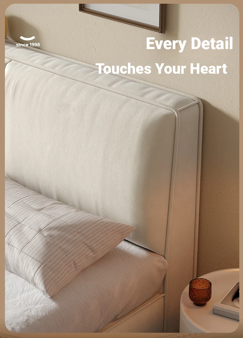 Lando Soft Fabric Bed Frame - Modern Minimalist Design for Master Bedroom, Double Bed with Cat Scratch Resistant Upholstery and Convenient Storage Solutions