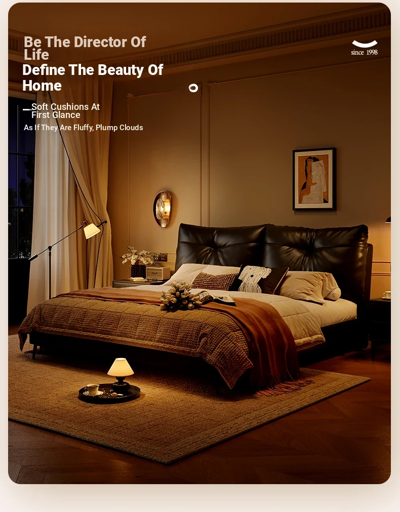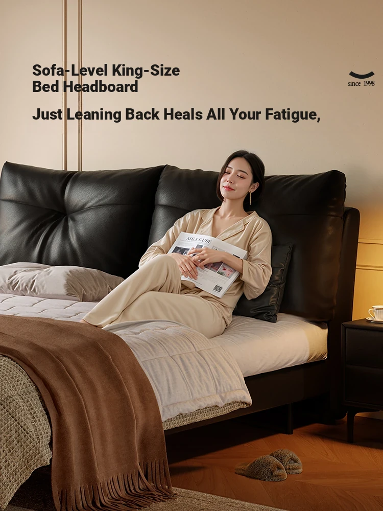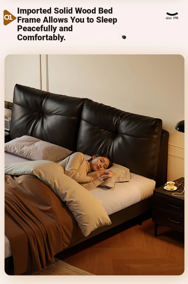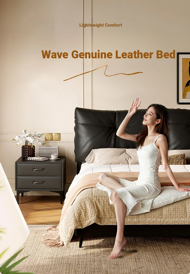 [Flagship Version 0.08in First-Layer Cowhide] Bed + Bedside Table * 2 + Mattress