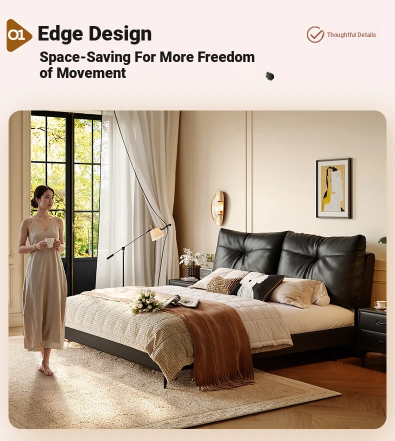 [Flagship Version 0.08in First-Layer Cowhide] Bed + Bedside Table*2