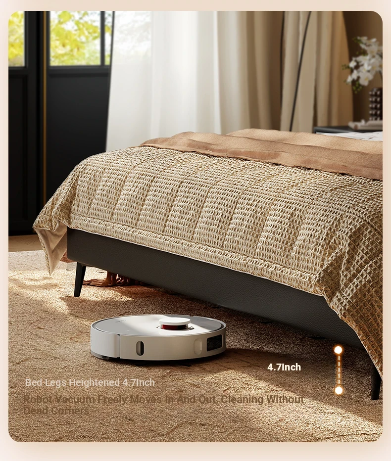 [Flagship Version 0.08in First-Layer Cowhide] Bed + Bedside Table * 1 + Mattress