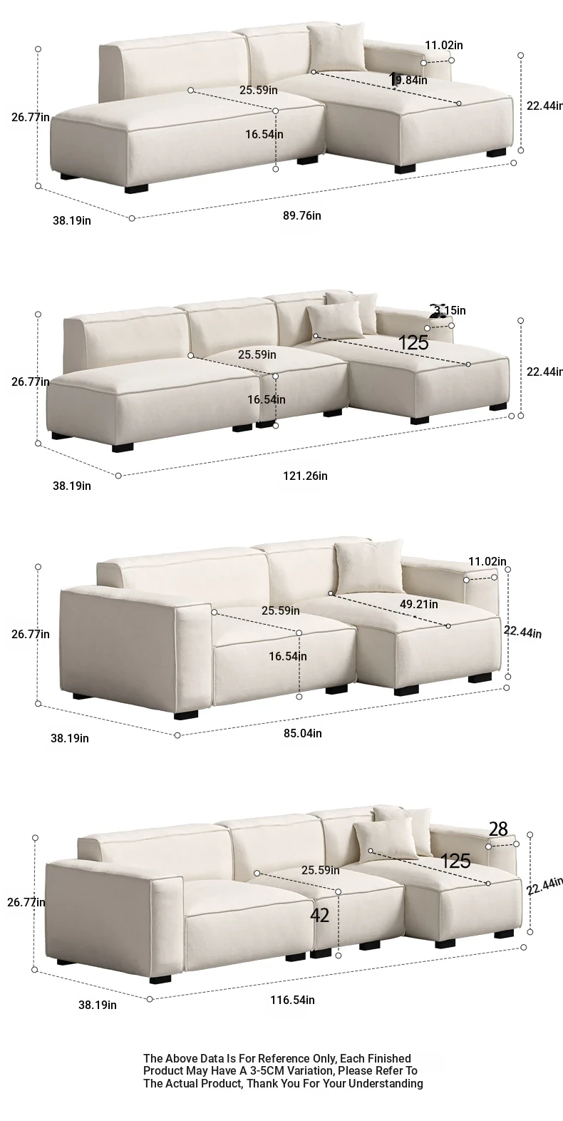 【Fully Removable & Washable Design】 128.35in Straight Row, Cloud-Like Comfort