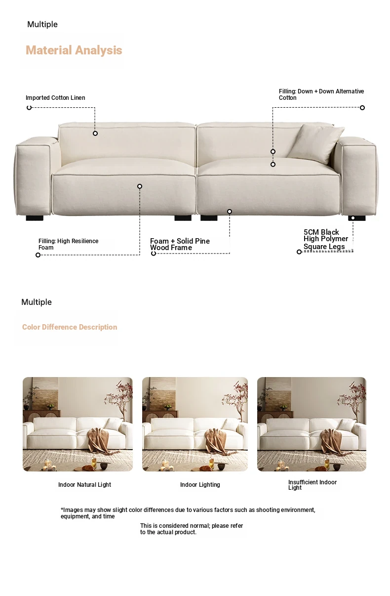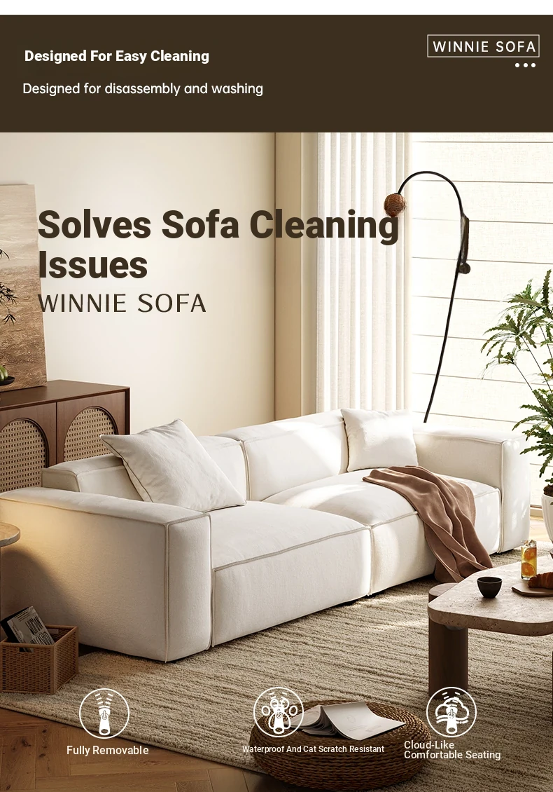 Lando Winnie Fabric Sofa - Modern Minimalist Tofu Block Design for Small Living Rooms - 2025 New Arrival, Fully Removable and Washable