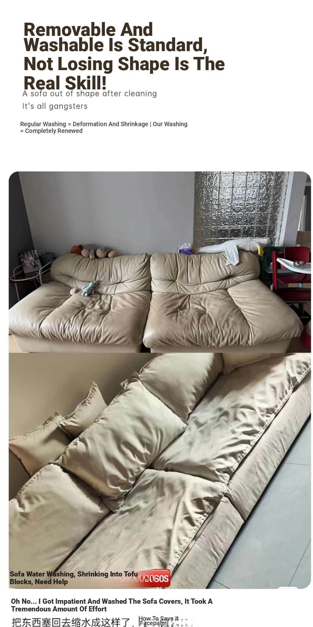 【Fully Removable & Washable Design】 110.24in Straight Row, Cloud-Like Comfort