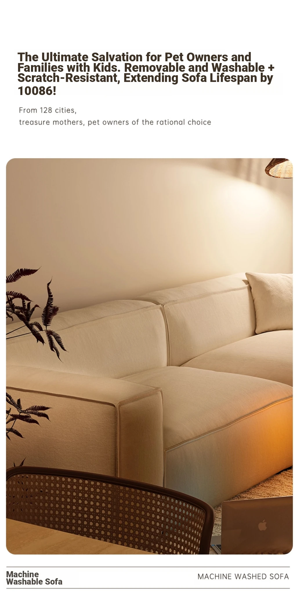 【Fully Removable & Washable Design】 86.61in Straight Row, Cloud-Like Comfort