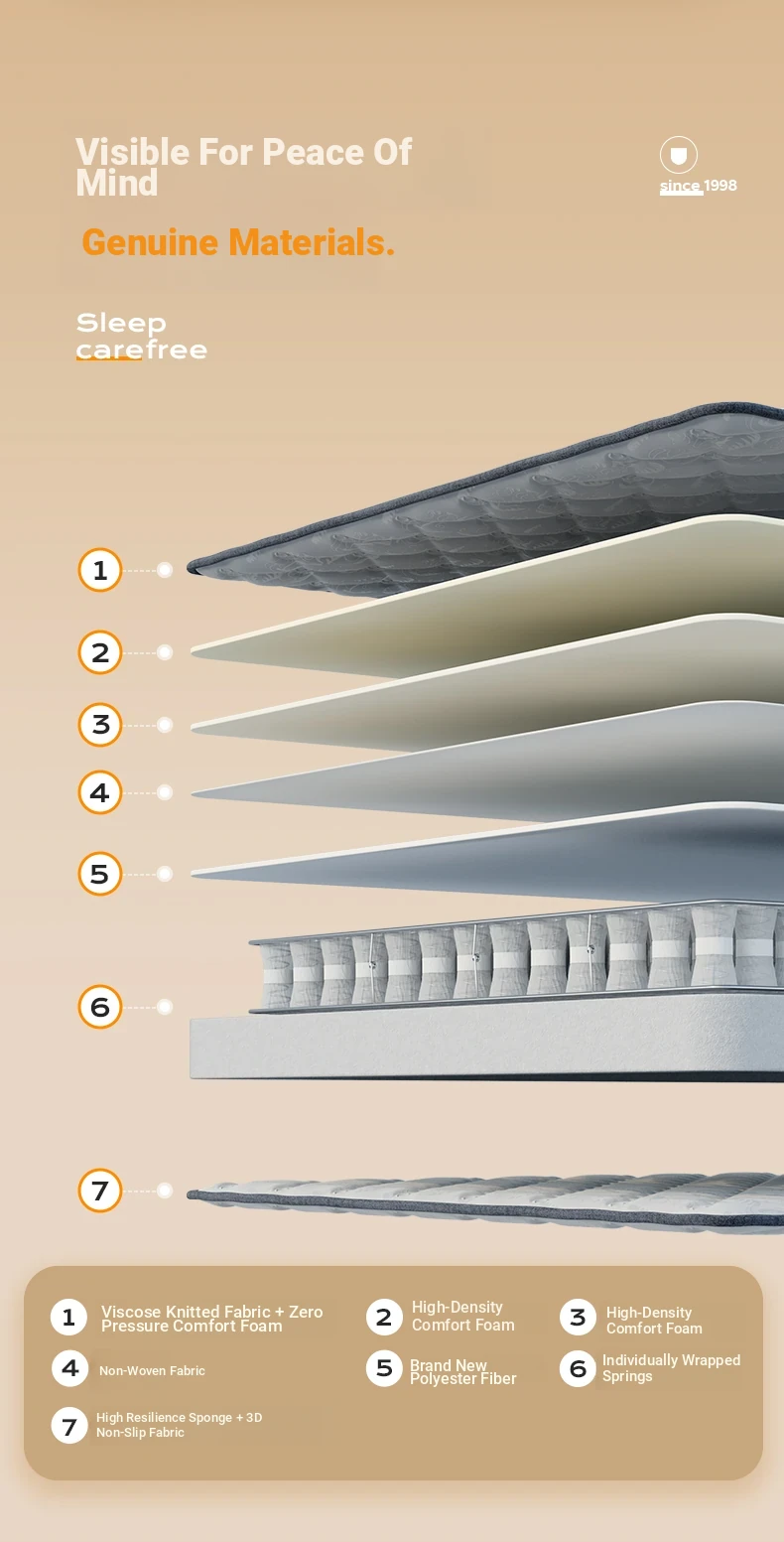 Langdu Gray Wolf Spine-Protecting Mattress - 1.8m Independent Spring Bed, Economic Bedroom Solution with Firm Support, Memory Foam and Latex for Ultimate Comfort at Home.