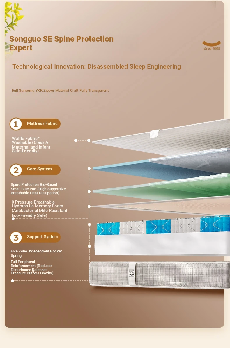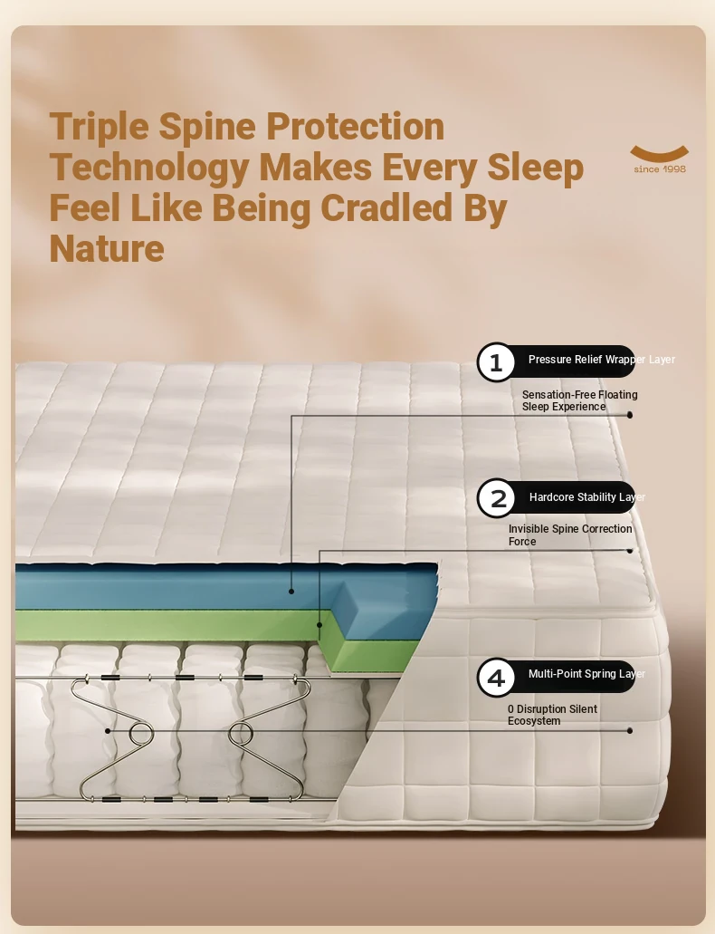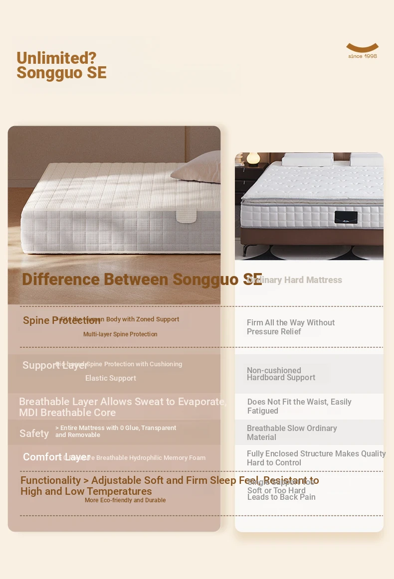 Langdu Pine Cone SE Spine Protection Gel-Free Spring Hard Mattress Pad for Home Bedroom, 180*200 cm, Compatible with Simmons Beds