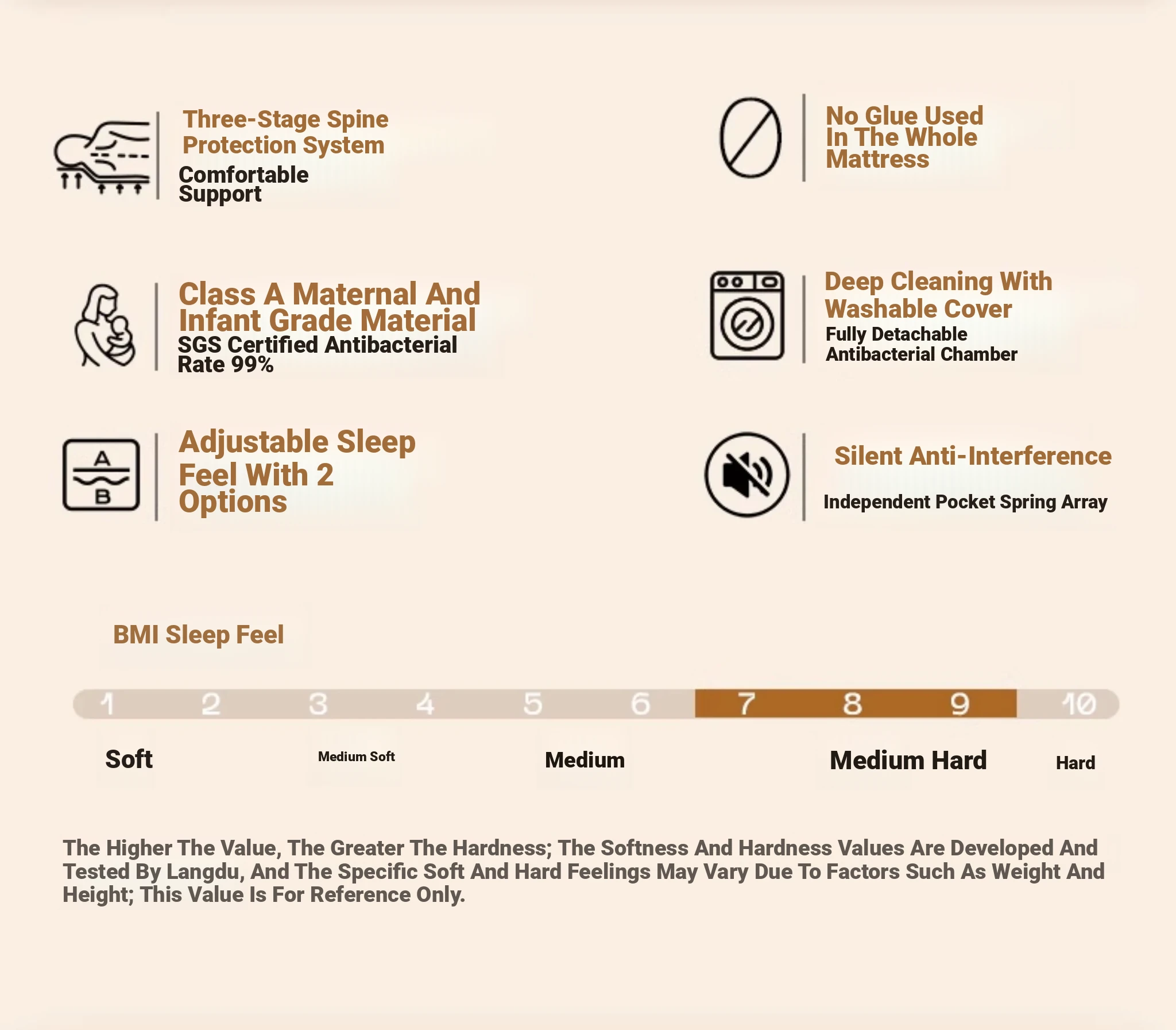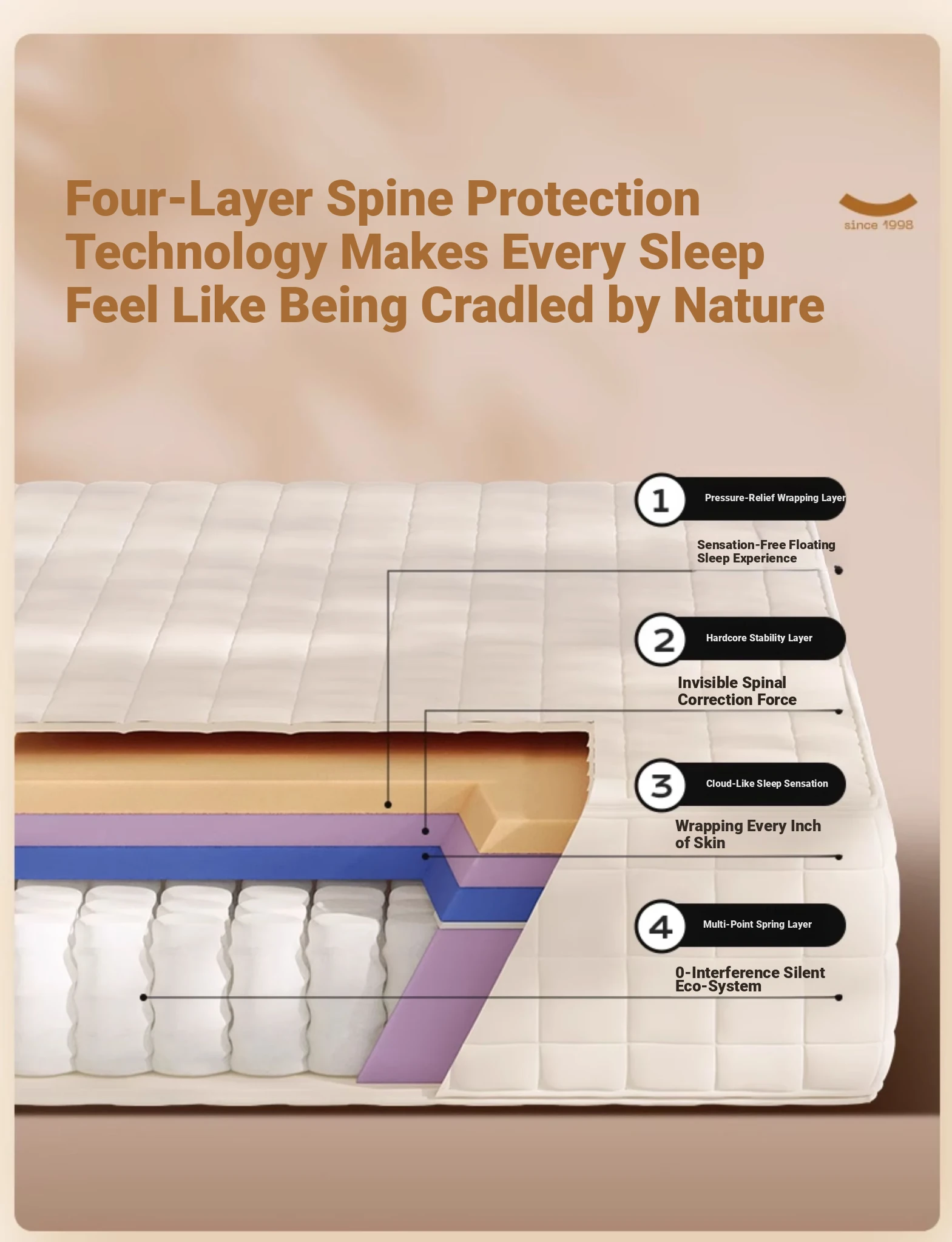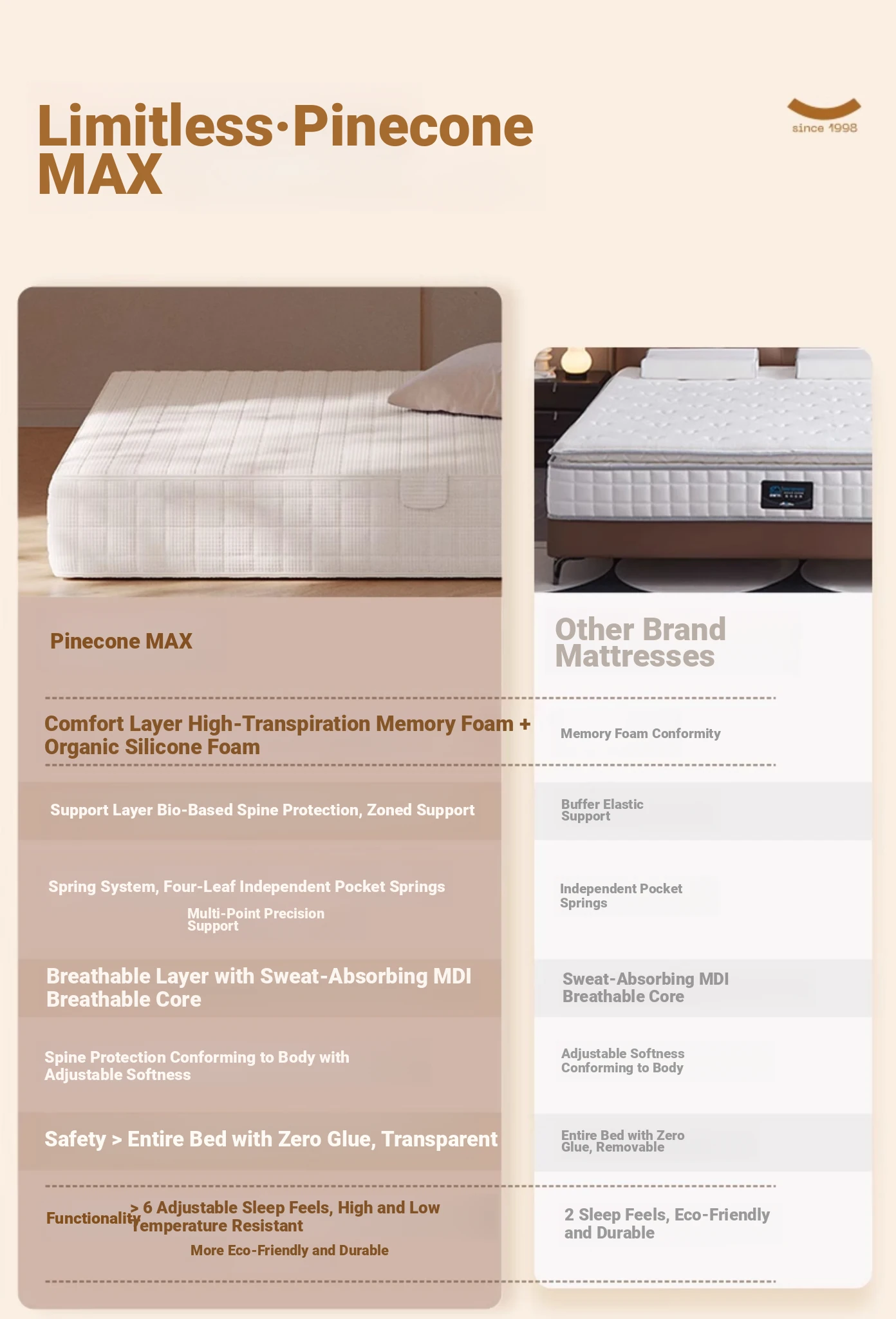 Langdu Pine Cone Spine Support Mattress - 0 Glue Sponge Spring Hard Pad, Lumbar Support for Home Bedroom, Double Bed Size 180*200 cm. Perfect for a restful night's sleep!