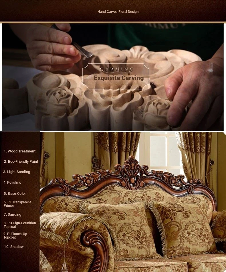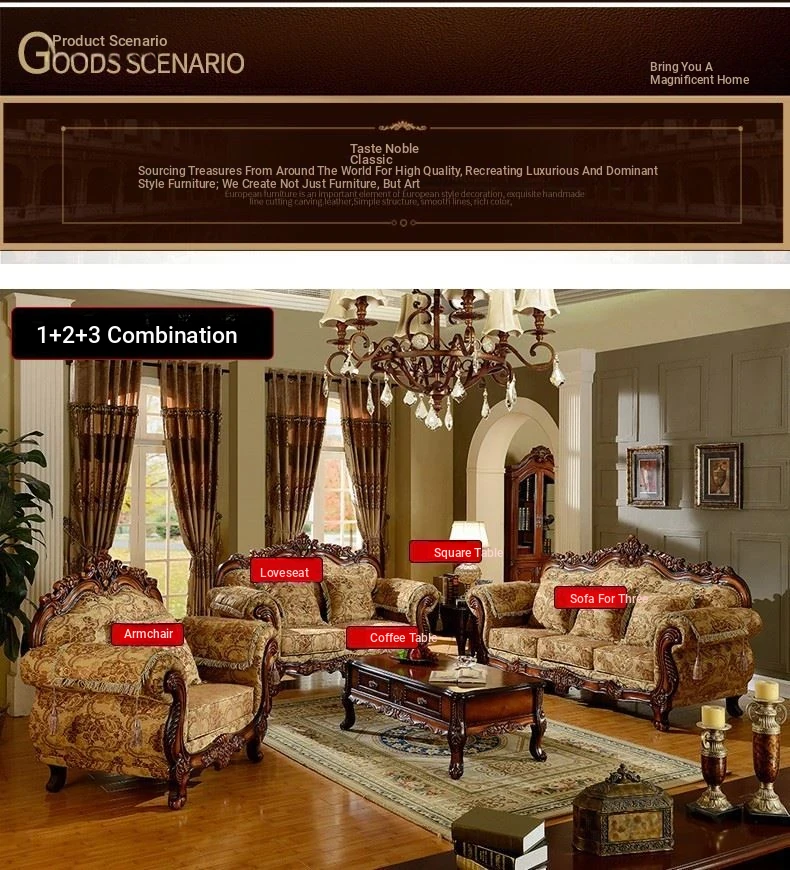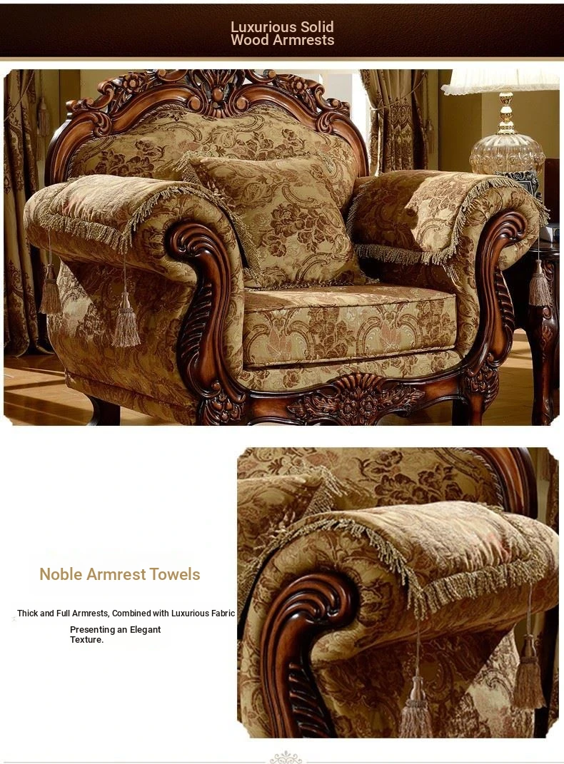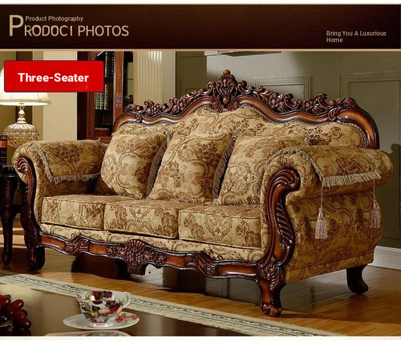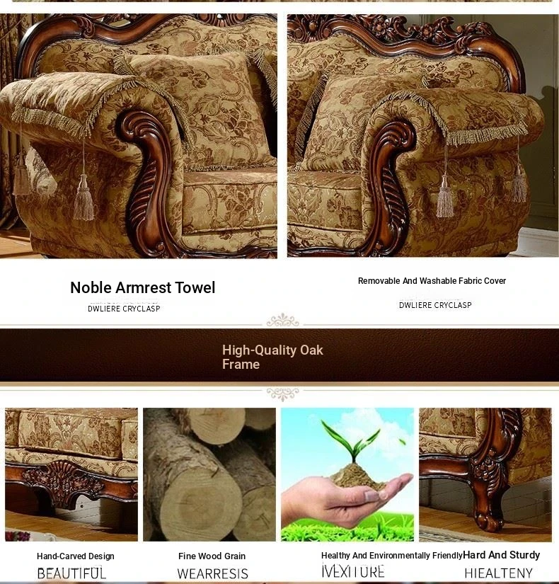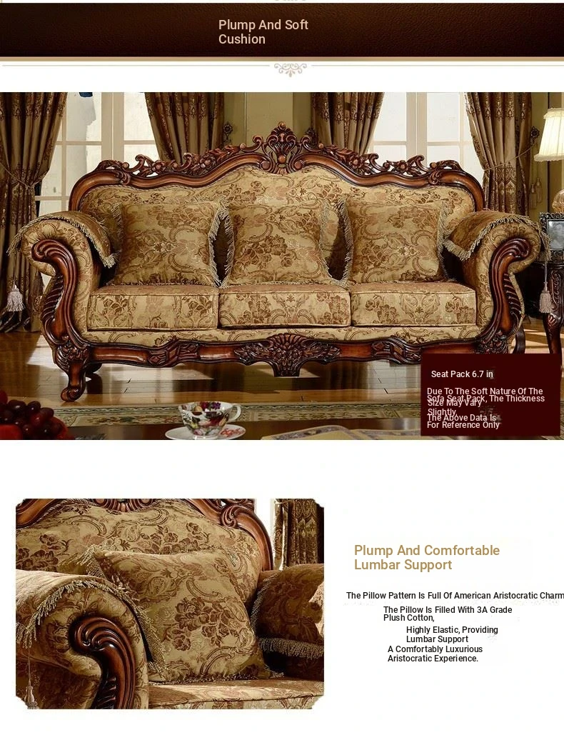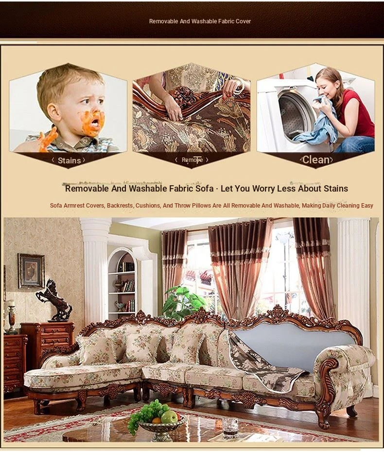 Luxurious European Style U-Shaped Fabric Sofa Set with Carved Details - Removable and Washable, Solid Wood Construction, Perfect for American and French Decor in Your Living Room.
