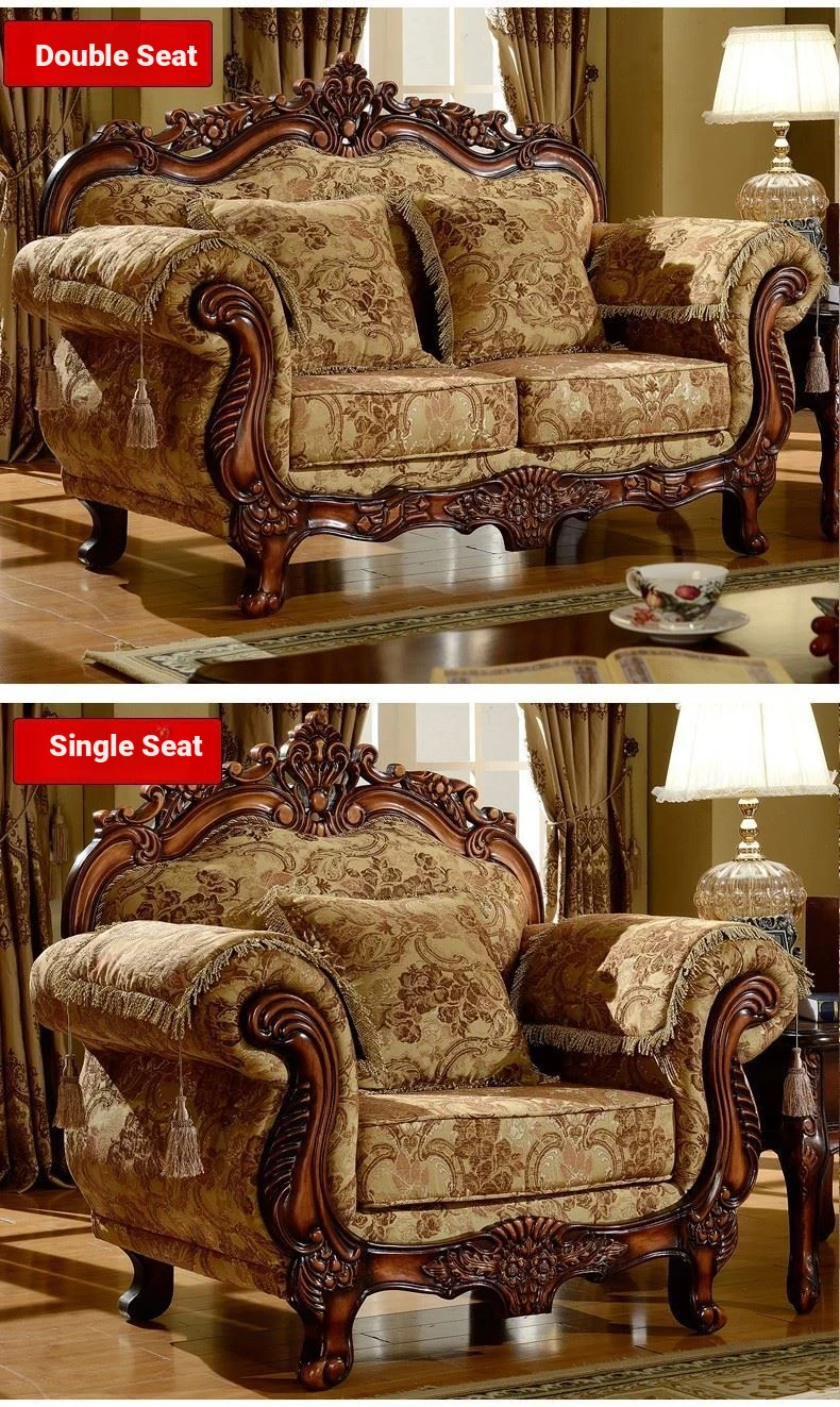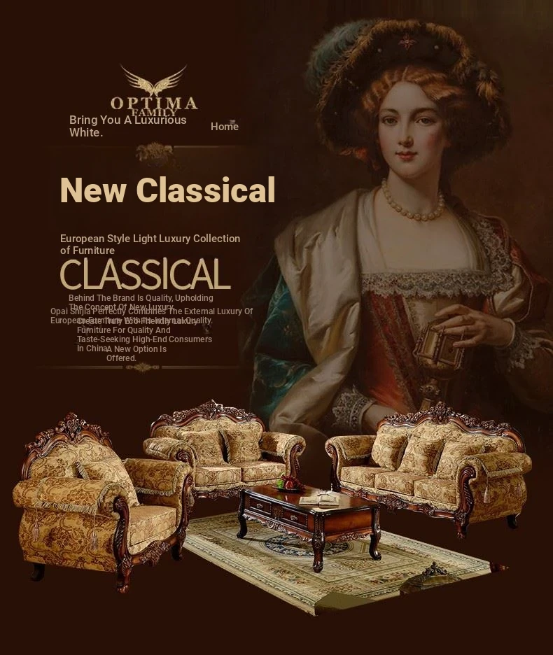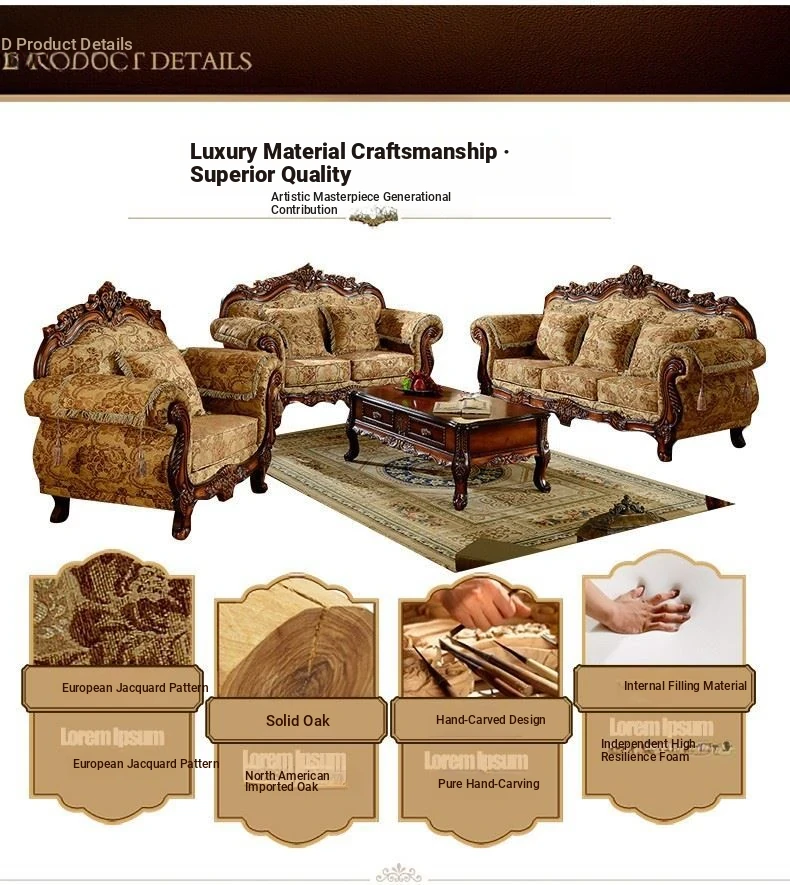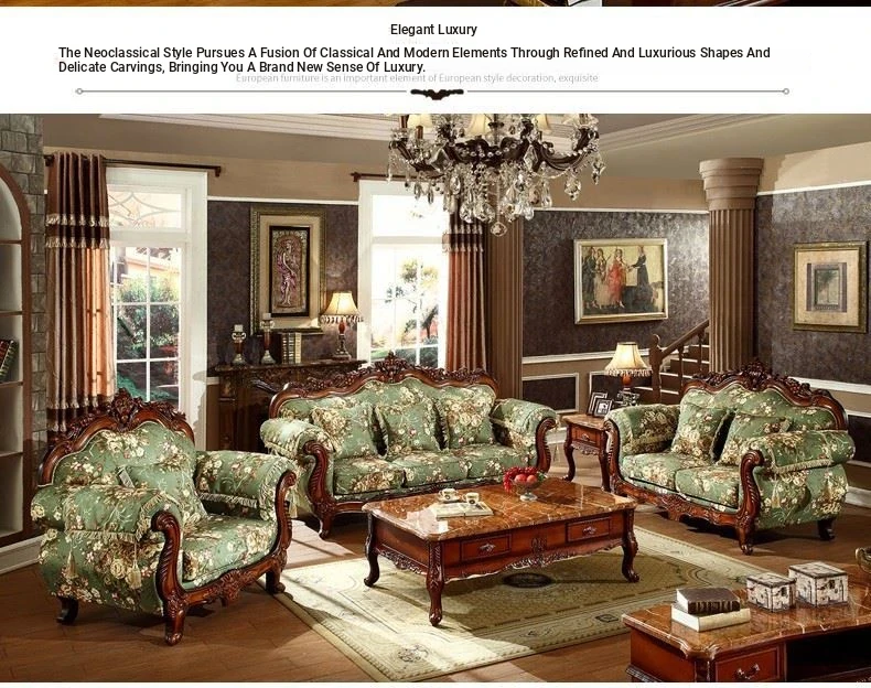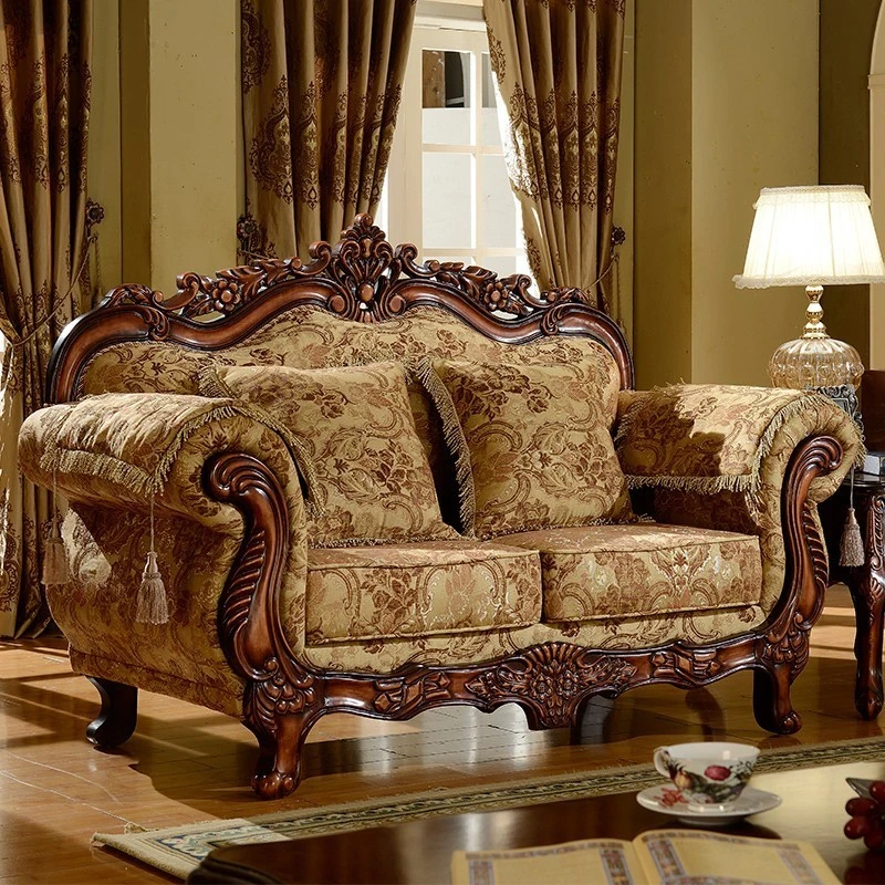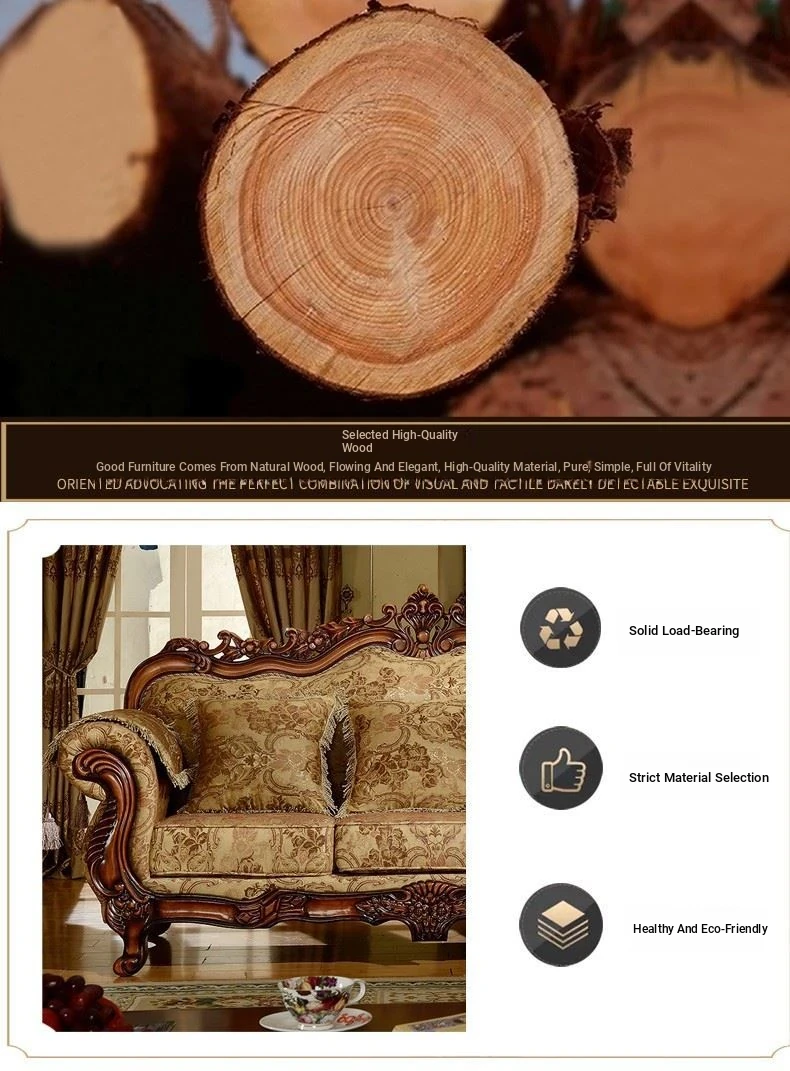 Luxurious European Style U-Shaped Fabric Sofa Set with Carved Details - Removable and Washable, Solid Wood Construction, Perfect for American and French Decor in Your Living Room.