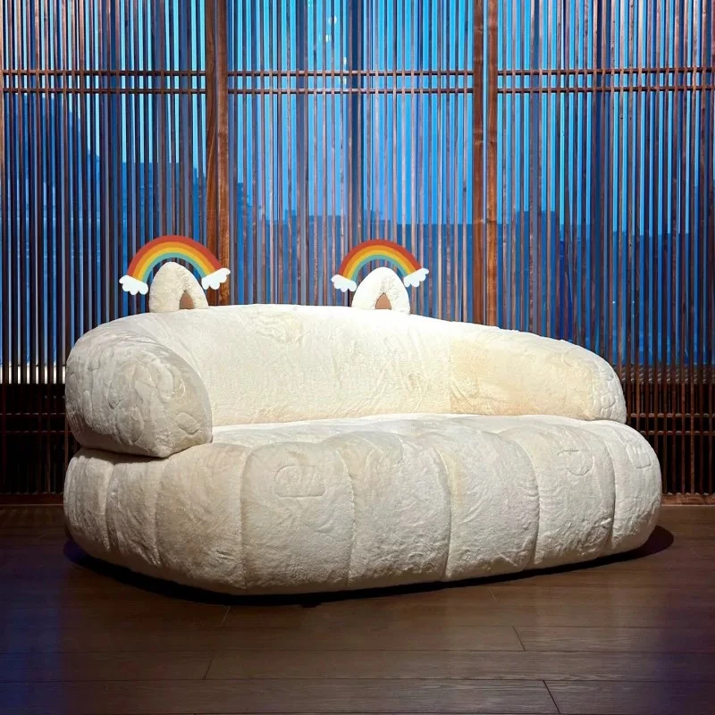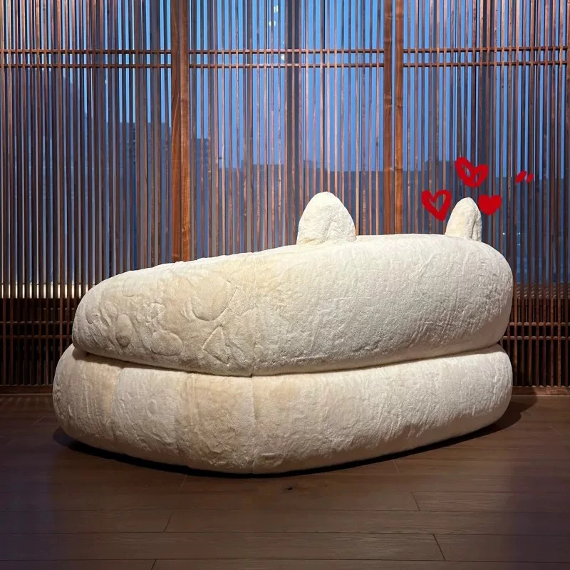 Minimalist Creamy Dog Bed for Kids - Japanese Plush Sofa, Trendy Creative Cartoon Design for Cozy Bedrooms, Perfect Lazy Sofa for Relaxation.