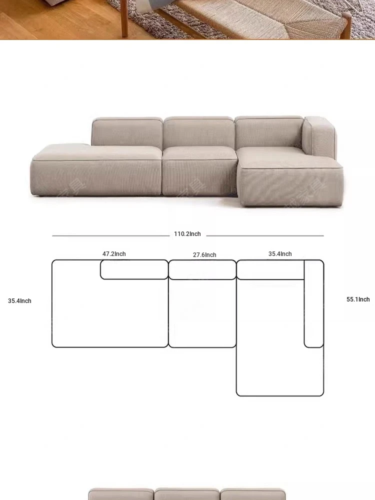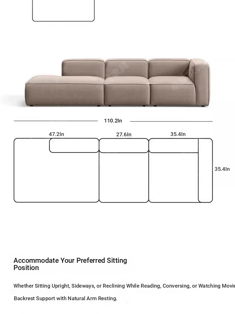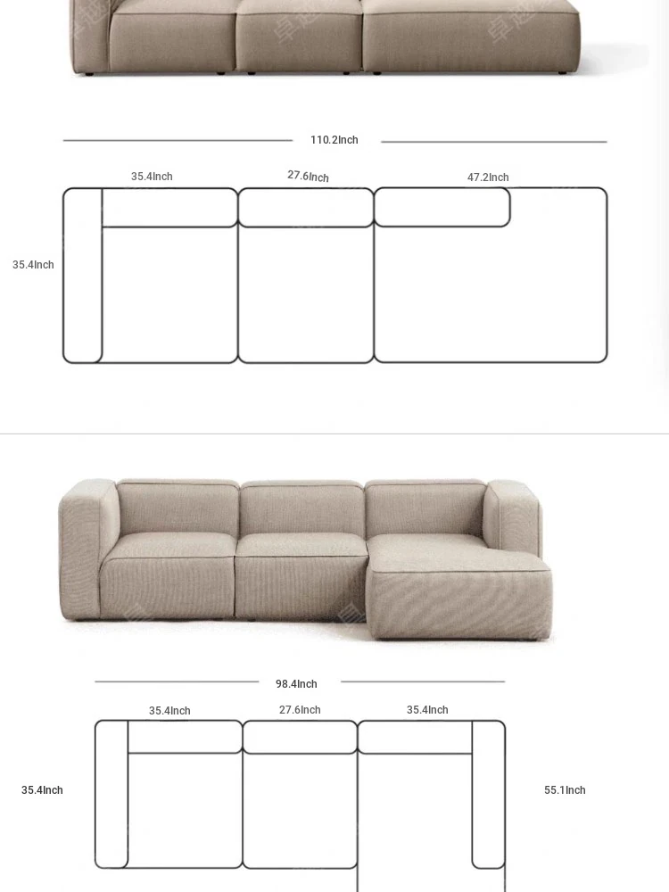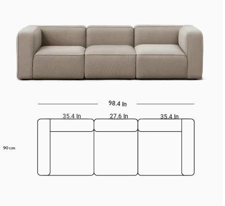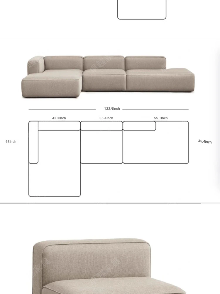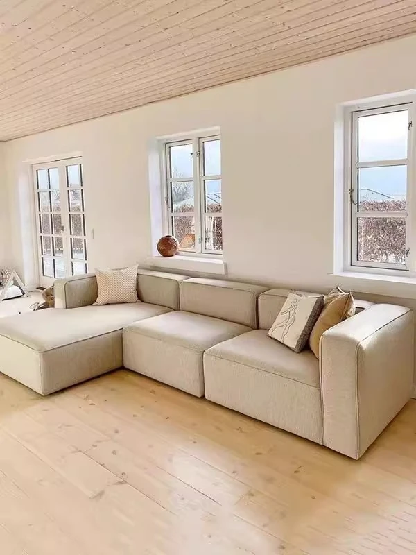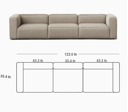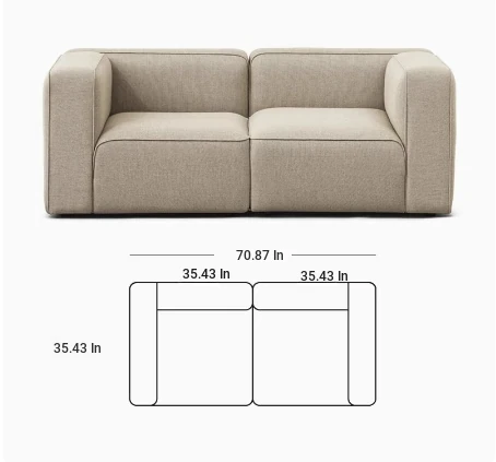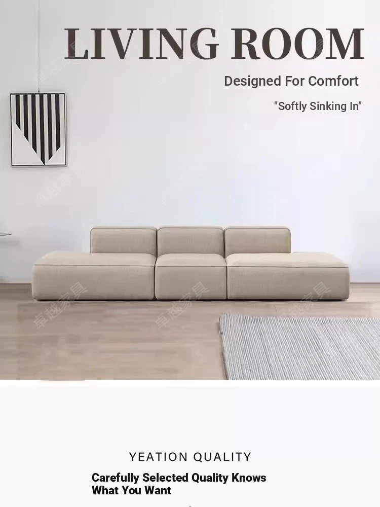 Minimalist Fabric Sofa for Small Living Rooms - Modular Design with No Armrests, Available in 2-Seater and 3-Seater Options, Stylish Cotton Linen Blocks, Perfect for Modern Spaces