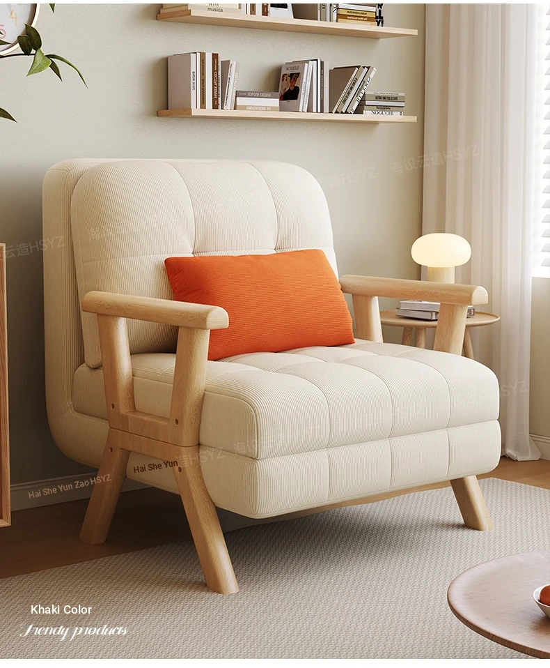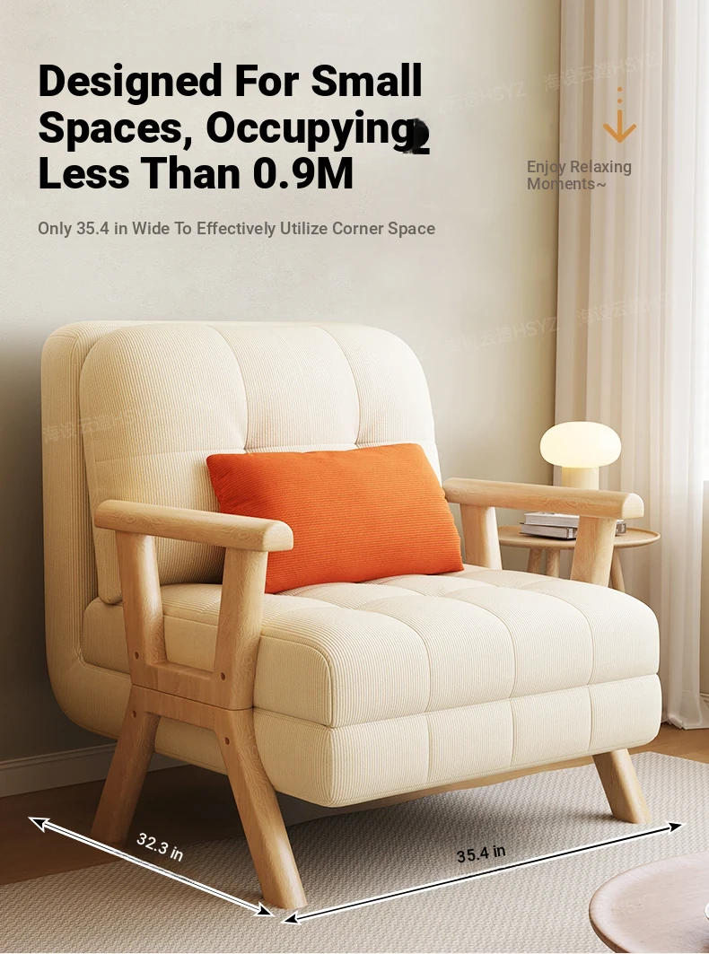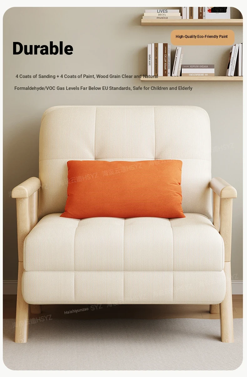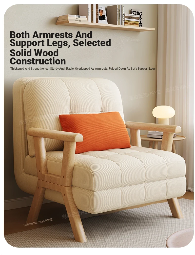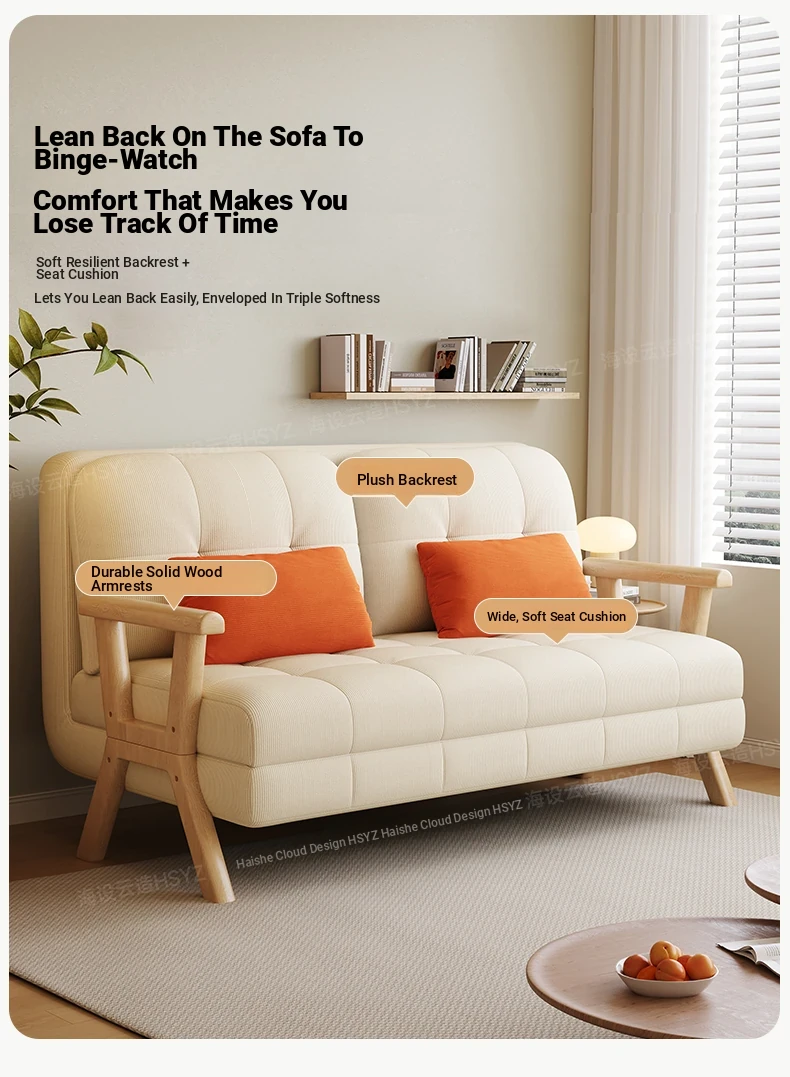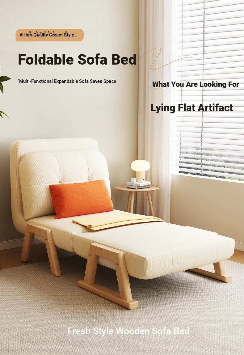 Modern Minimalist Cream Wood Sofa Bed – Space-Saving Dual-Use Folding Bed for Small Apartments and Home Offices, Perfect for Relaxation and Comfort