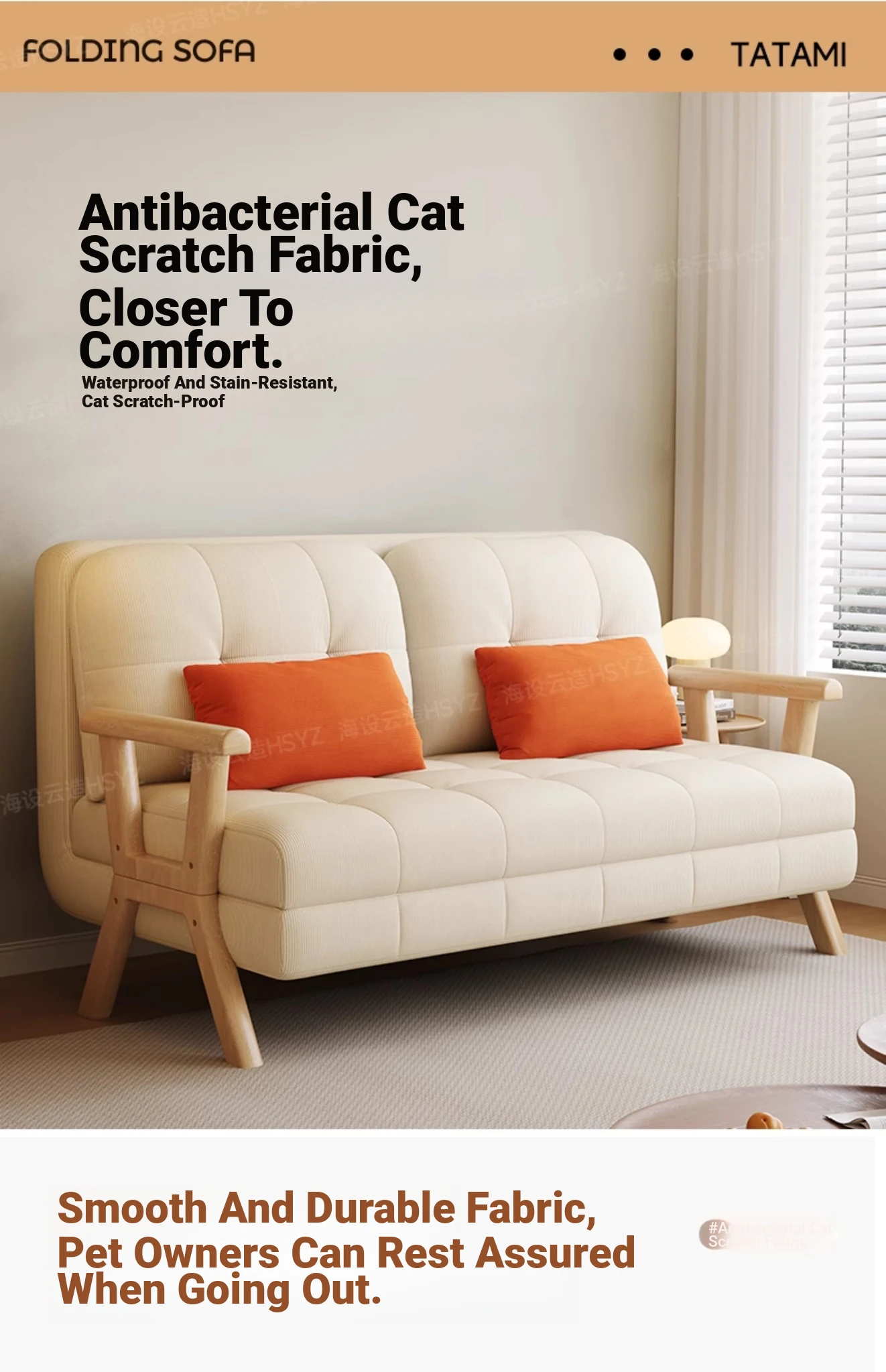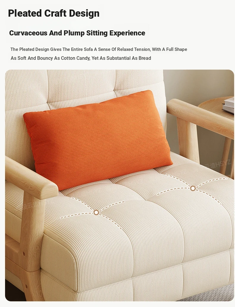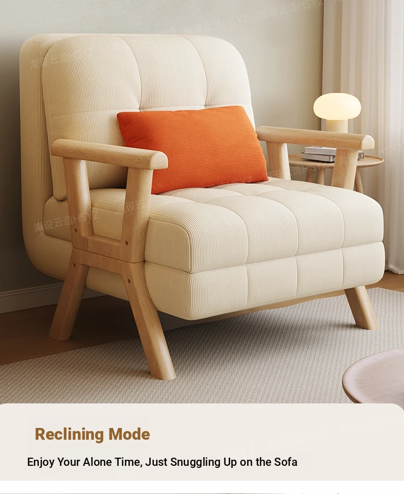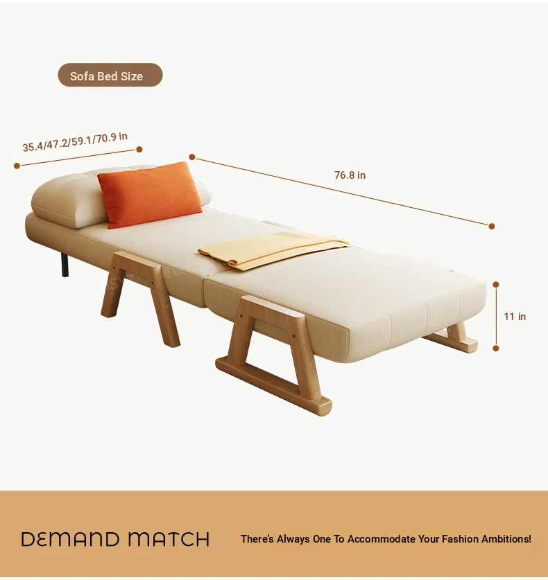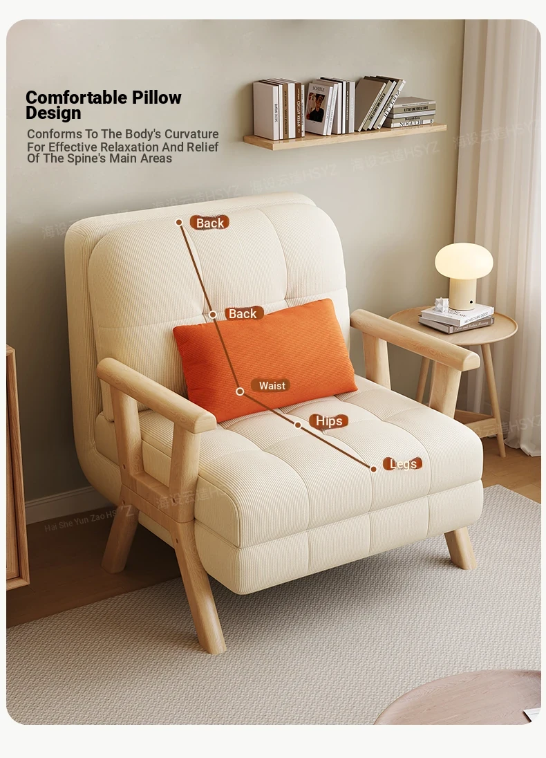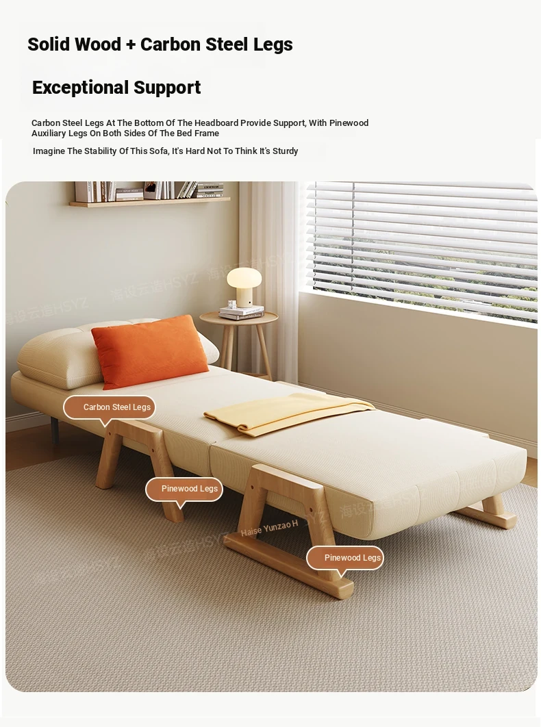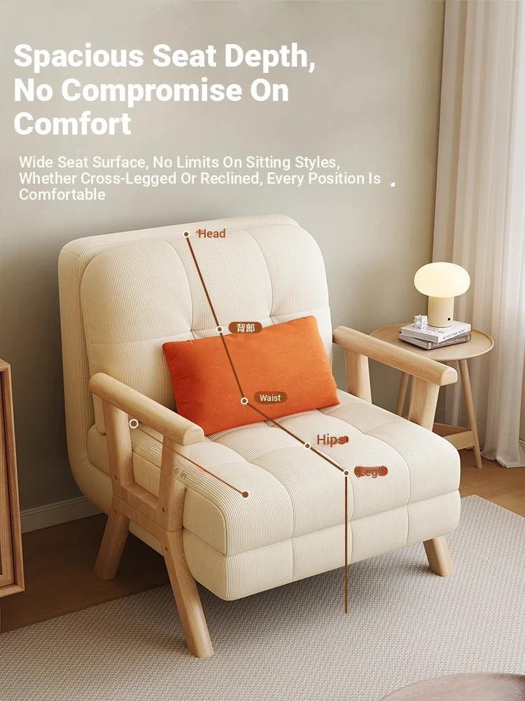 Modern Minimalist Cream Wood Sofa Bed – Space-Saving Dual-Use Folding Bed for Small Apartments and Home Offices, Perfect for Relaxation and Comfort