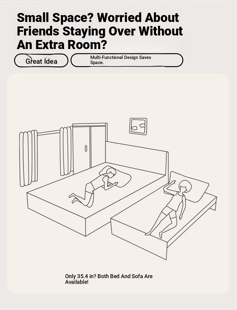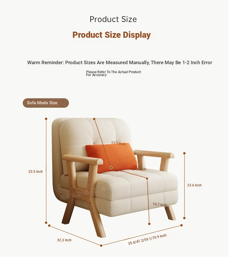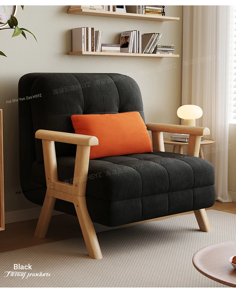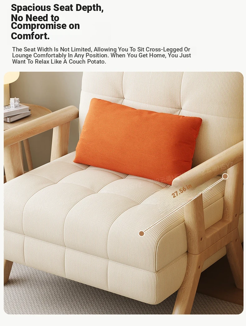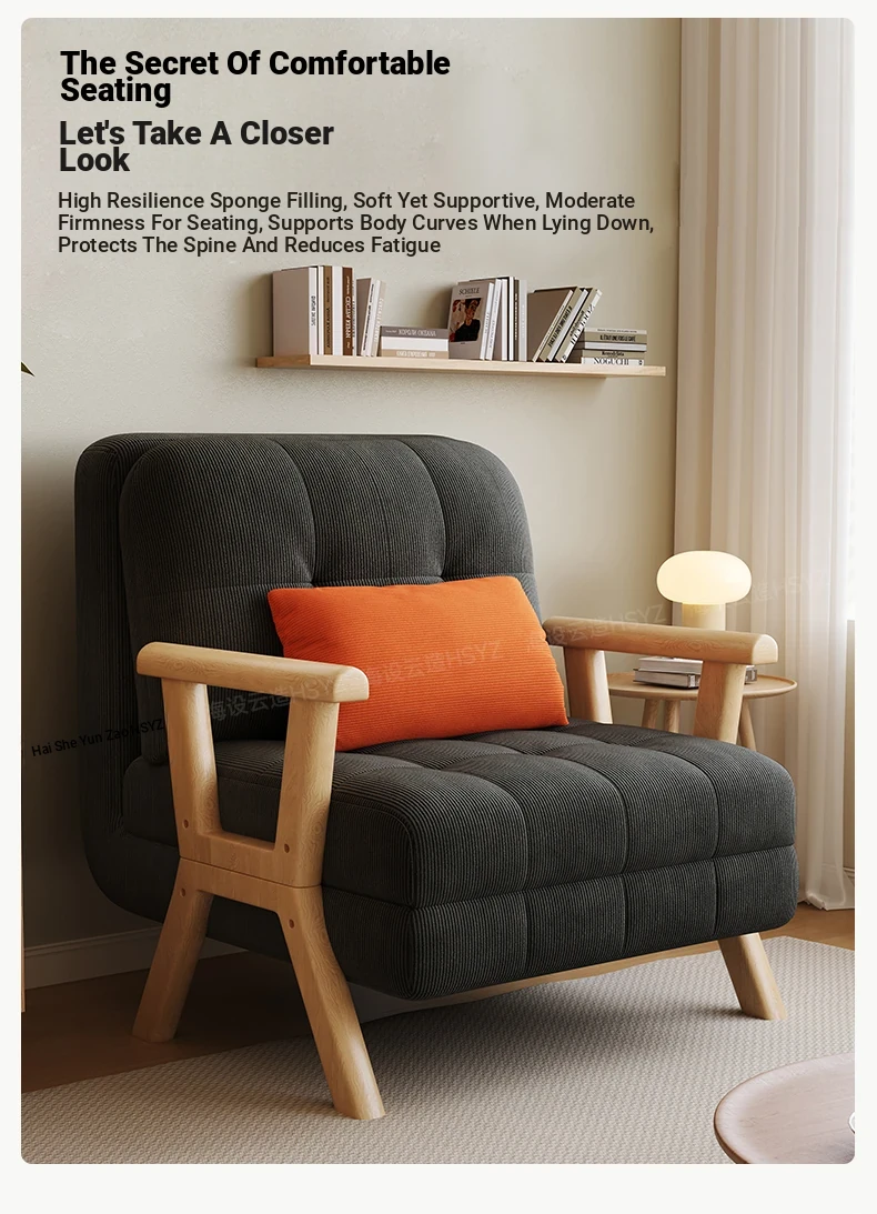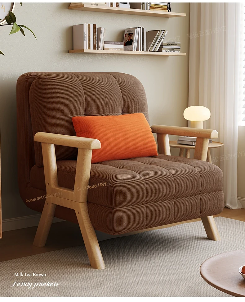 Modern Minimalist Cream Wood Sofa Bed – Space-Saving Dual-Use Folding Bed for Small Apartments and Home Offices, Perfect for Relaxation and Comfort