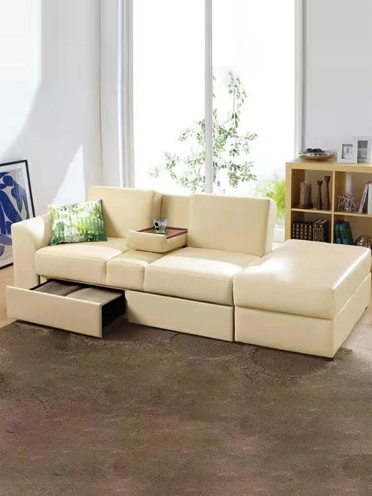 Multifunctional Faux Leather Sofa Bed - Space-Saving, Foldable, and Economical Design for Small Japanese-Style Living Rooms - Perfect Sofa Set for Compact Spaces