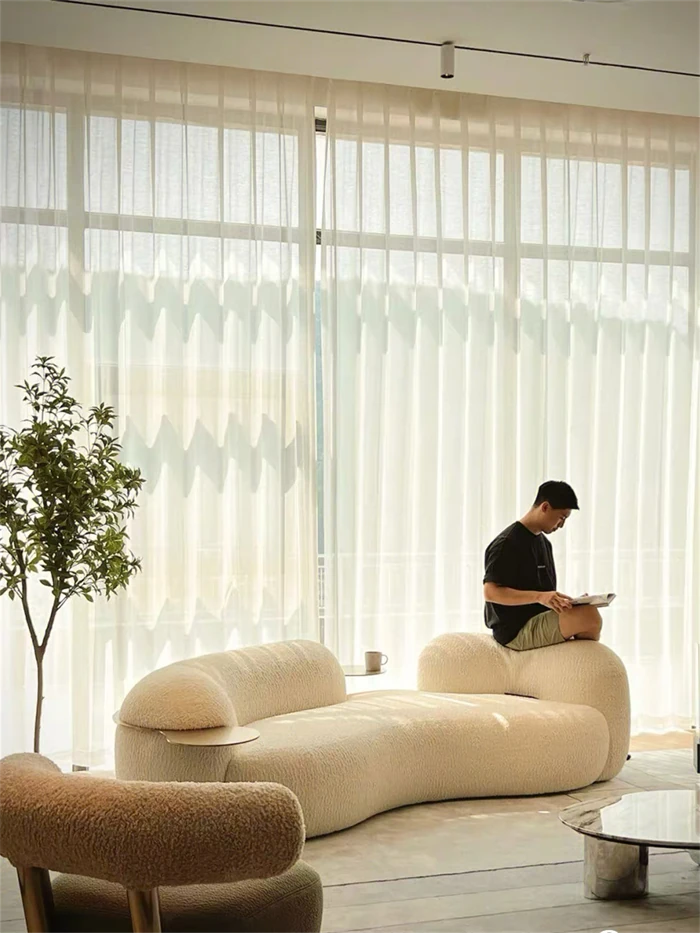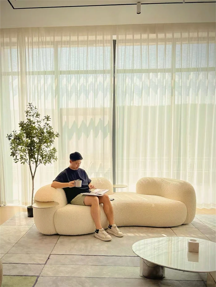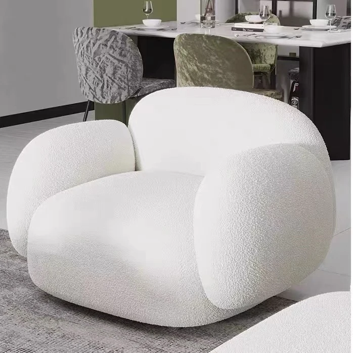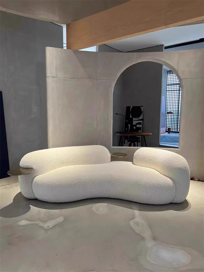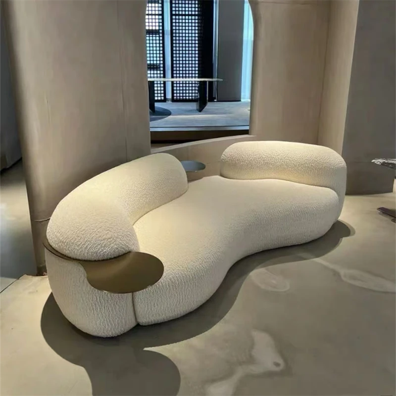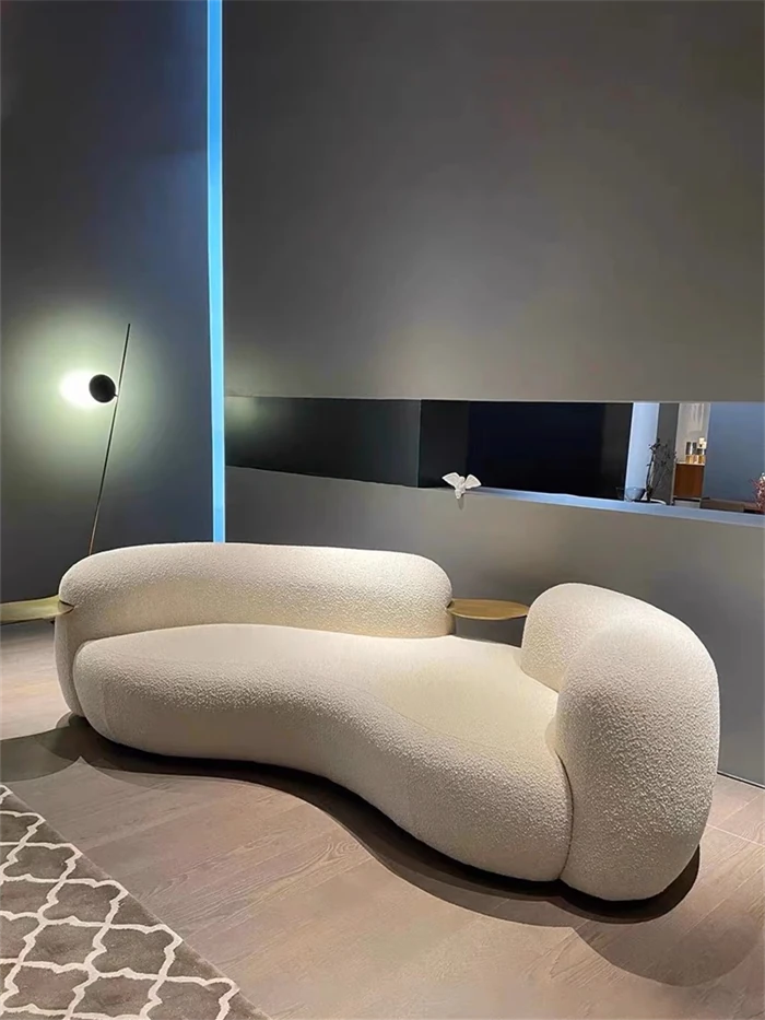 Nordic Modern Minimalist Curved Metal Pea Sofa for Spacious Living Rooms - Trendy Lamb Fleece Designer Sofa