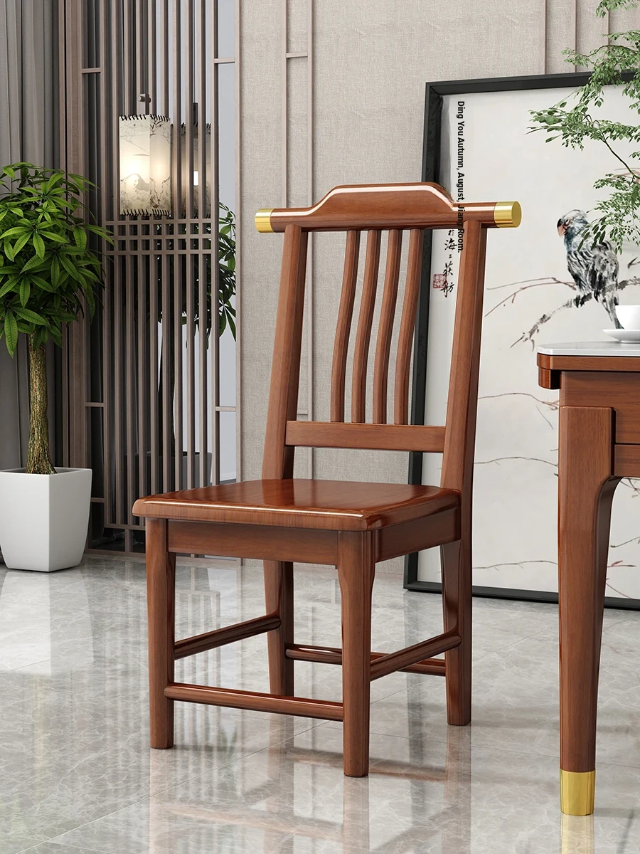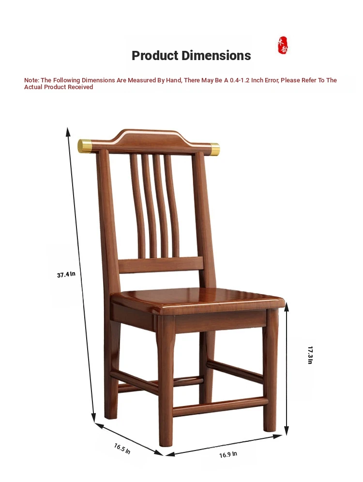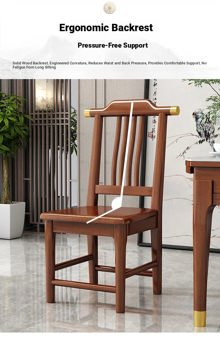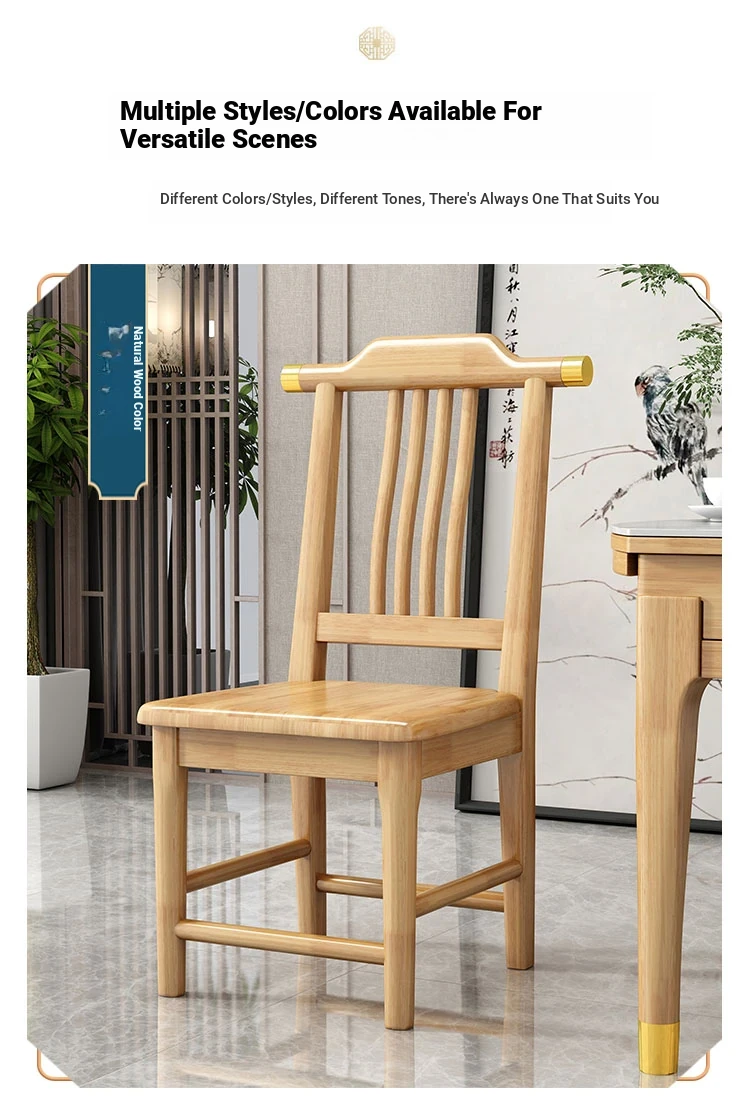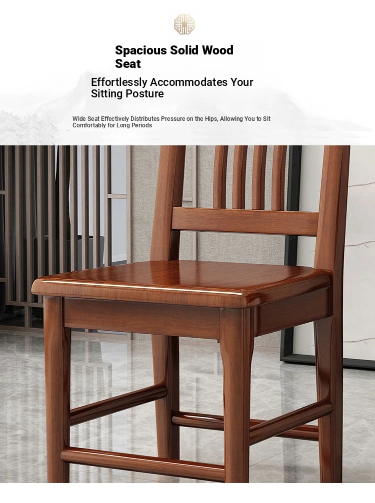 Solid Wood Dining Chair - No Assembly Required, Chinese Style Backrest Stool for Home Use, Perfect for Dining Tables, Restaurant Seating, Comfortable Eating Chair