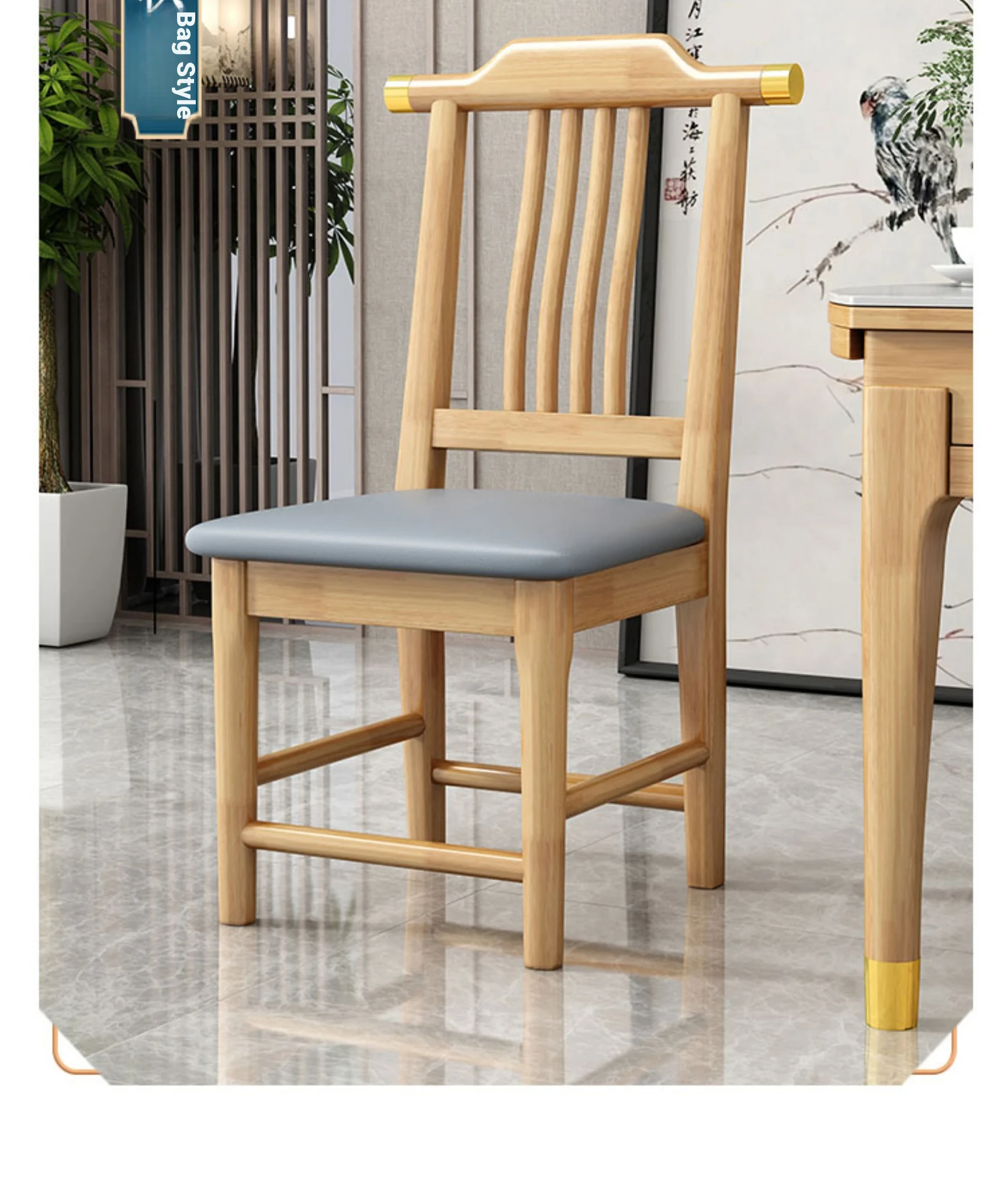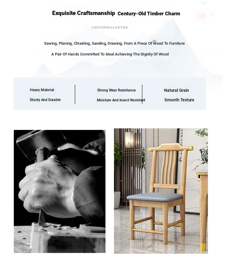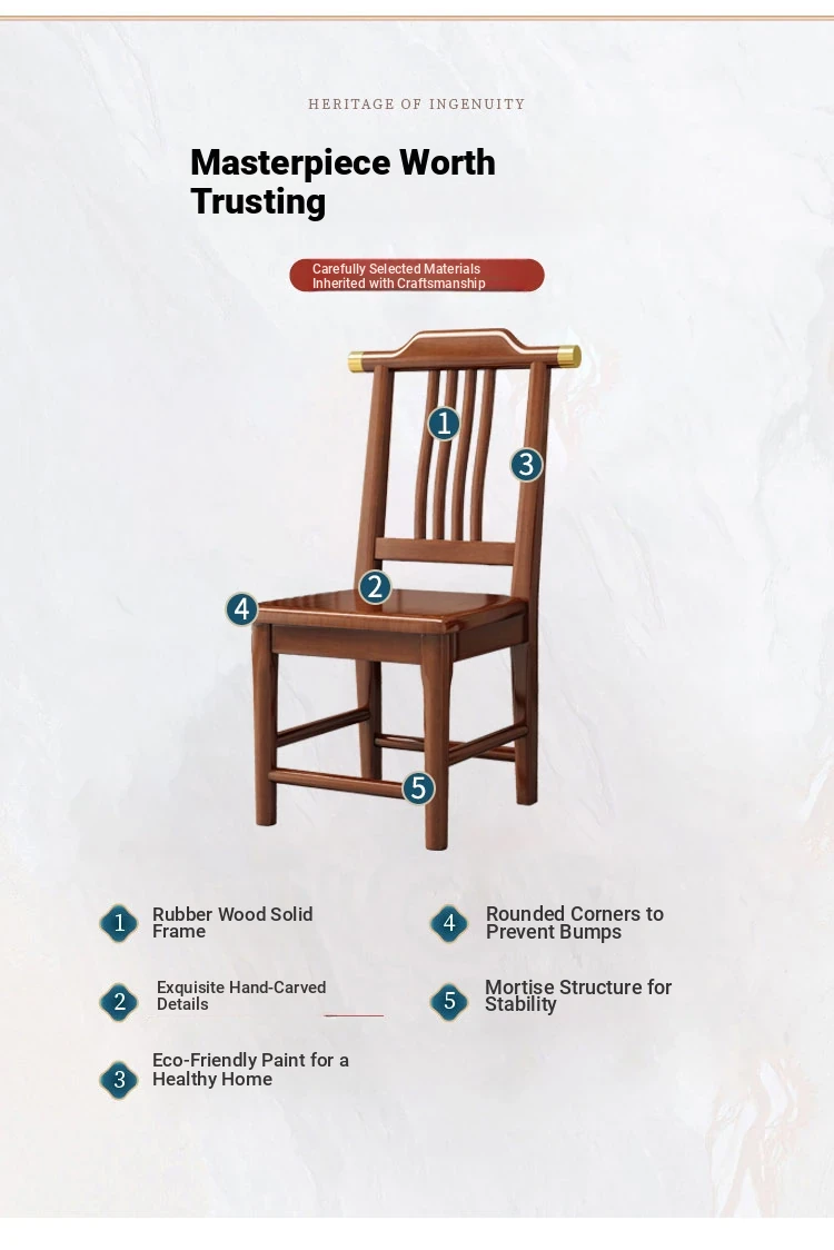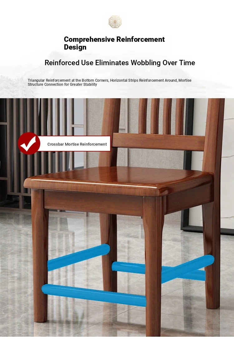 Solid Wood Dining Chair - No Assembly Required, Chinese Style Backrest Stool for Home Use, Perfect for Dining Tables, Restaurant Seating, Comfortable Eating Chair