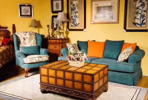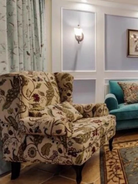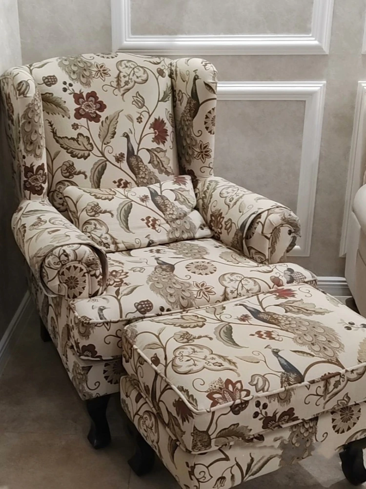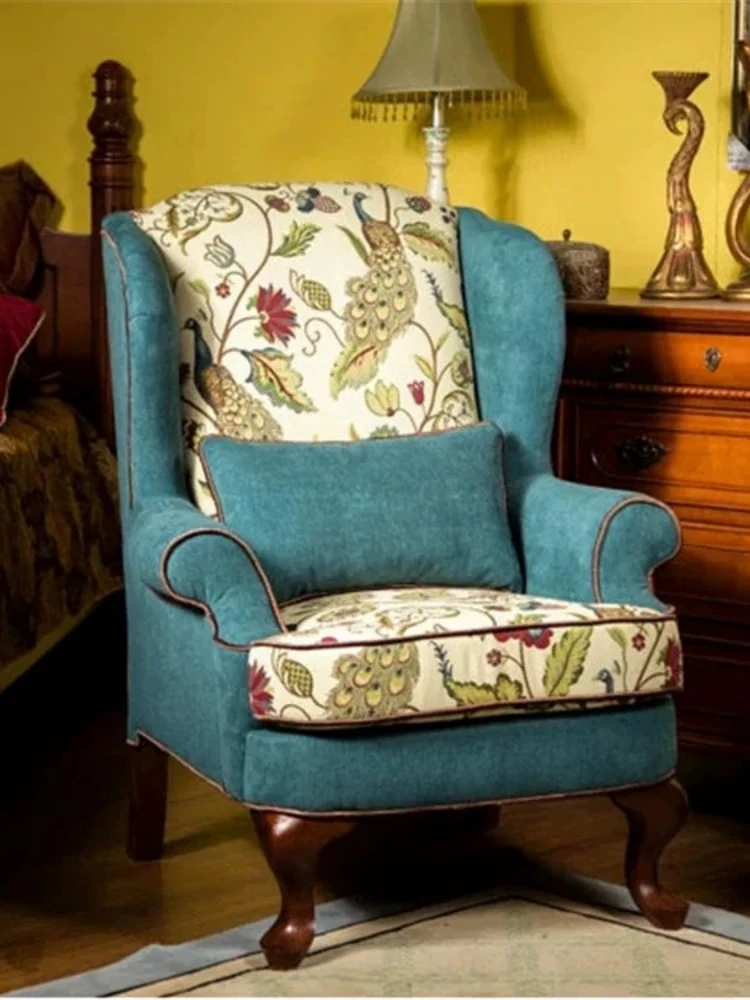 Vintage American Fabric Armchair - French Villa Style, High-Back Leisure Chair, Removable and Washable Upholstery, Perfect for Living Room, Elegant Tiger Chair Design