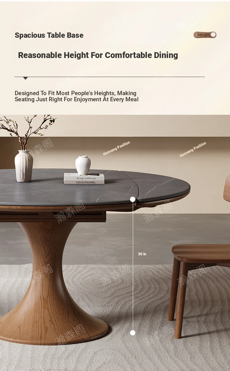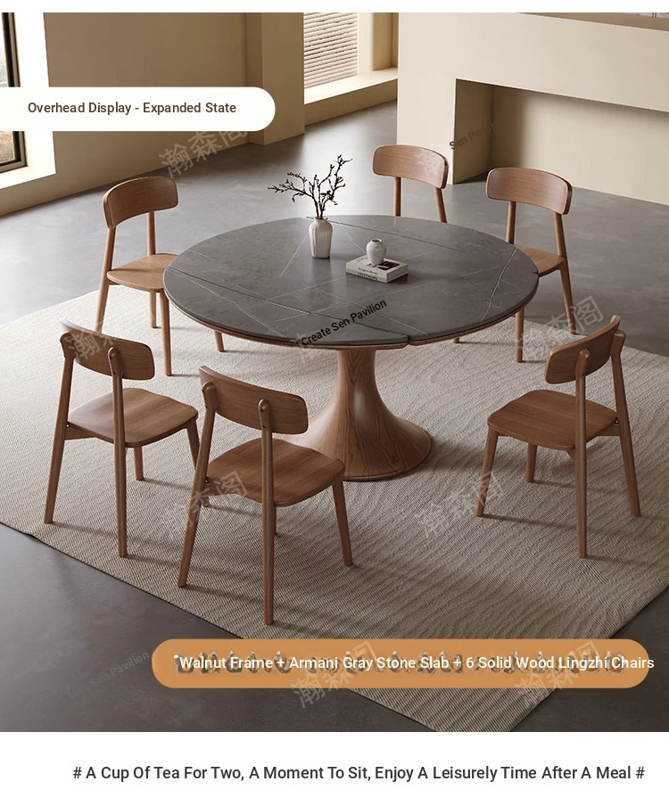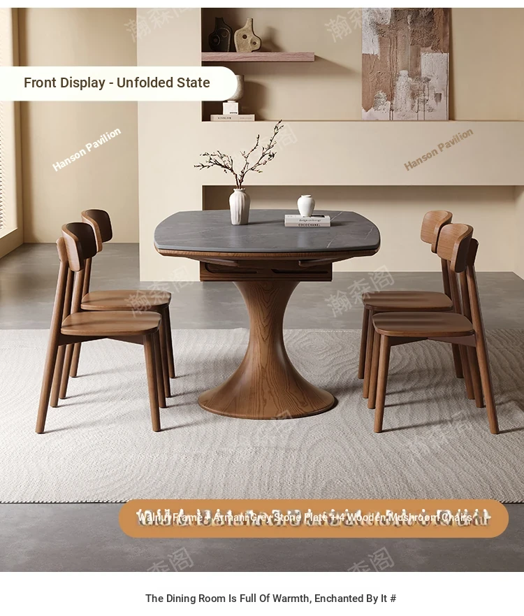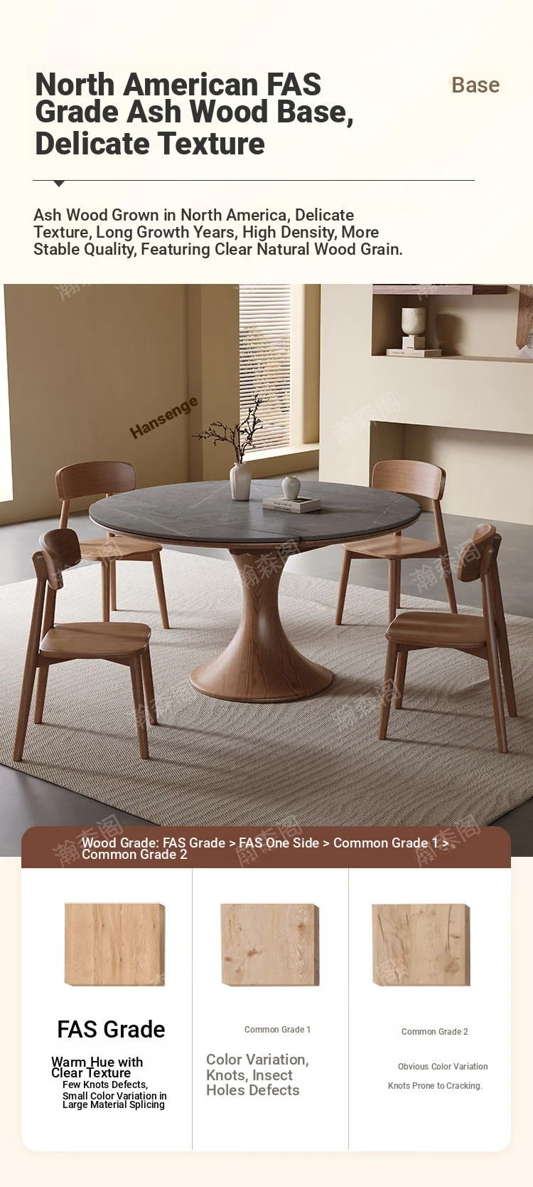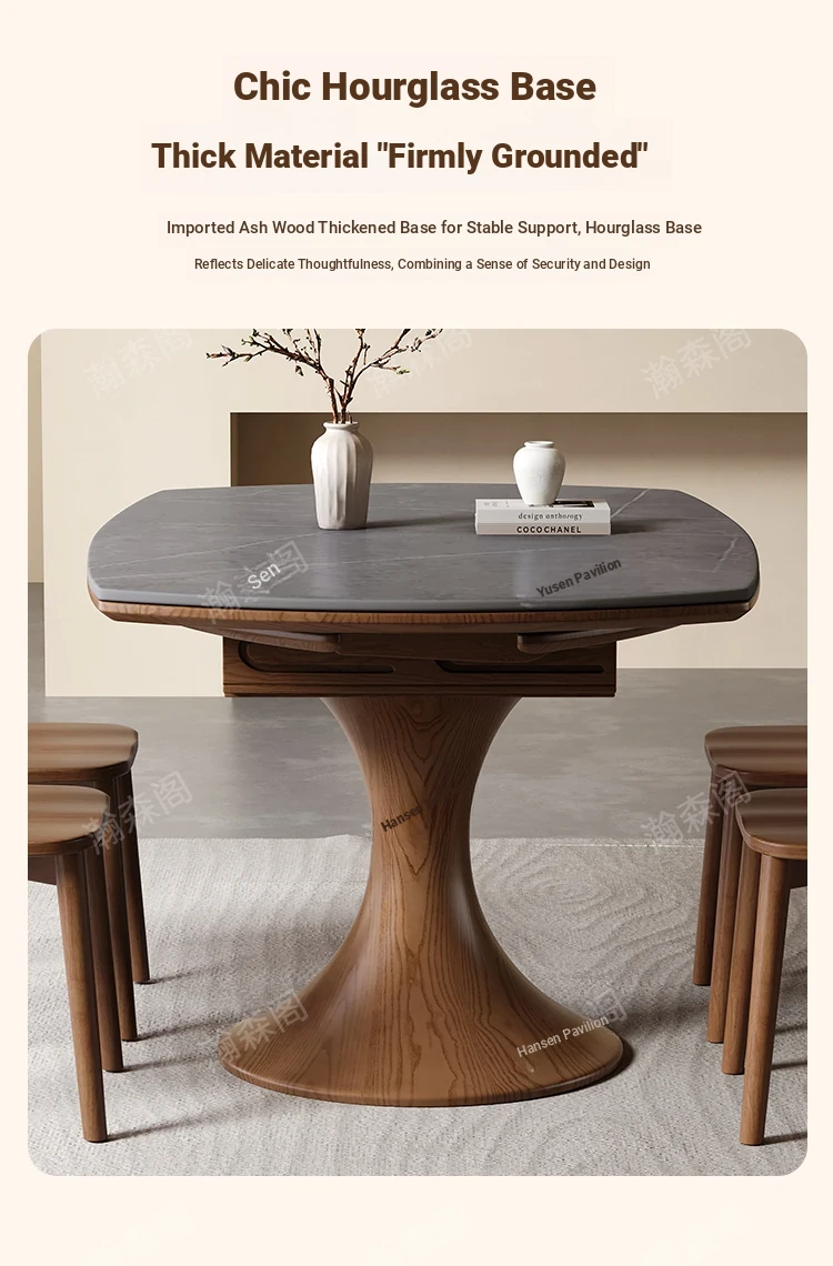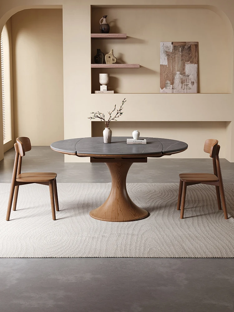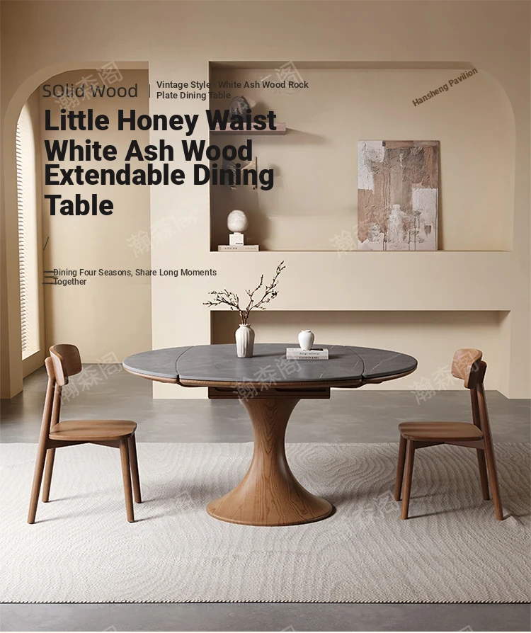 Vintage-Style Extendable Rock Slab Dining Table - Space-Saving Foldable Solid Wood Table for Small Homes, Versatile Square and Round Design in Ash Wood