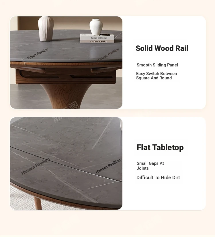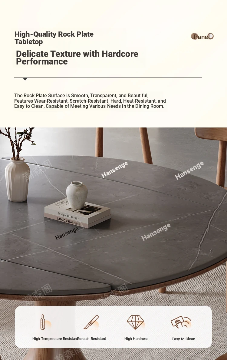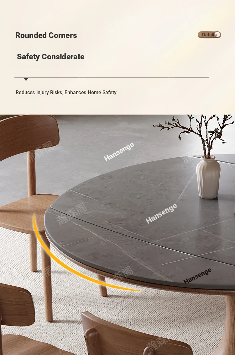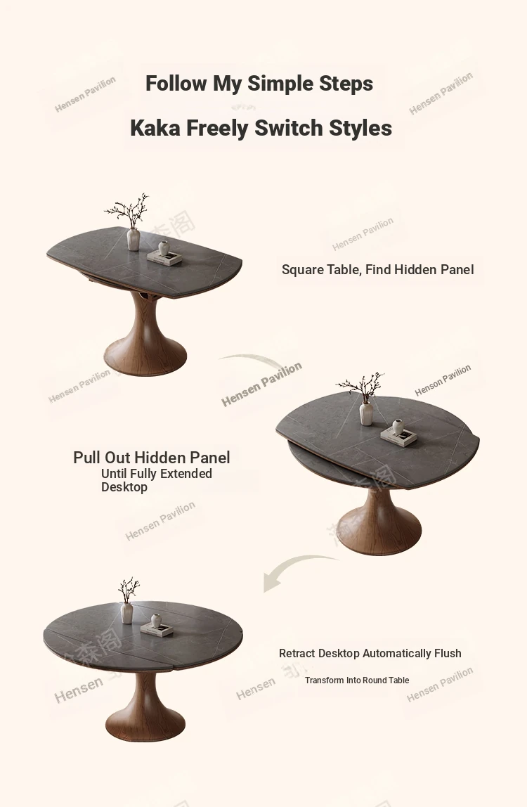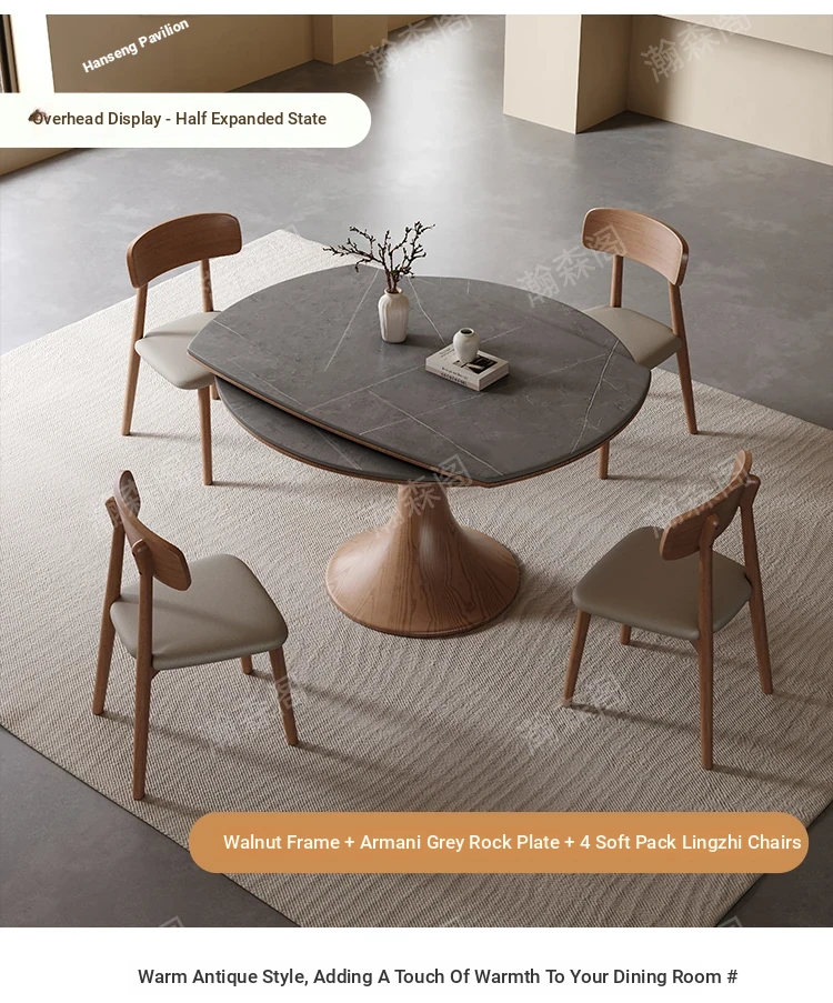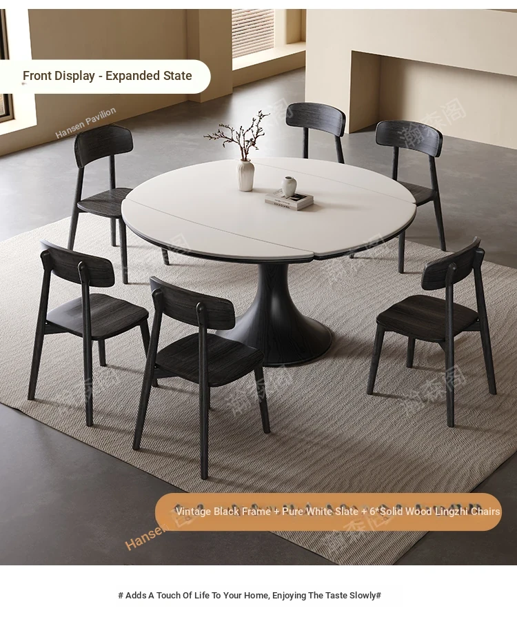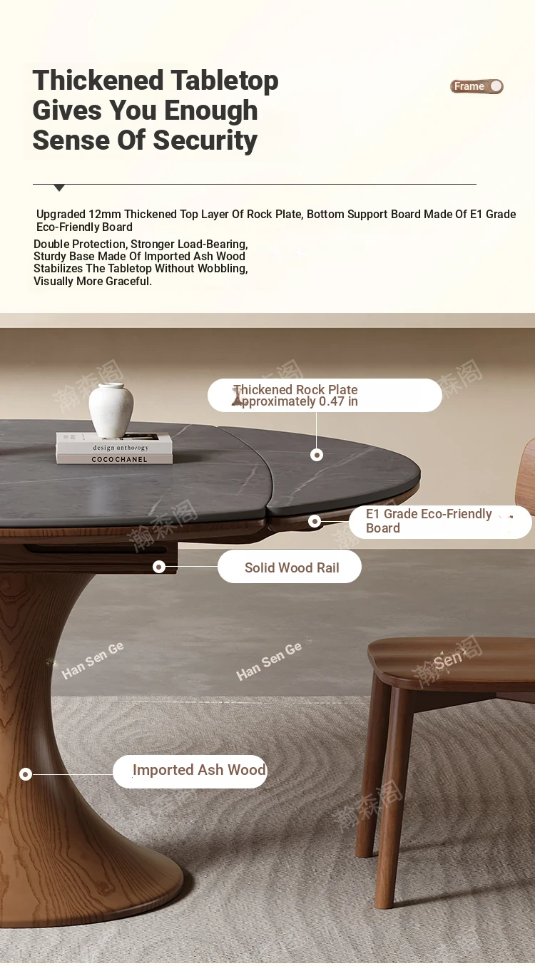 Vintage-Style Extendable Rock Slab Dining Table - Space-Saving Foldable Solid Wood Table for Small Homes, Versatile Square and Round Design in Ash Wood