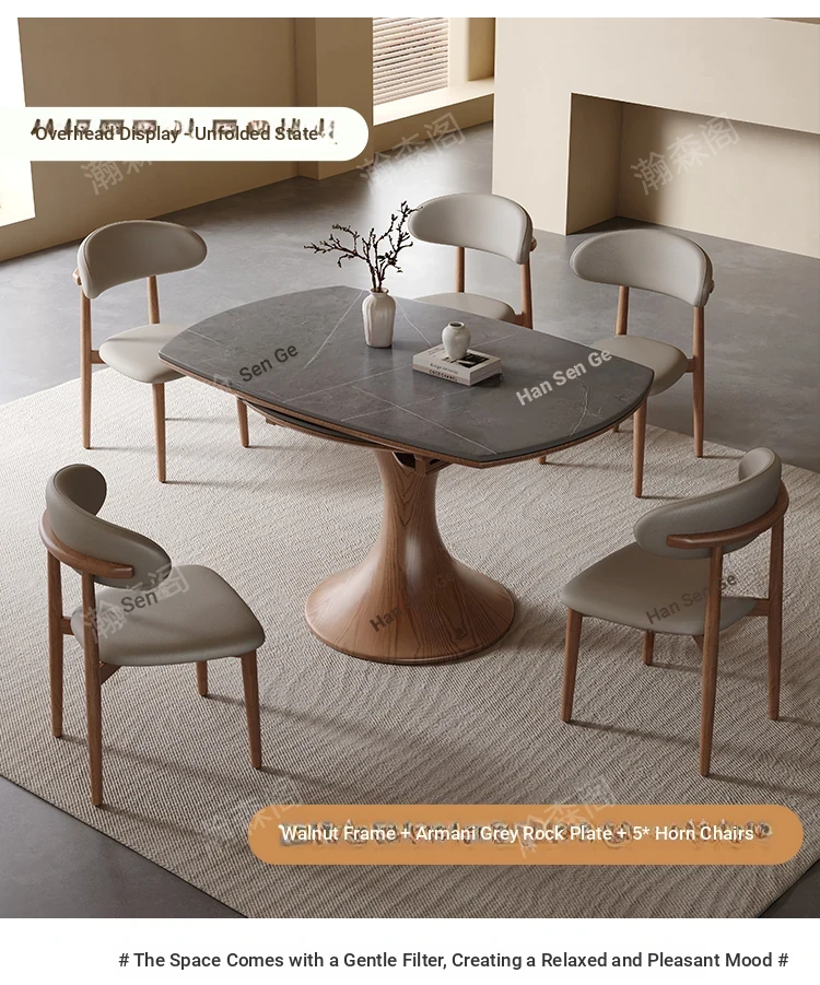 Fangyuan dual-purpose single dining table [brand antibacterial rock plate] +6 * Solid Wood Ganoderma chair
