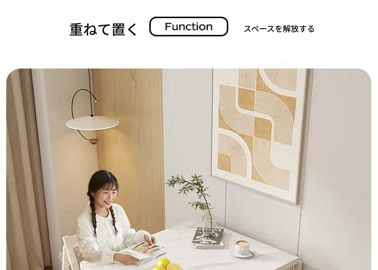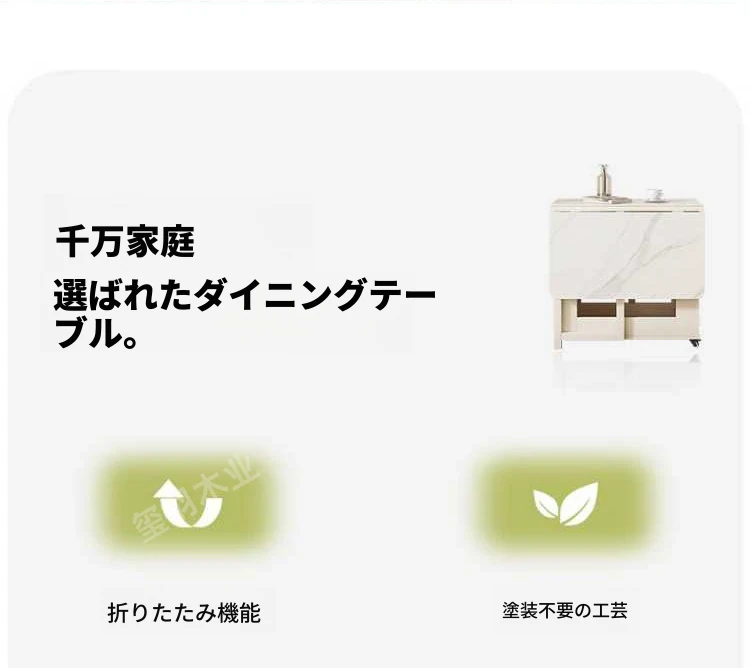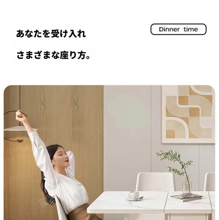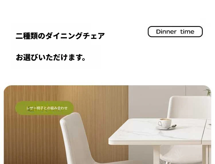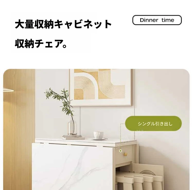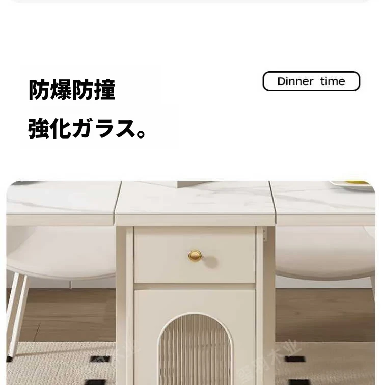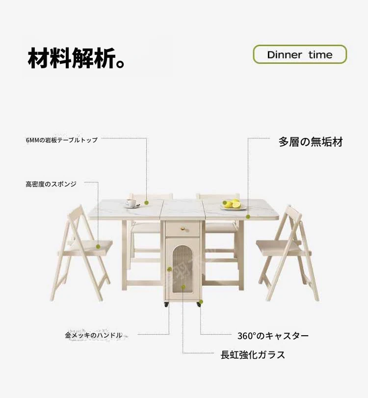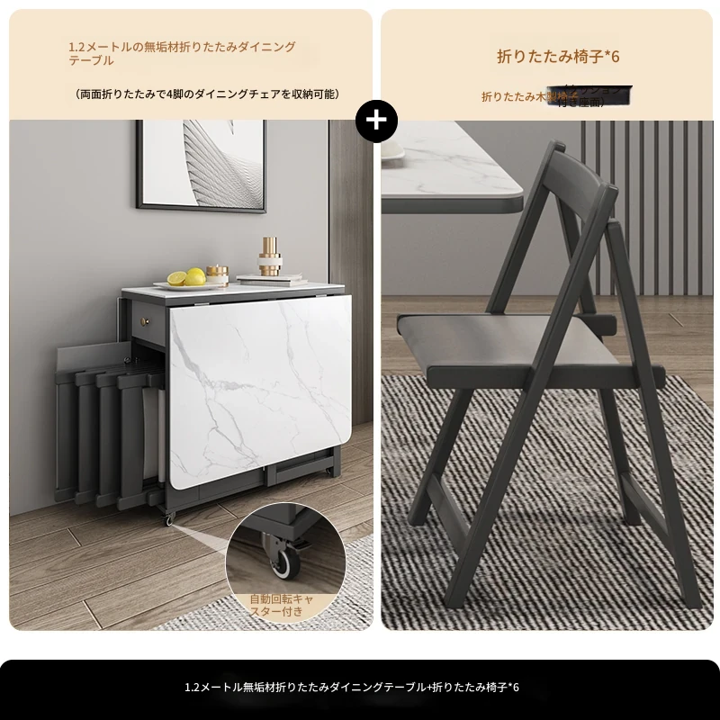 折りたたみテーブル(岩板タイプ)-組み立て不要エコ版-正方形150cmクリームホワイト+ダイニングチェア*6 ❤️注文すると100元のキャッシュバック