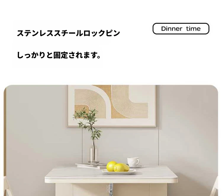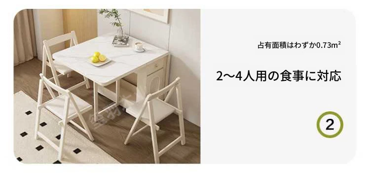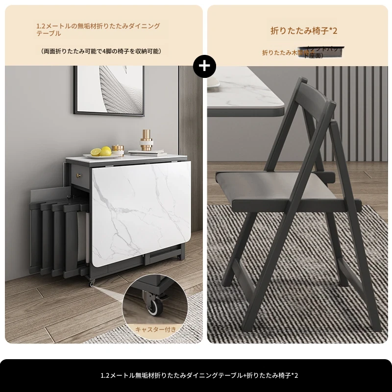 折りたたみテーブル(岩板タイプ)-組み立て不要エコ版-正方形150cmクリームホワイト+ダイニングチェア*2 ❤️注文すると50元のキャッシュバック
