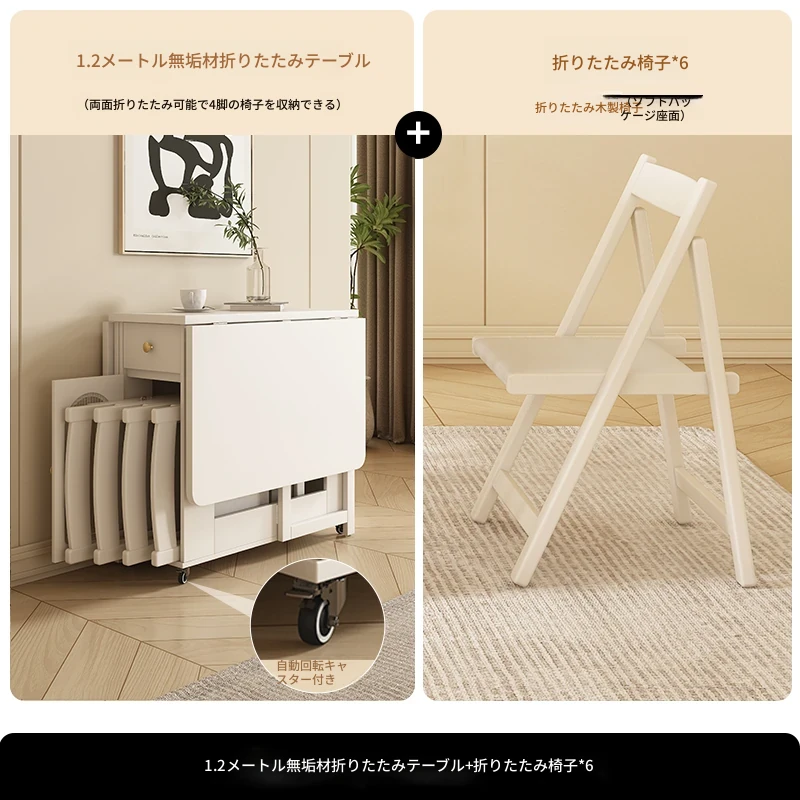 折りたたみテーブル(木製タイプ)-組み立て不要エコ版-正方形120cmクリームホワイト+ダイニングチェア*6 ❤️注文すると100元のキャッシュバック