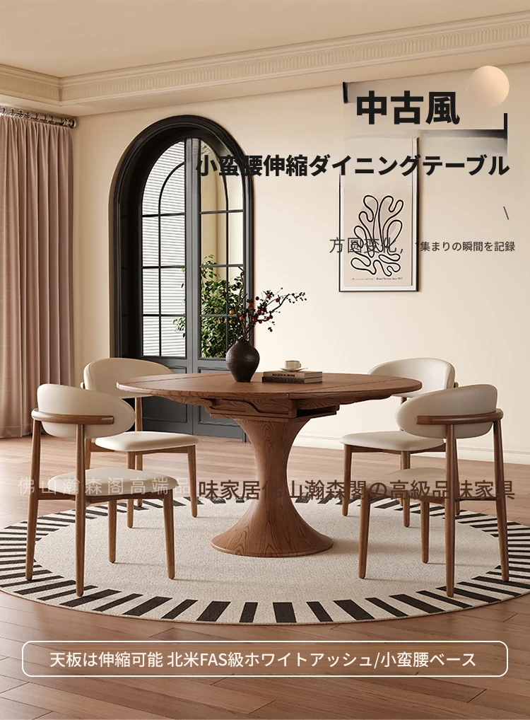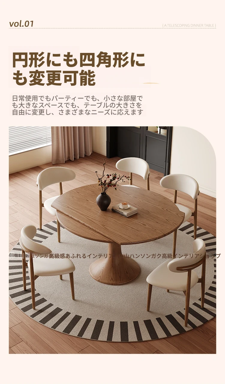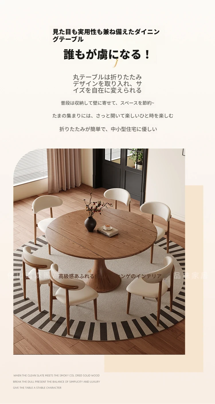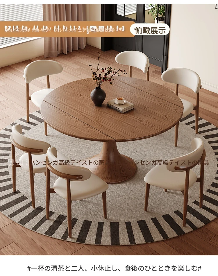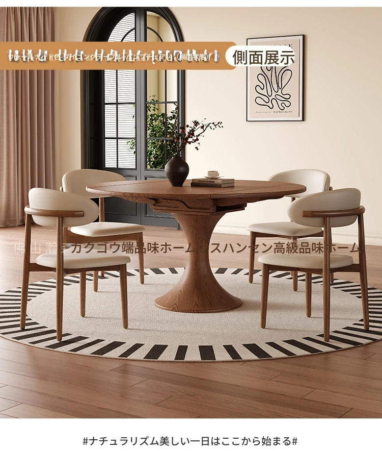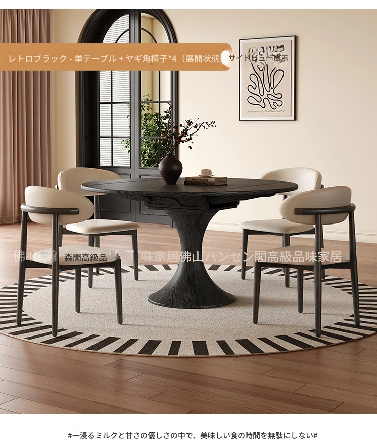 2025年新款!中古風スタイルの実木ダイニングテーブル&チェアセット。リビングにぴったりな小型拡張型、丸型テーブルで、家族の団らんや友人との集まりに最適です!